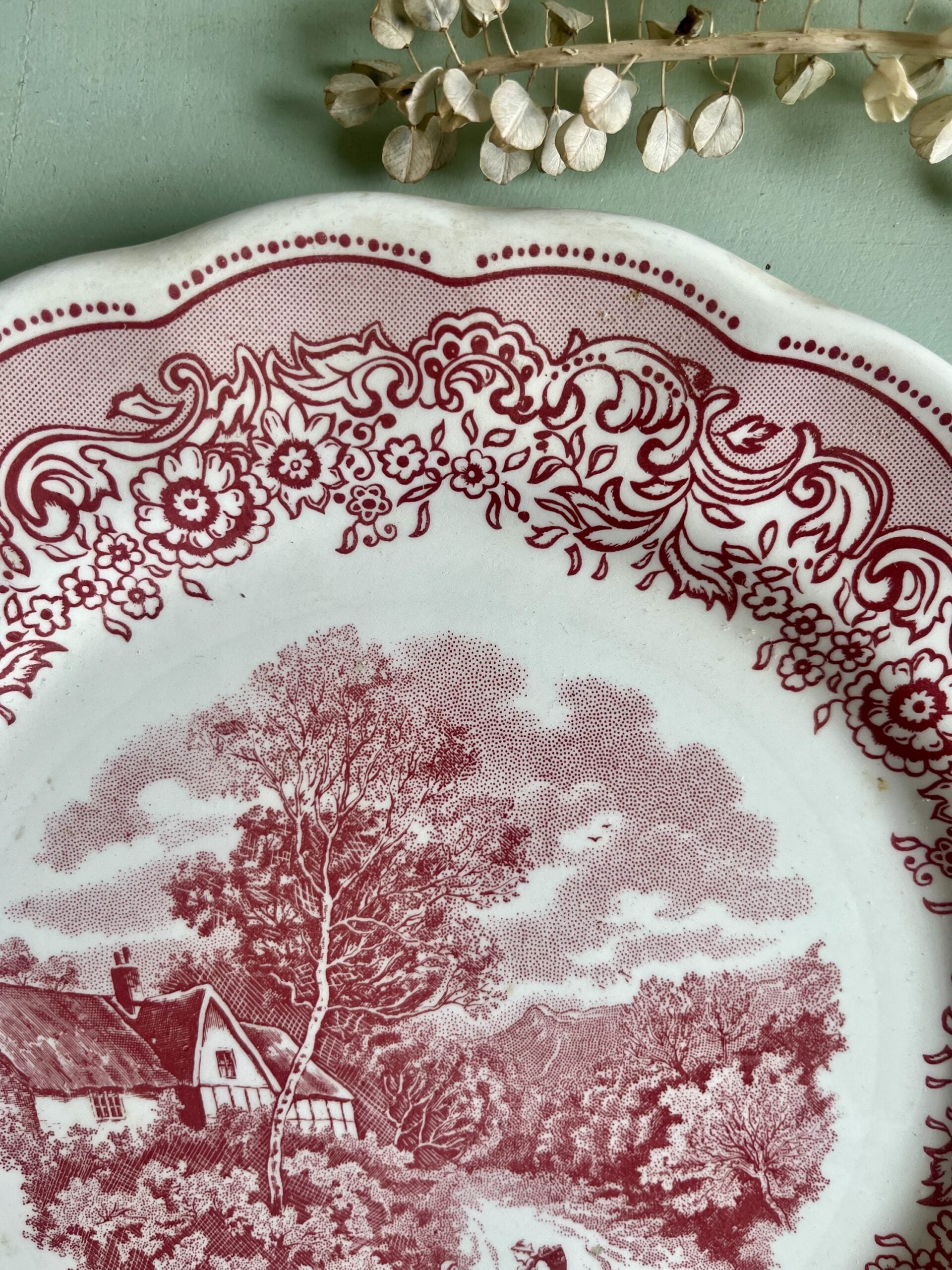 Une assiette ancienne avec motifs rouge dans un très bel état général.