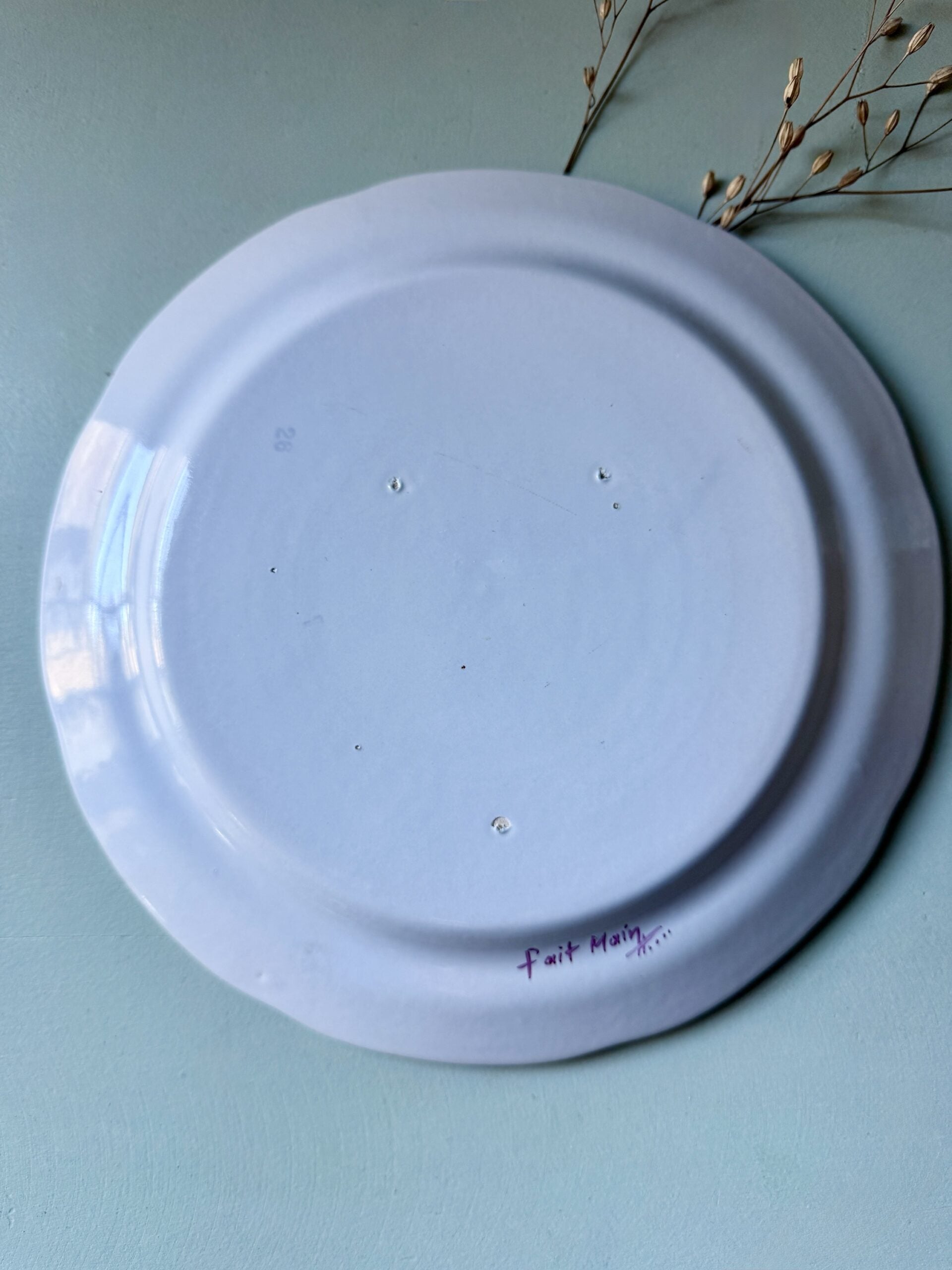 • État : quelques traces du temps (petites irrégularités liées à la faïence et à la peinture à la main)