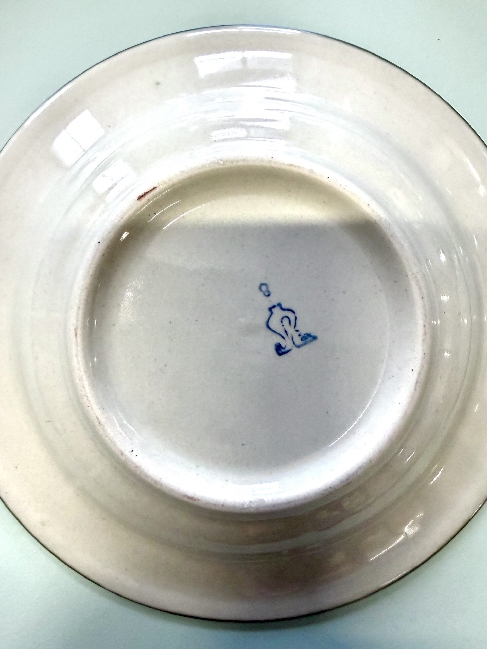 Deux petits impacts sont présents à l’arrière sur deux assiettes, sans incidence sur l’usage. Les traces du temps sont cohérentes avec leur âge.