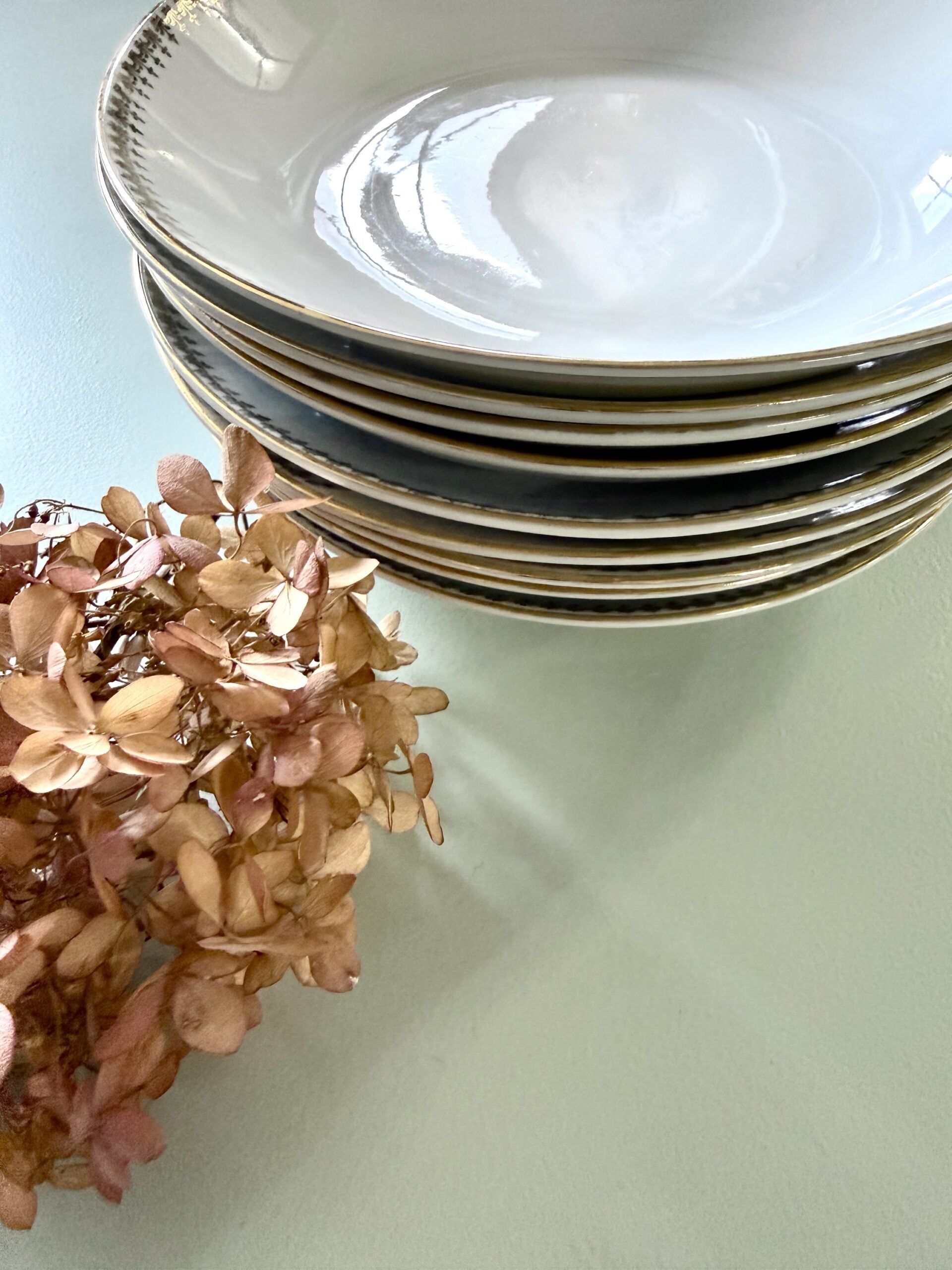 • Type : assiettes creuses• Motif : frise graphique dorée