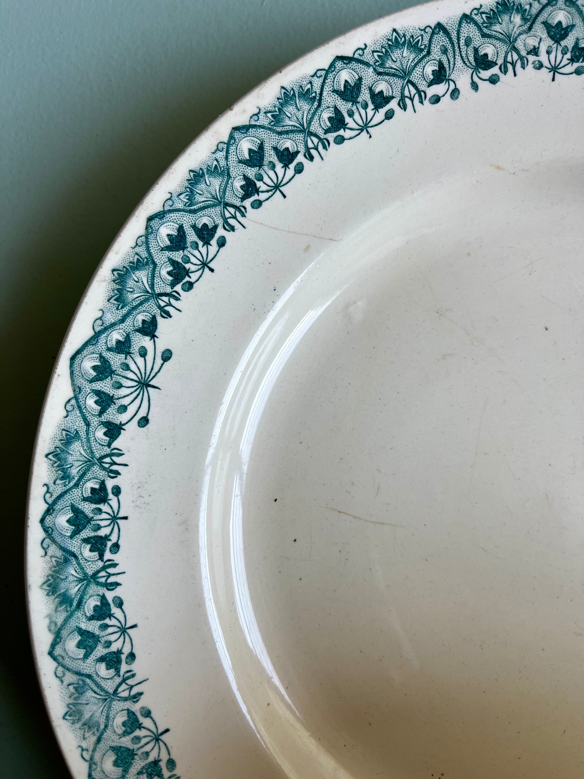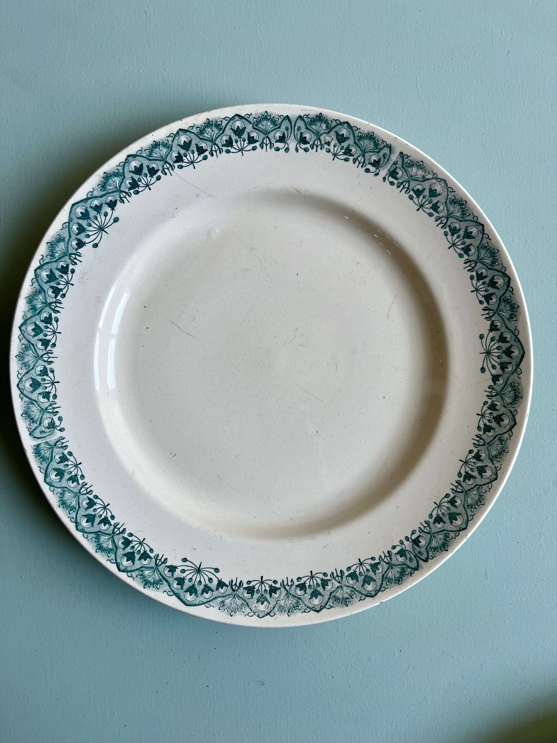 Diamètre 25 cm, idéales pour le quotidien. Le blanc et vert fonctionne très bien en ensemble homogène, mais aussi en mix & match avec d’autres assiettes anciennes pour créer une table dépareillée pleine de charme.