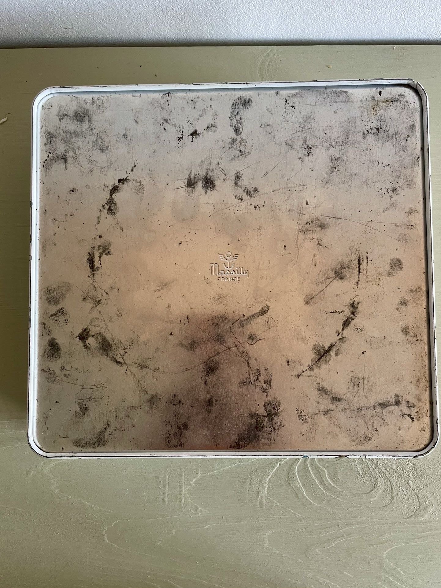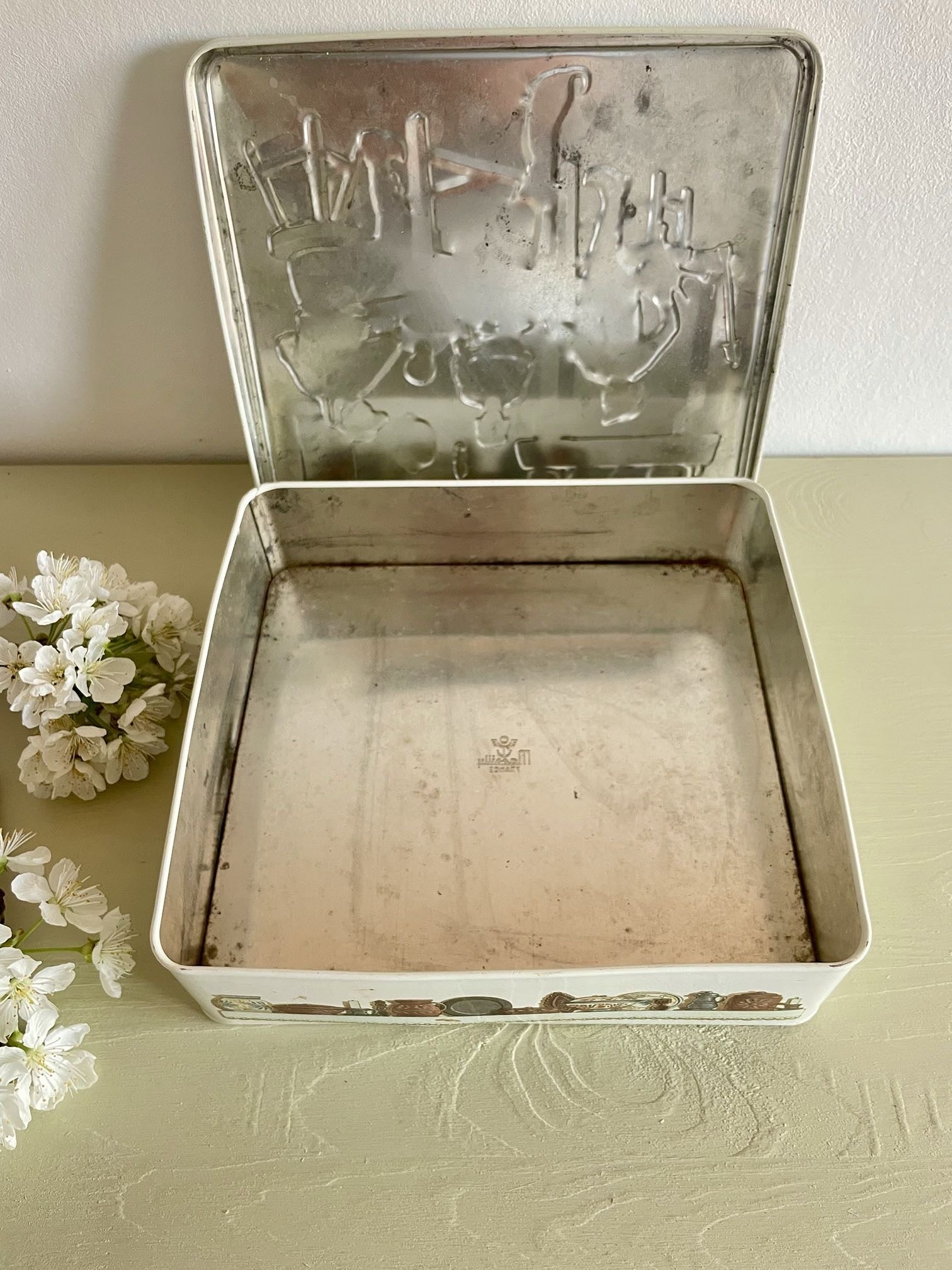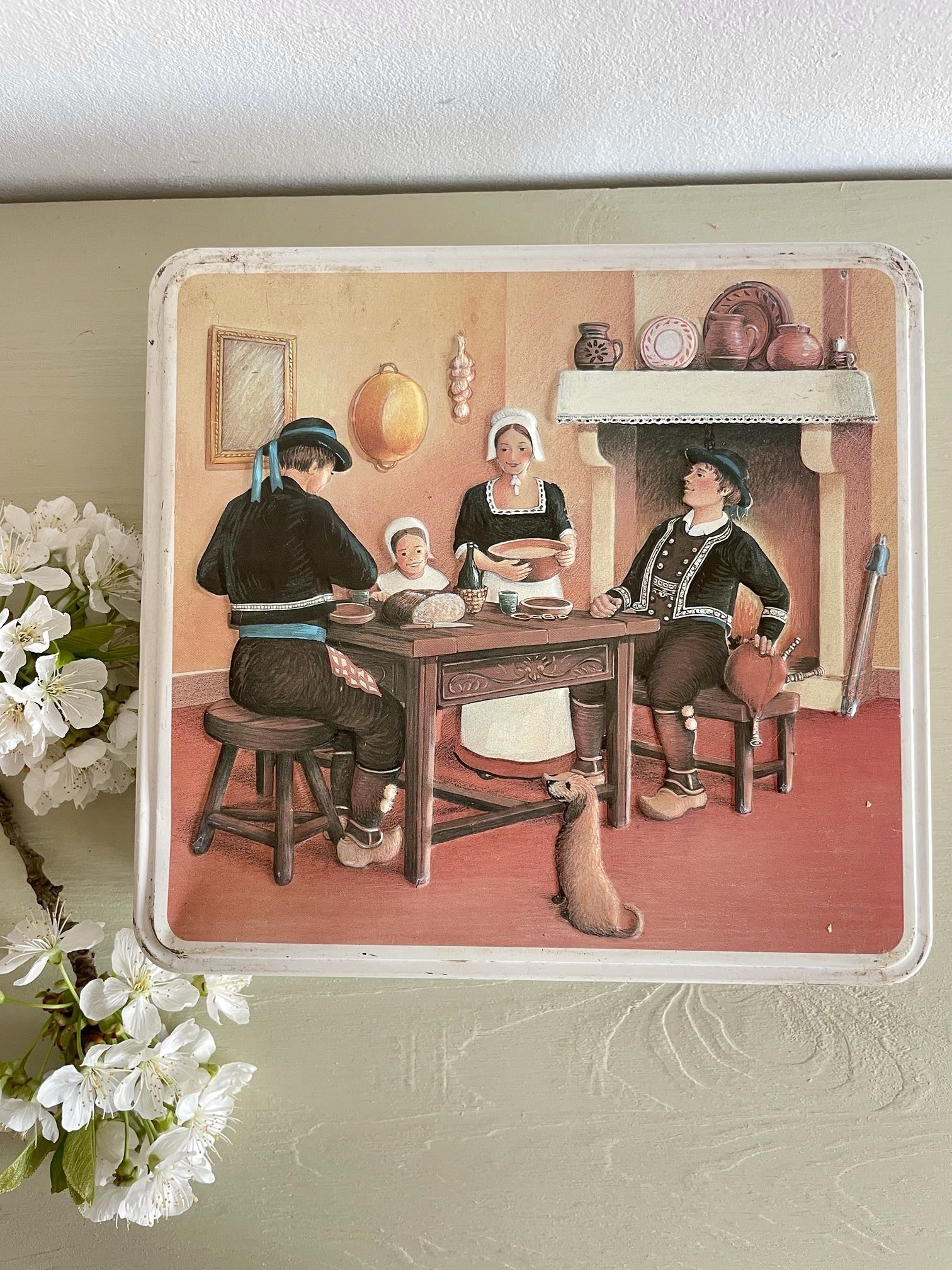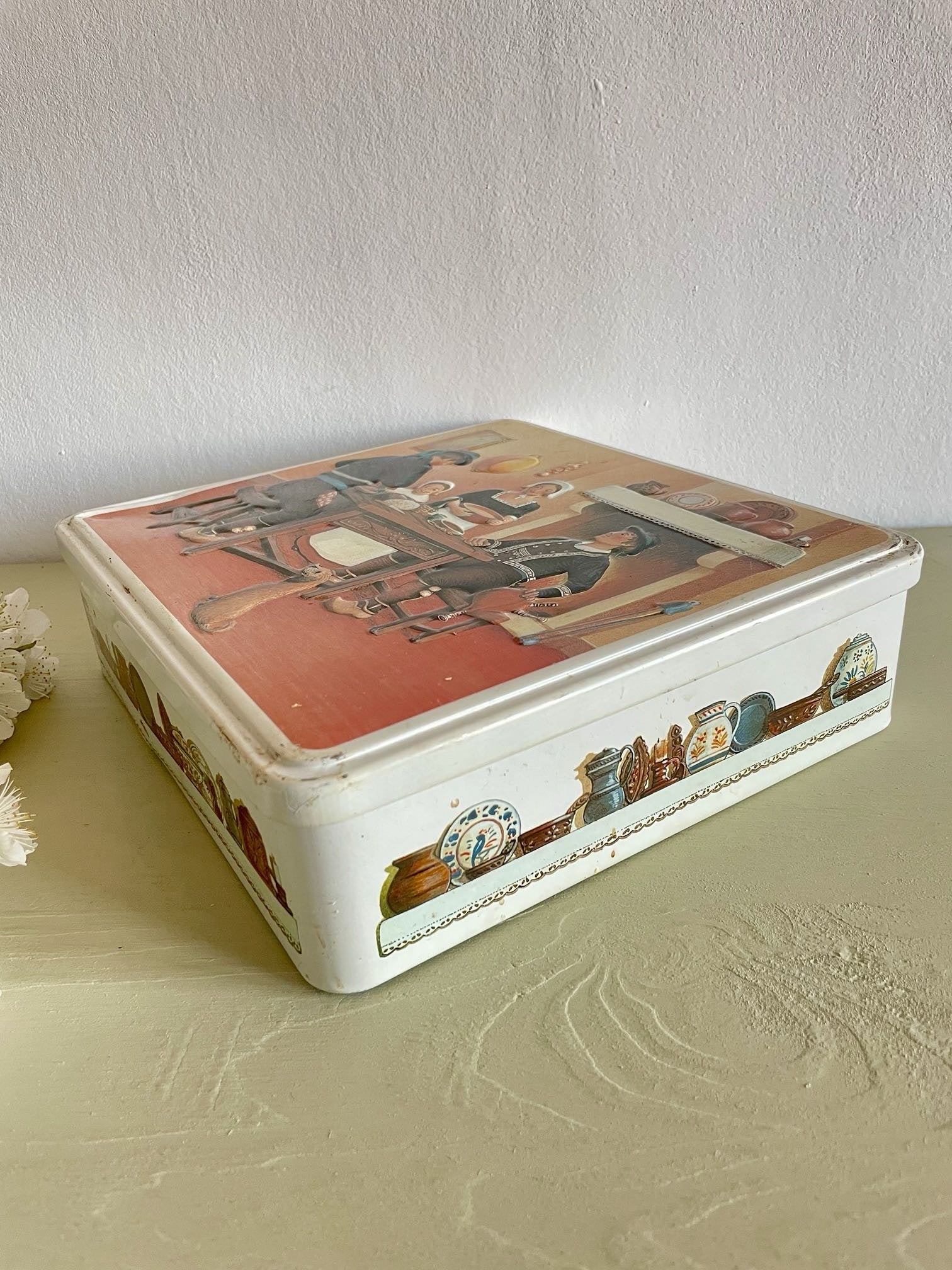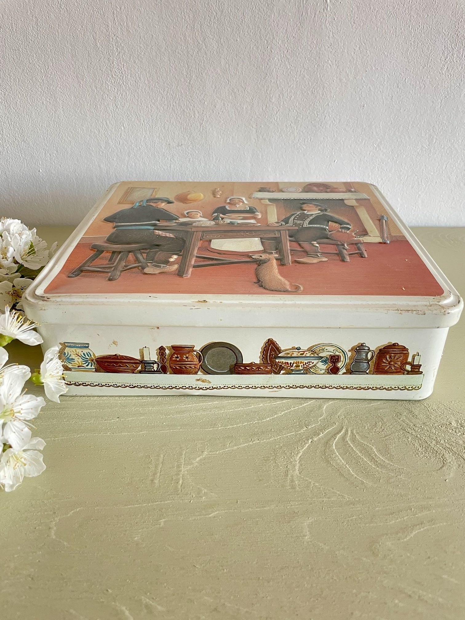 Boîte à gâteaux ancienne Massilly au décor de scène bretonne.