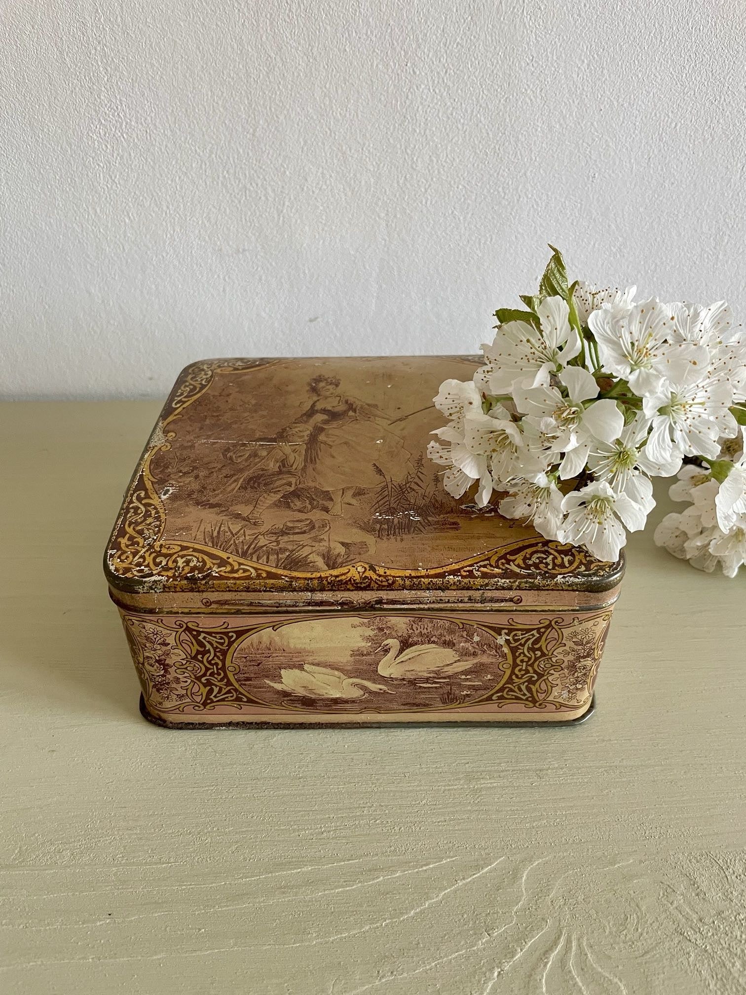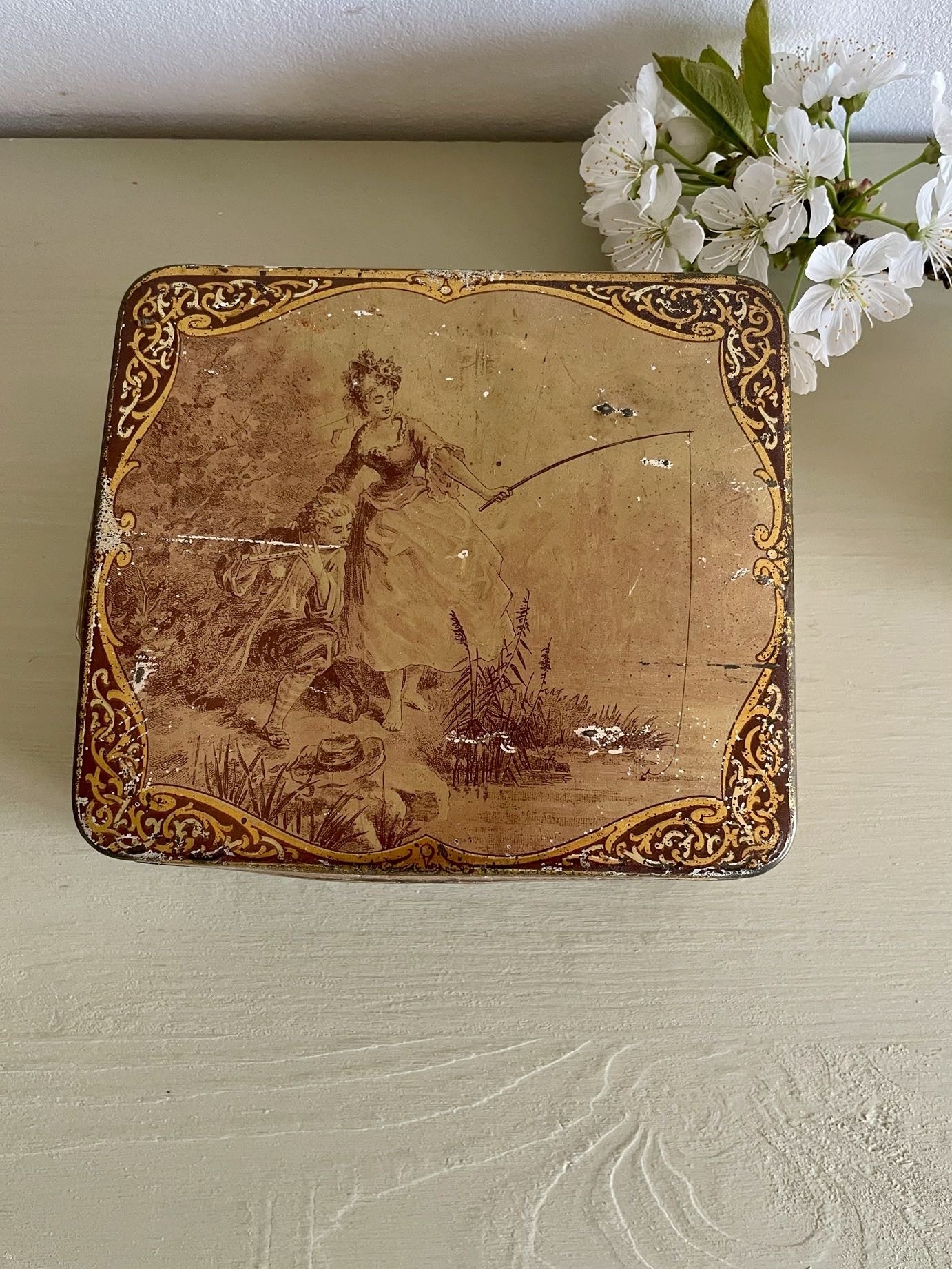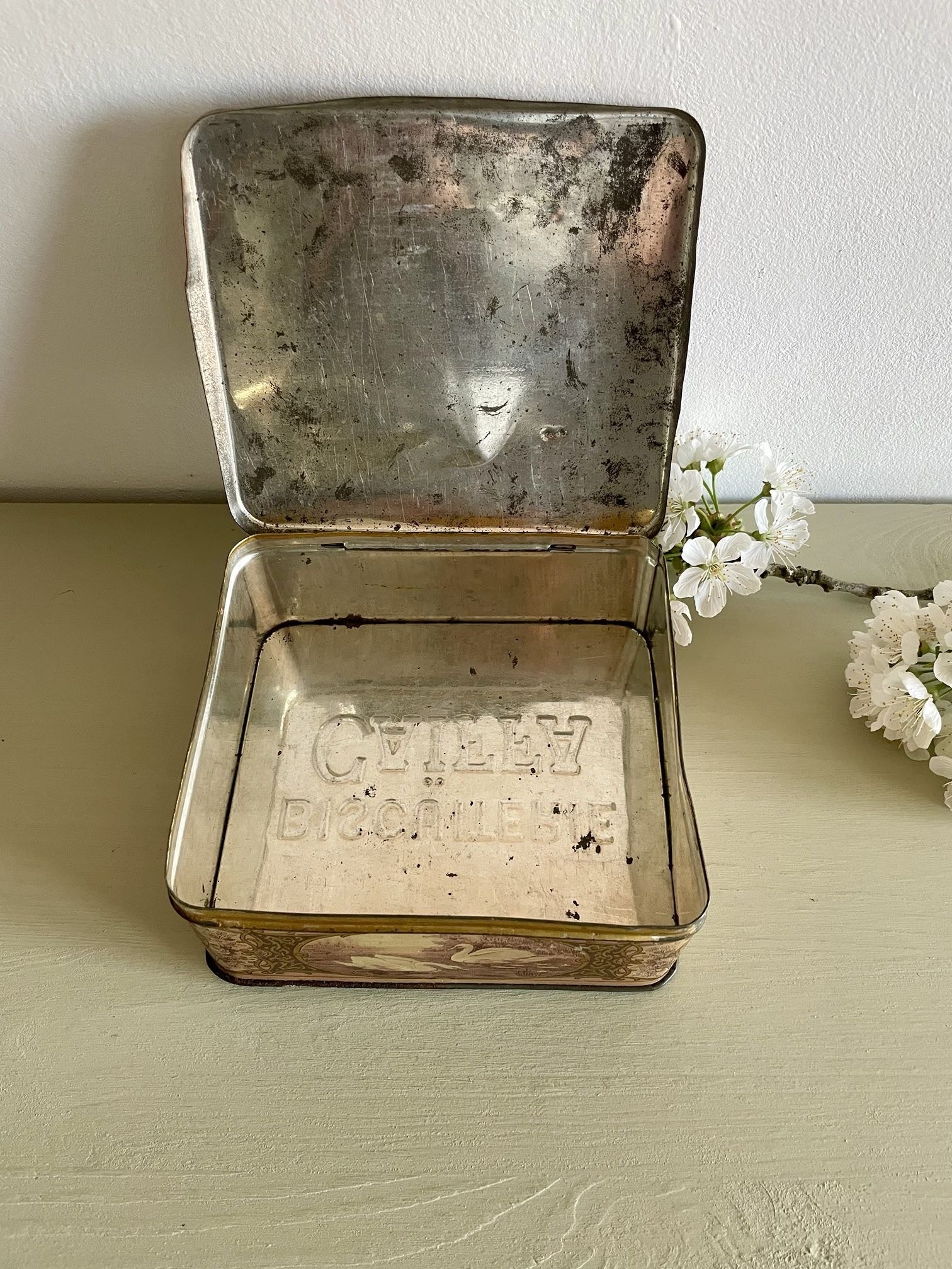 Craquez pour le charme rétro de cette boîte ancienne de la biscuiterie Caïffa ! Ses illustrations poétiques racontent une histoire gourmande. Avec ses dimensions pratiques (16x14x7 cm), elle accueillera vos gourmandises ou petits trésors avec style.