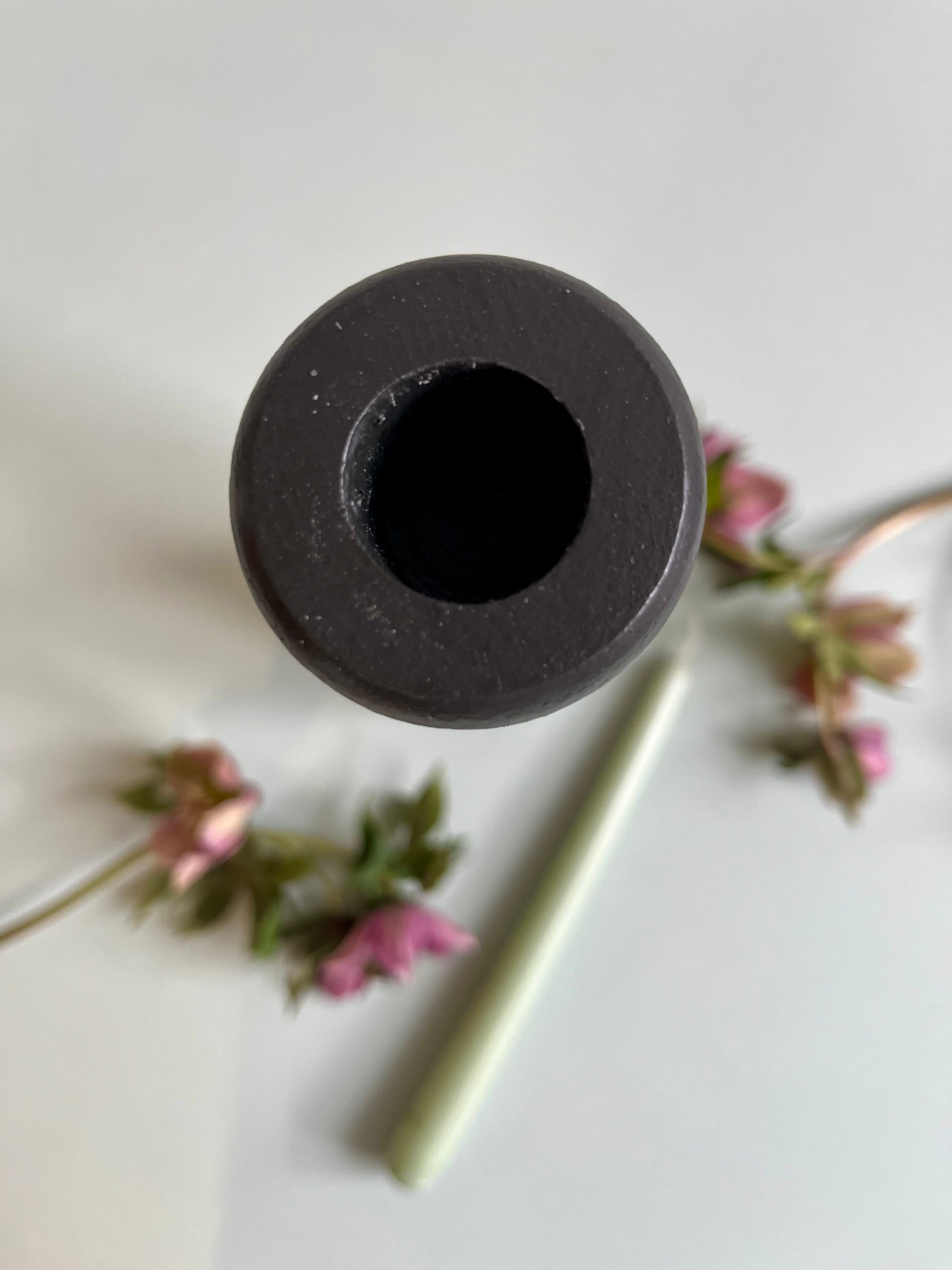 Bougeoir en bois sculpté noir