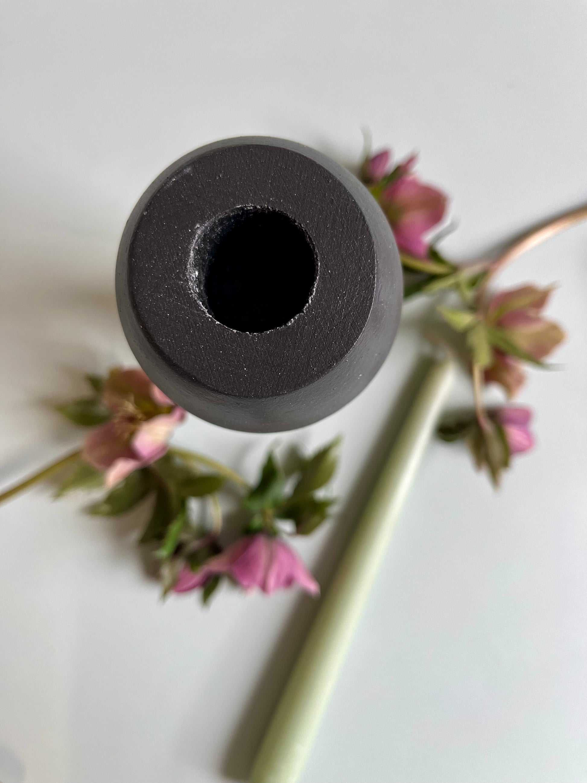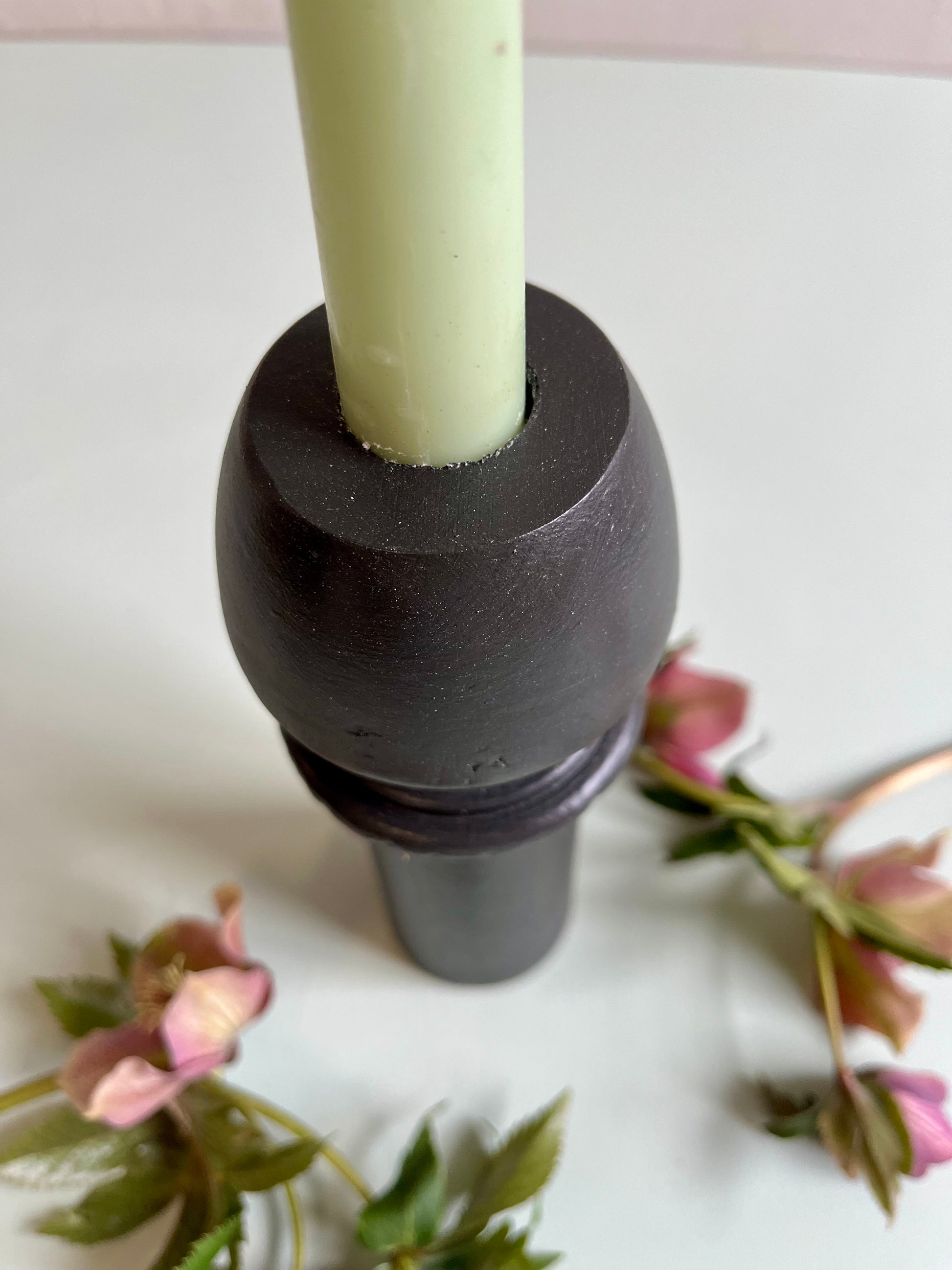 Bougeoir en bois tourné noir petit modèle
