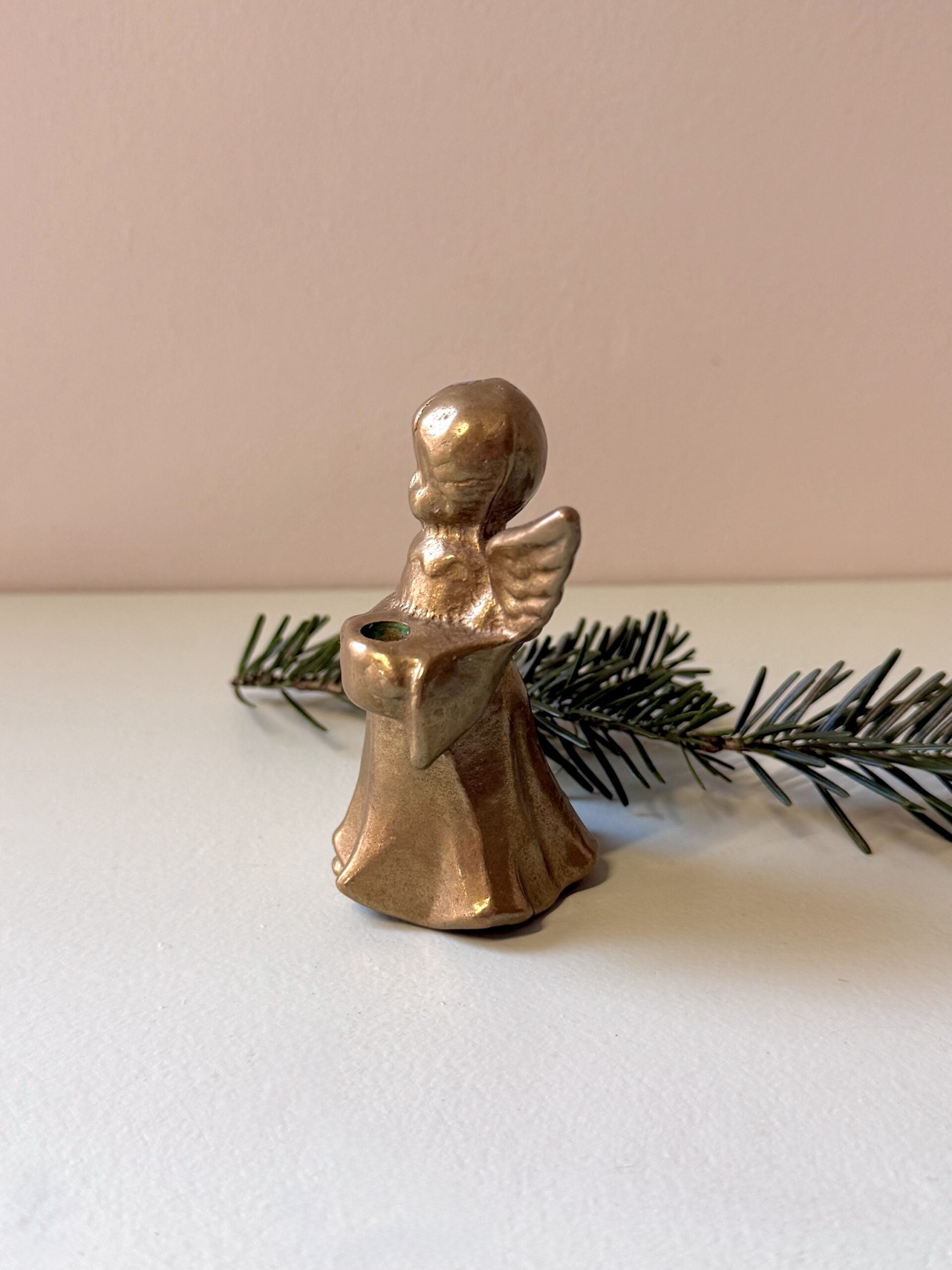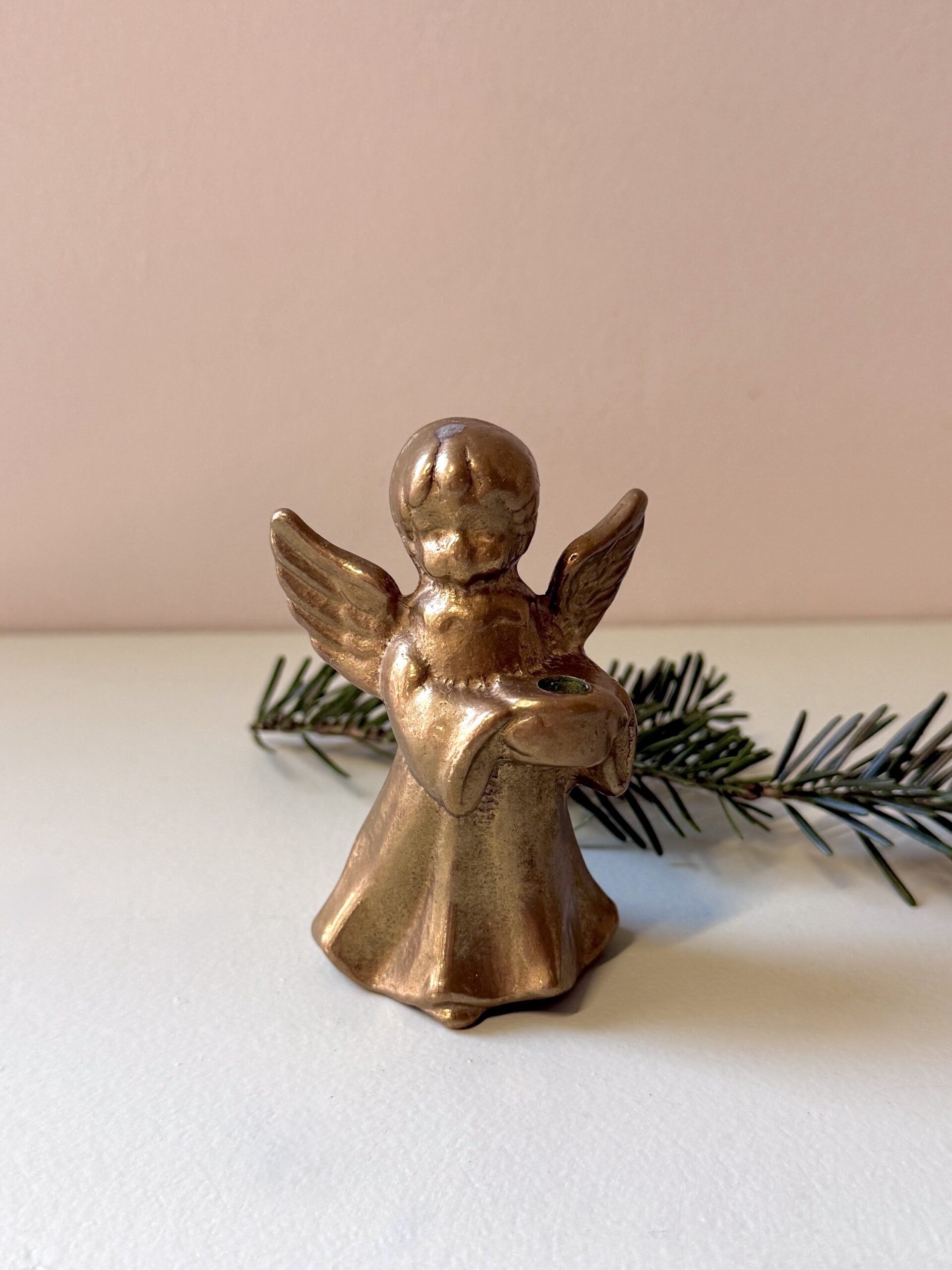 Petit ange décoratif ancien porte-bougie doré – décoration de Noël