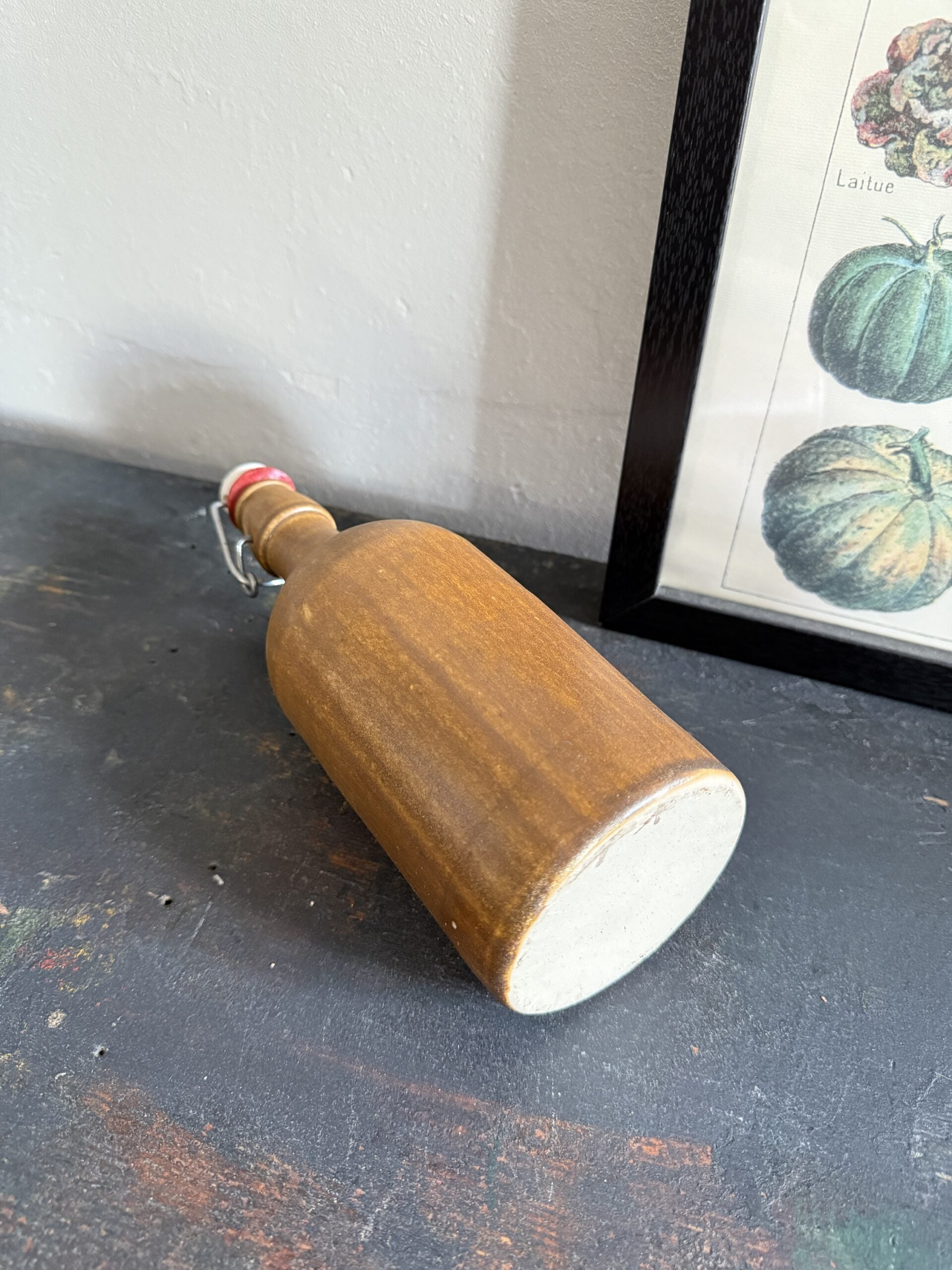 Petite bouteille ancienne en grès émaillé marron, contenance 0,5 litre.