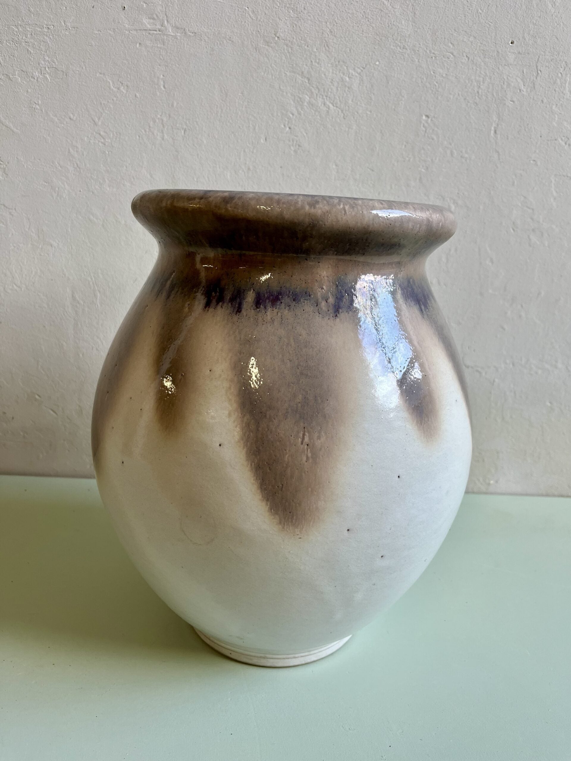Pot en grès émaillé gris et blanc