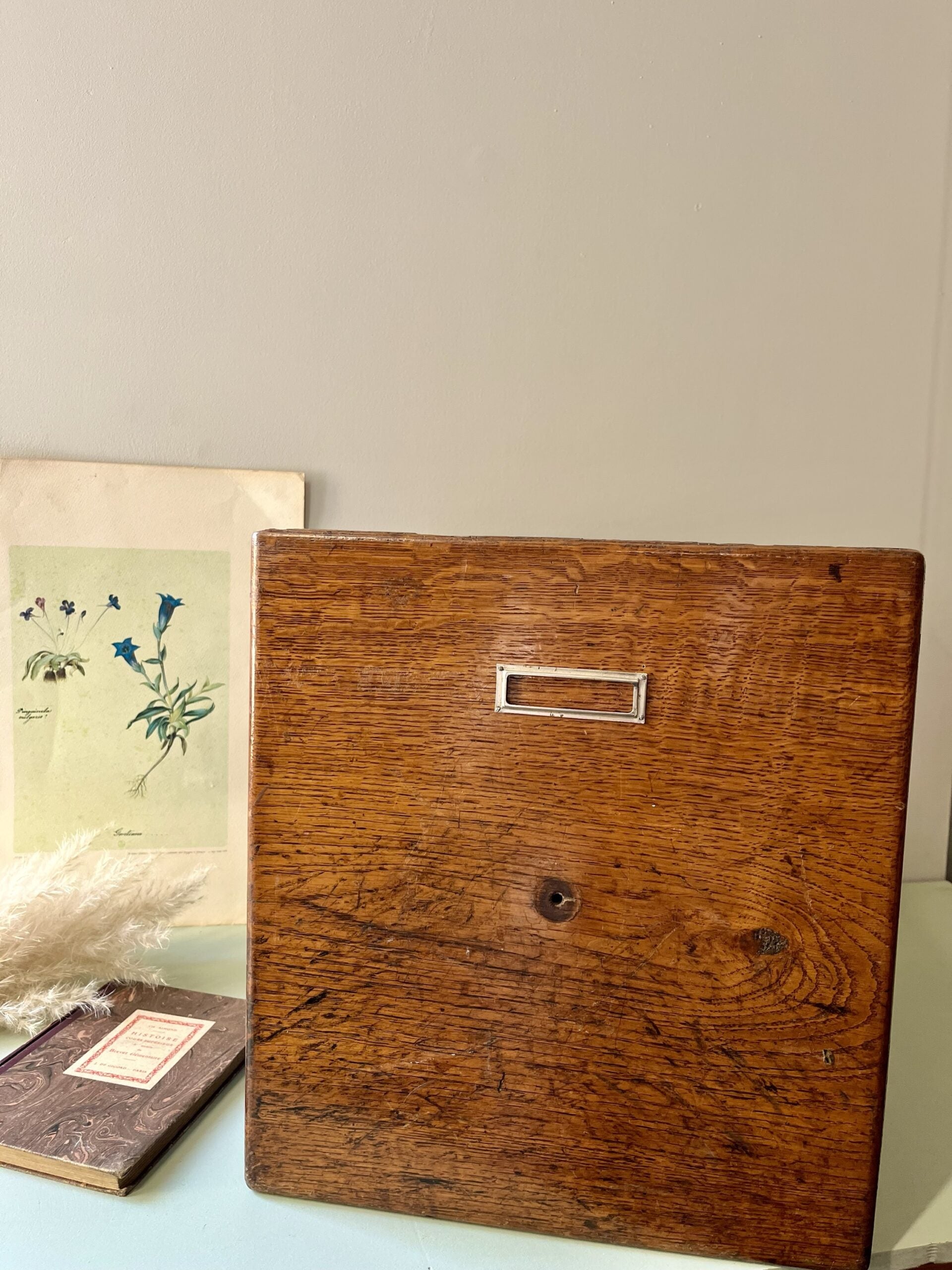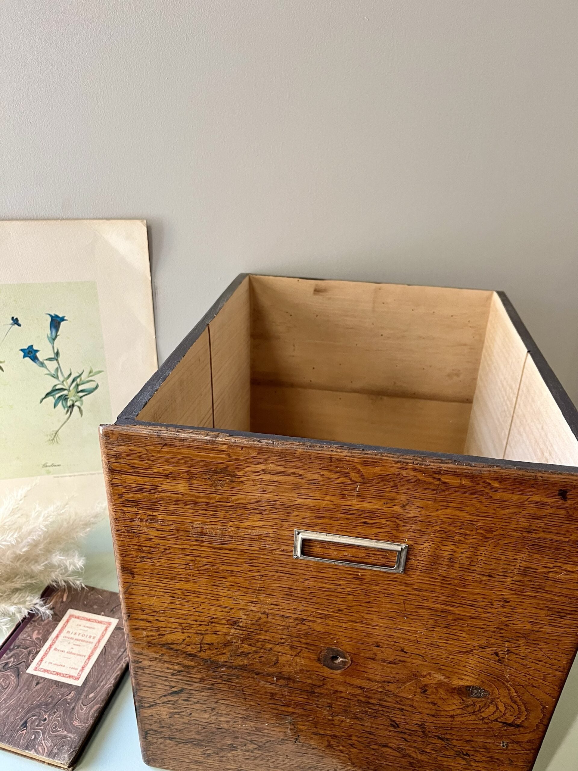 Parfaite pour ranger des livres, des plaids ou des bibelots, cette petite caisse se pose au sol, sur une étagère ou sur un meuble pour créer un coin rangement élégant. Son format compact permet de l’utiliser partout dans la maison, tout en apportant une touche de charme ancien.Détails et entretien