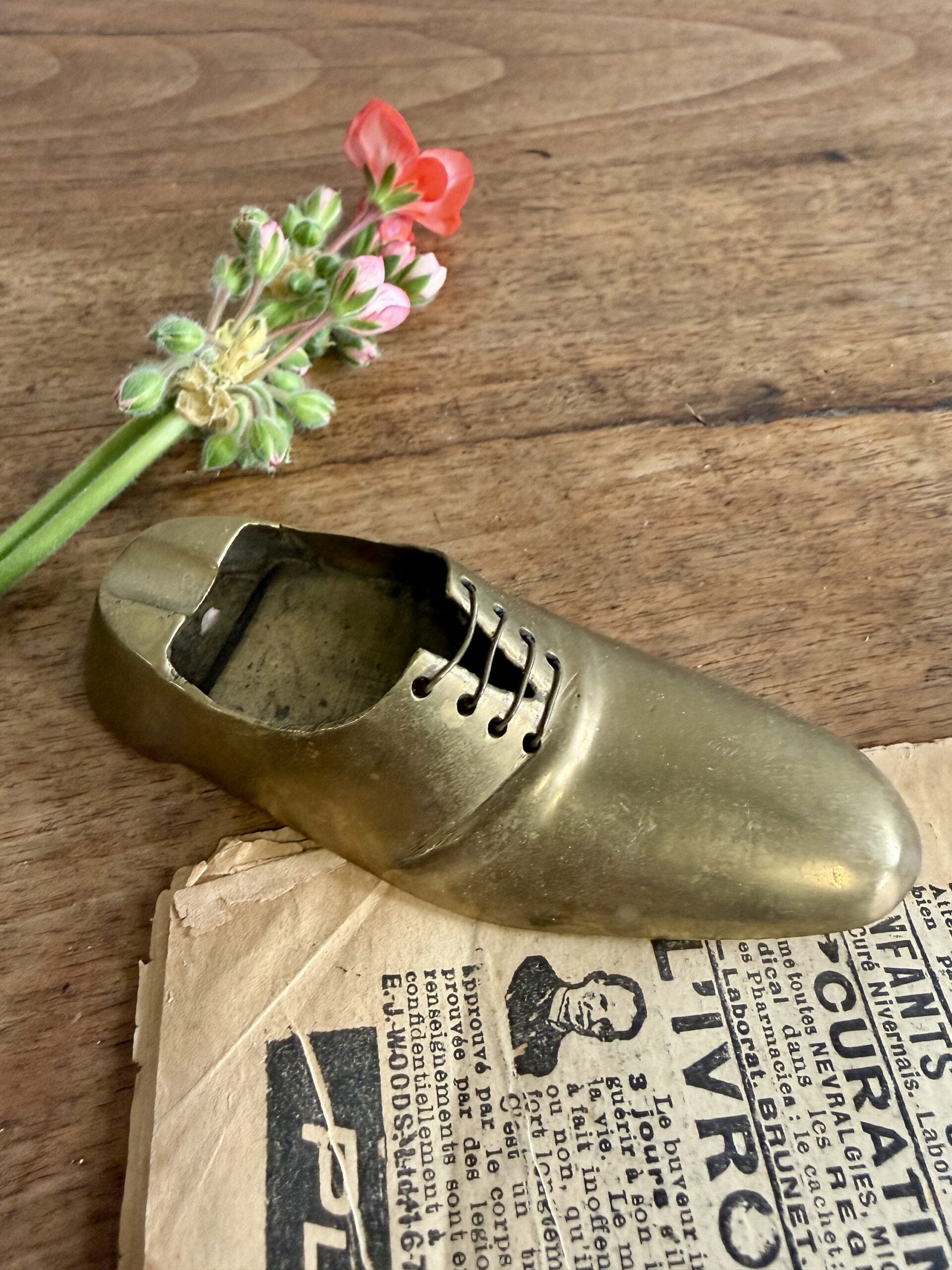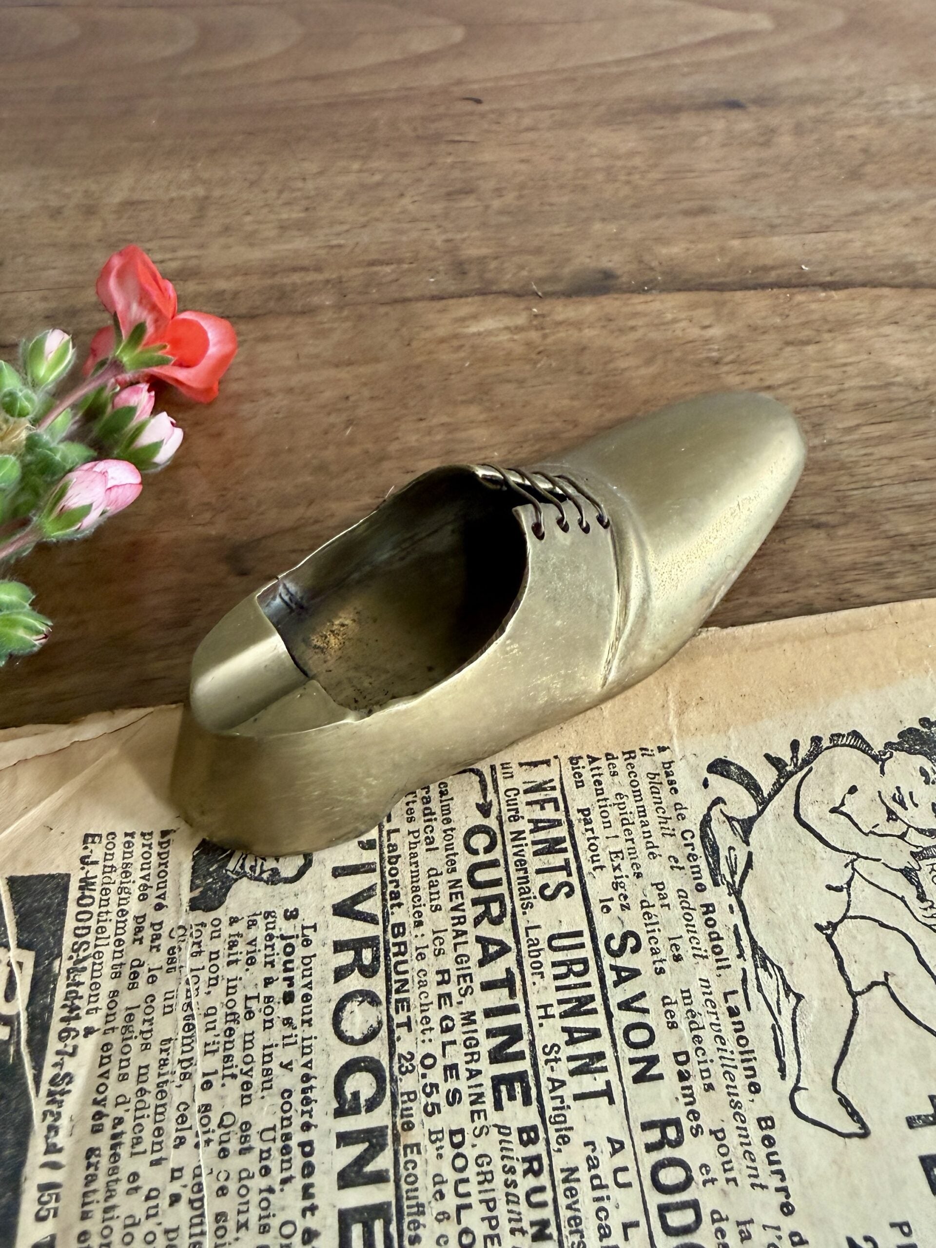 Cendrier vintage en étain – forme chaussure