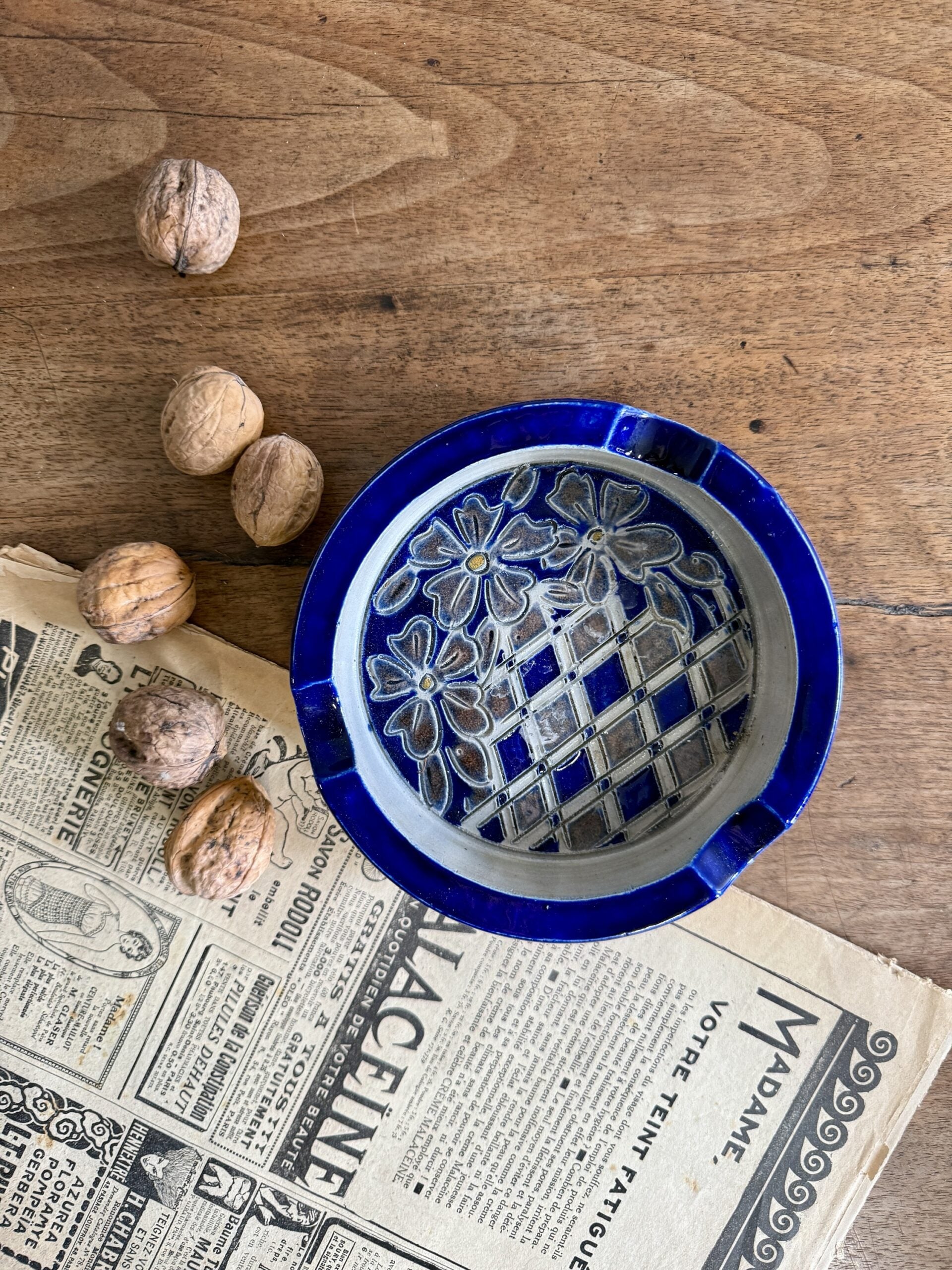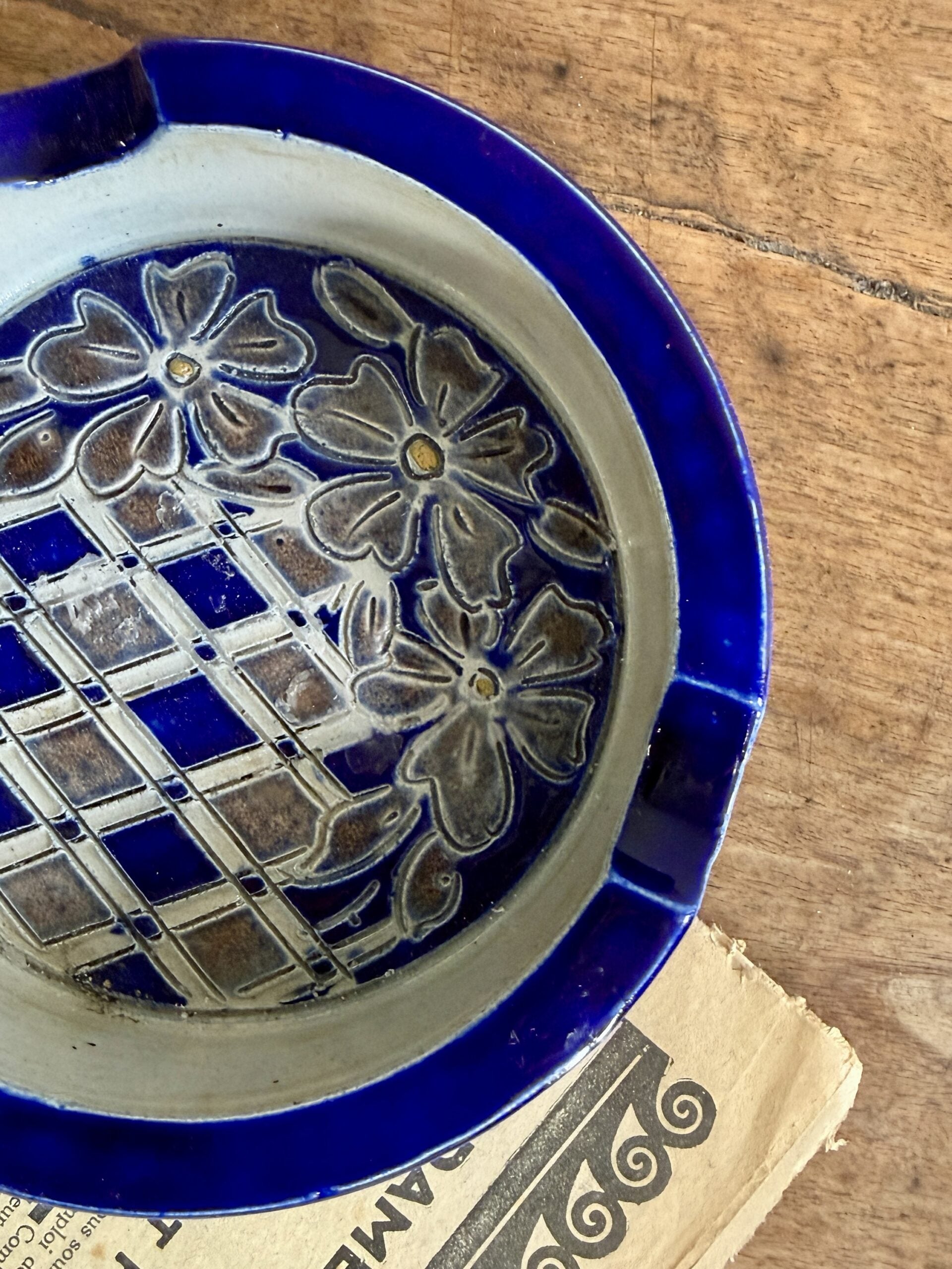 Sa présence sobre permet de l’utiliser aussi bien comme cendrier que comme petit vide-poches, porte-bougies ou simple élément décoratif. Sur une étagère, aux côtés d’une poterie ancienne ou d’un objet vintage, il apporte ce grain d’authenticité que l’on aime retrouver dans les intérieurs chaleureux.