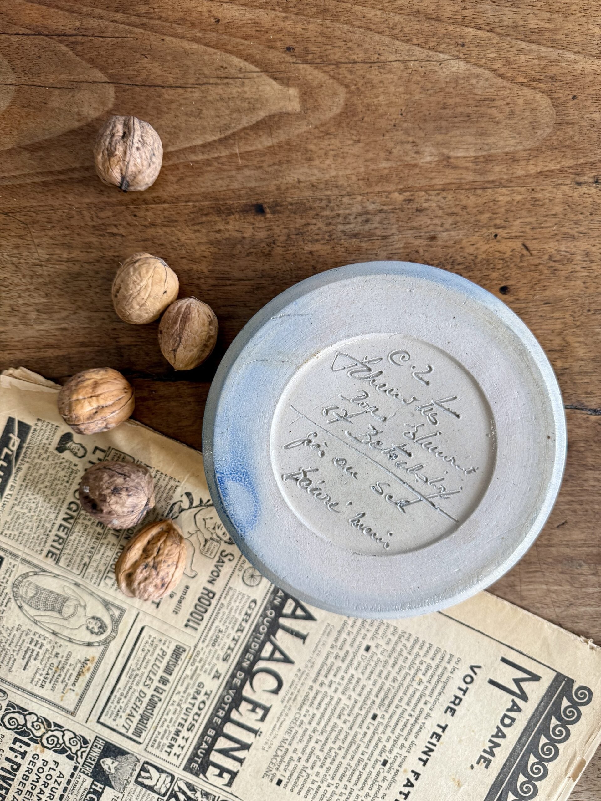 Ce cendrier en grès de Betschdorf incarne le charme des poteries alsaciennes traditionnelles. Sa couleur bleu gris, douce et légèrement nuancée, en fait une pièce authentique qui trouve aisément sa place dans une déco vintage ou contemporaine.