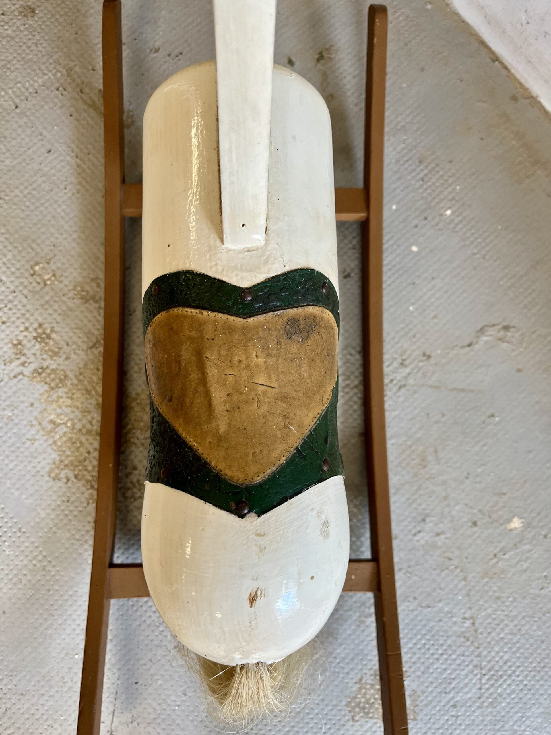 Ancien cheval à bascule vintage en bois. Une jolie pièce vintage pour décorer la chambre de votre enfant et lui laisser l'occasion de se balancer comme d'autres avant lui.