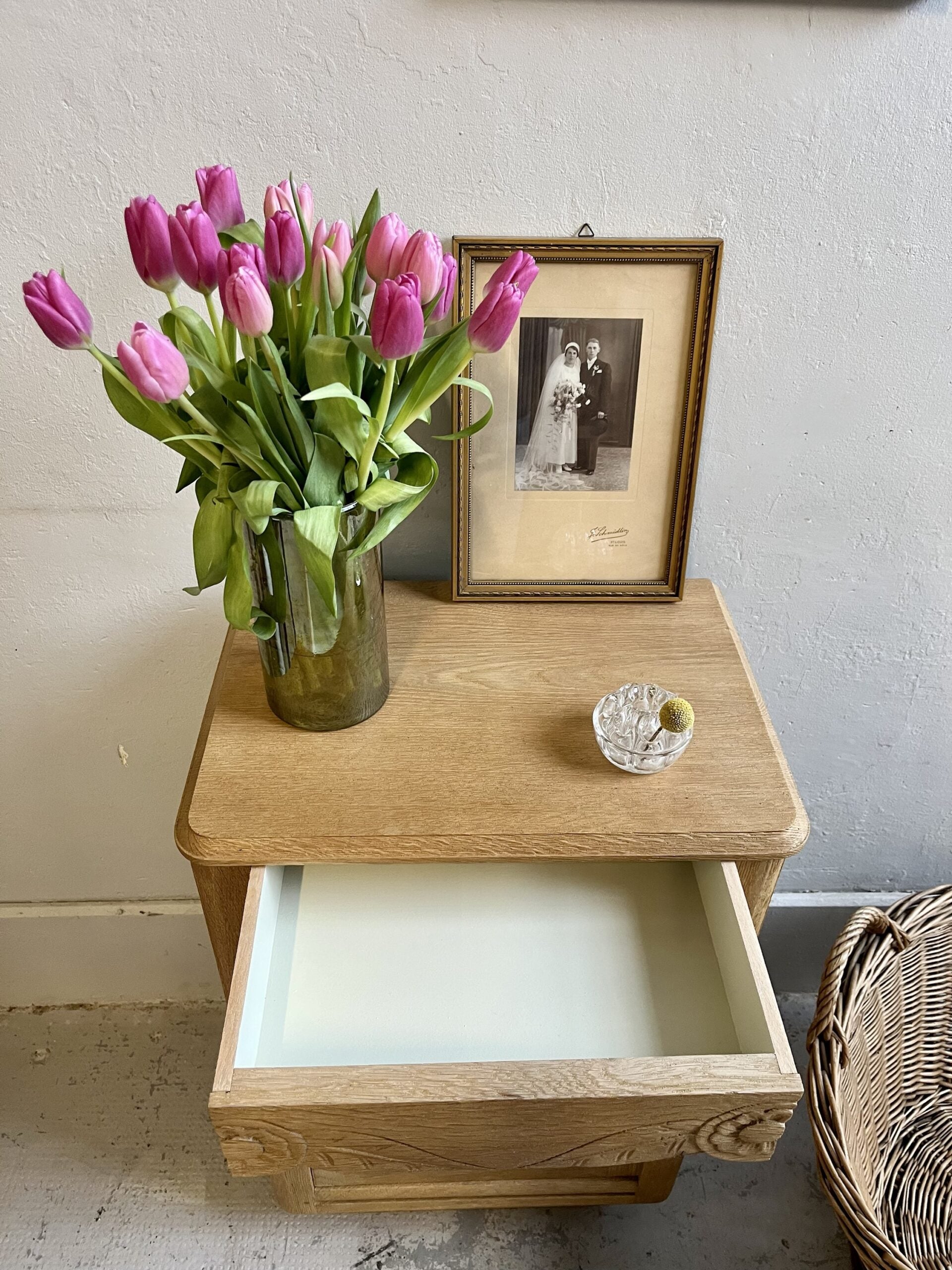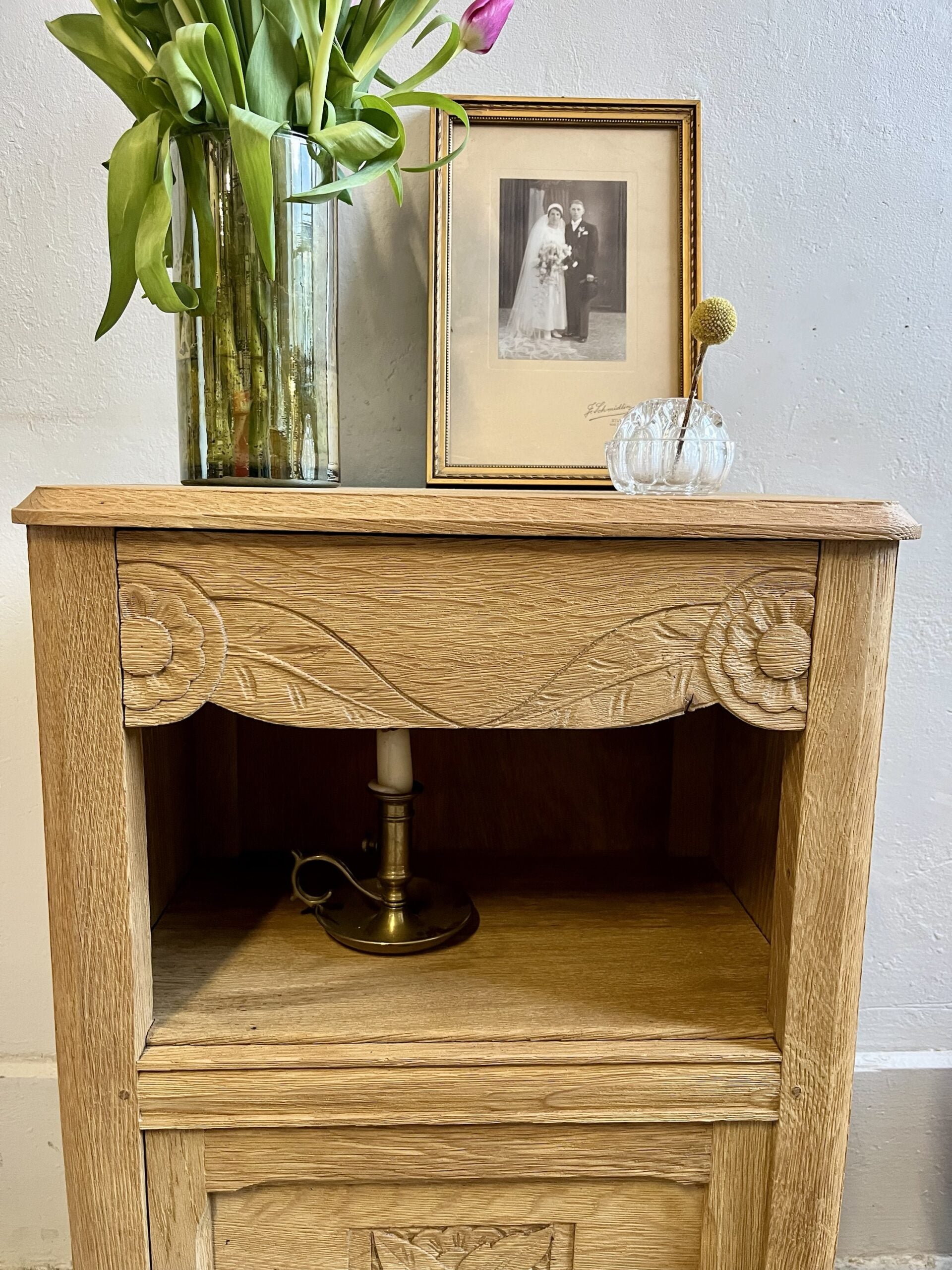 Chevet art déco tiroir gravé