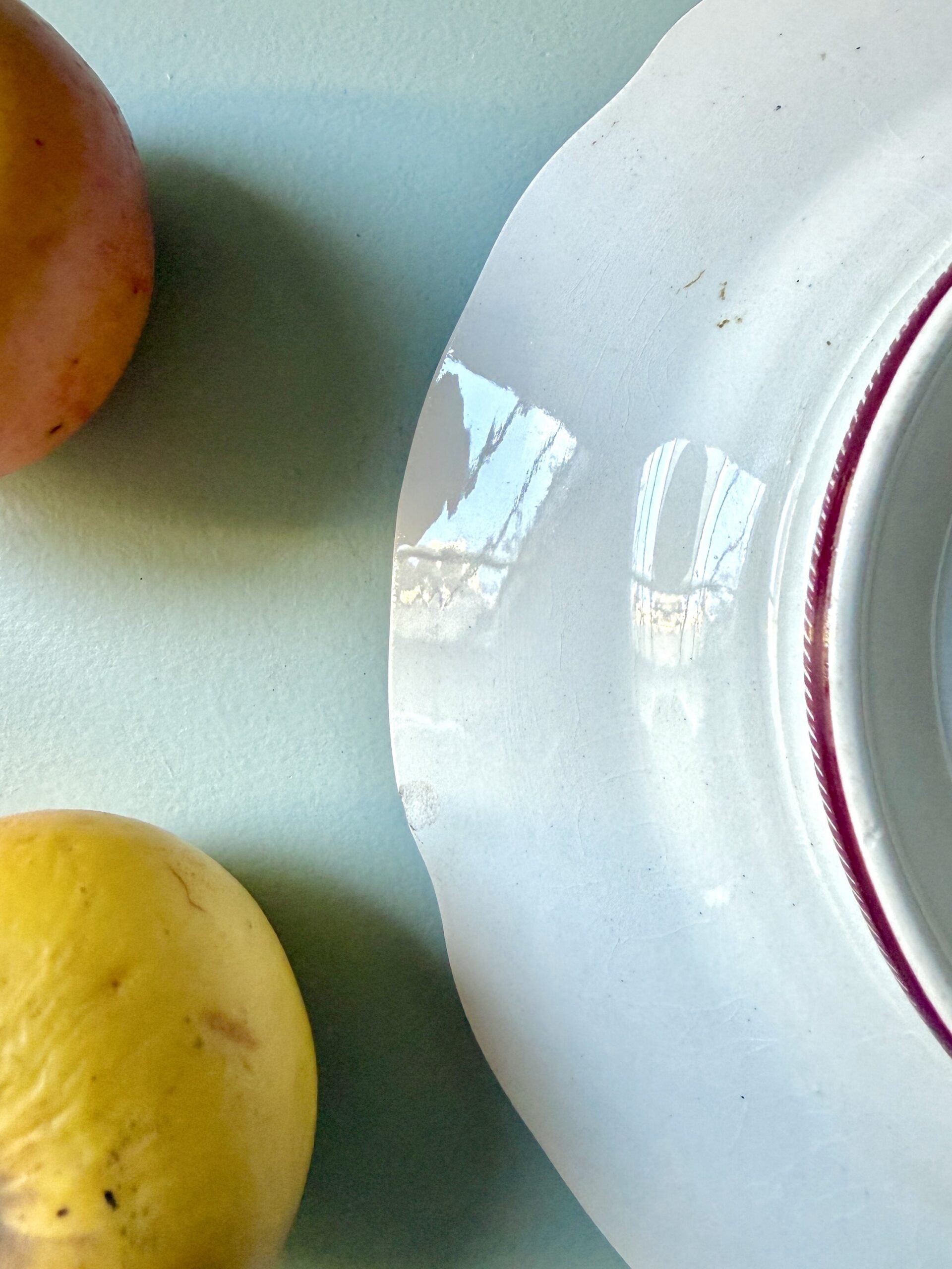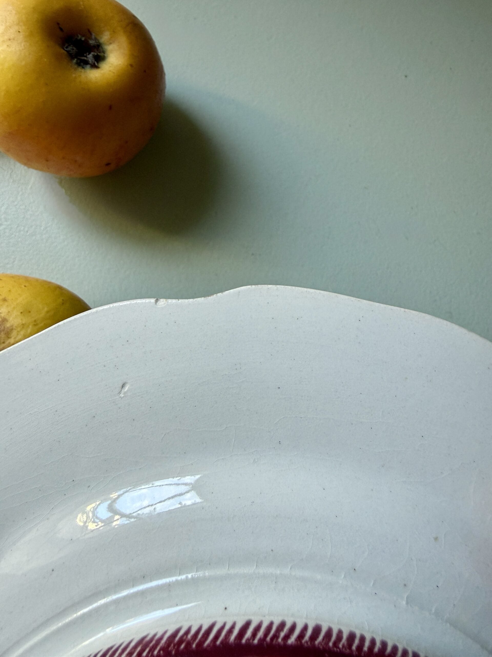 Deux petites ébréchures sous l’assiette, discrètes une fois installée.