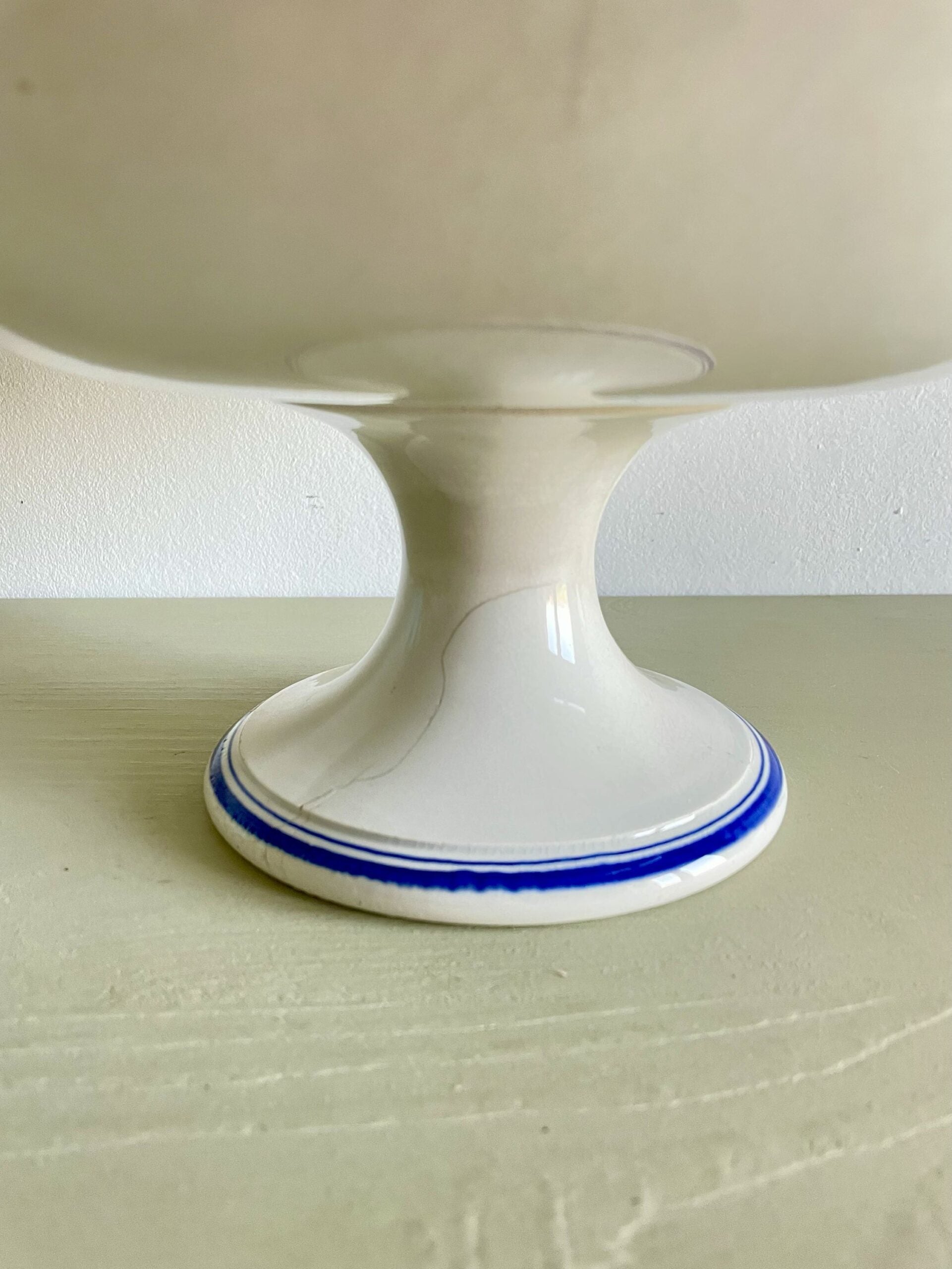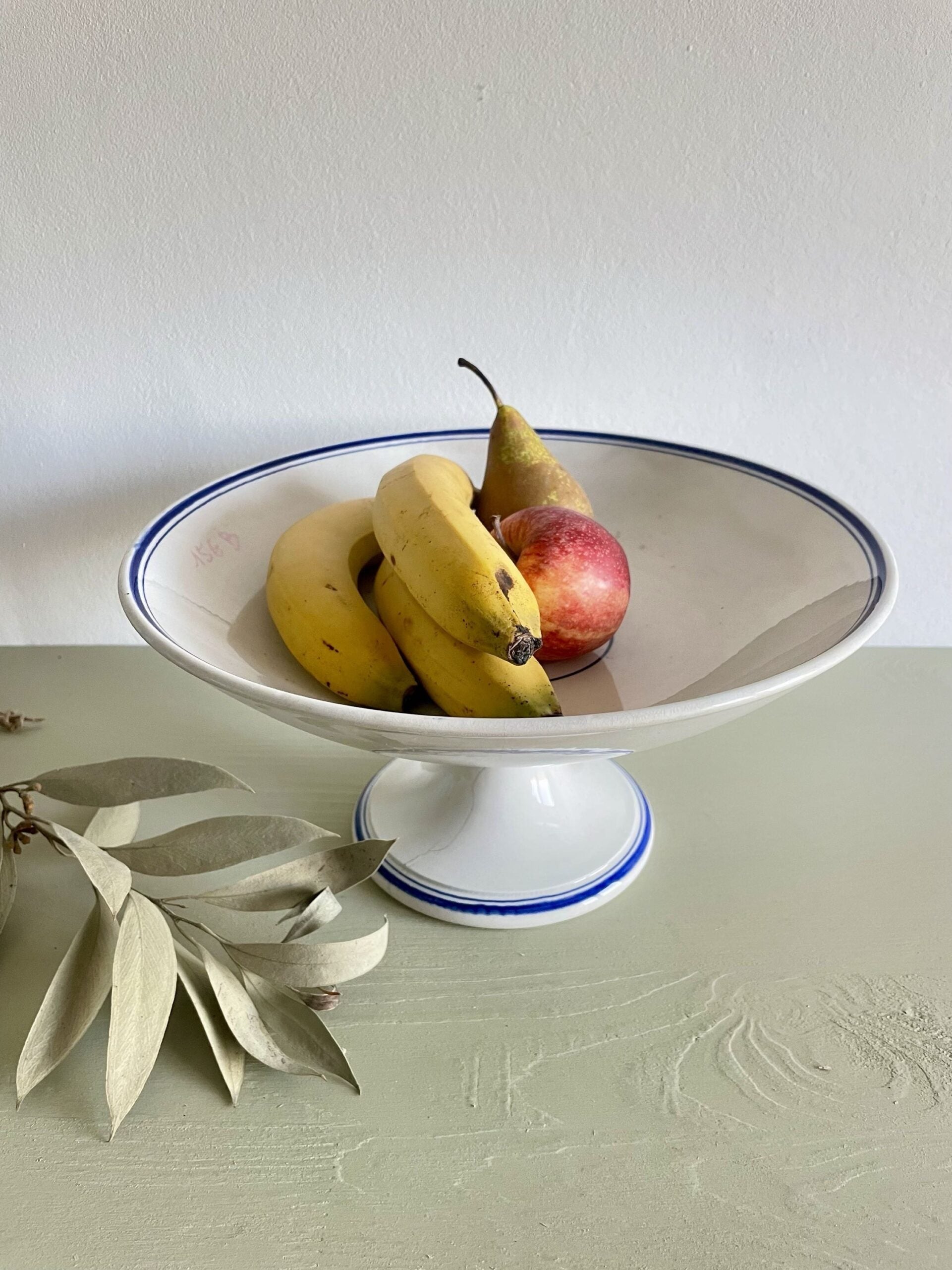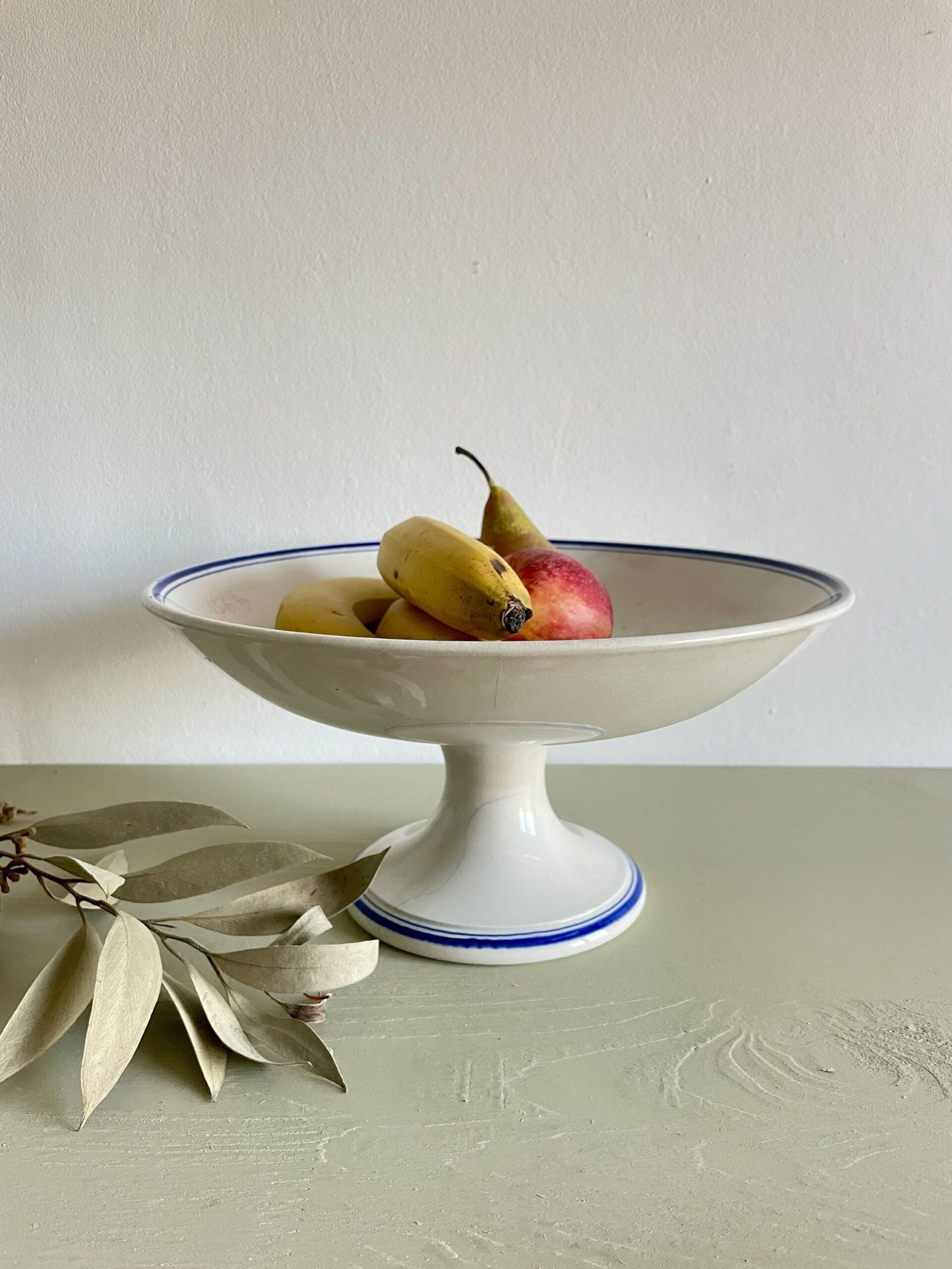 Compotier ancien en faïence de Sarreguemines, orné d’un élégant liseré bleu. Ce modèle intemporel incarne le charme de la vaisselle vintage française et ajoutera une touche d’authenticité à votre table. Idéal pour sublimer vos présentations de fruits, de desserts ou d’apéritifs, ce compotier est une pièce rare qui s’intègre parfaitement dans une décoration de style rétro ou champêtre.