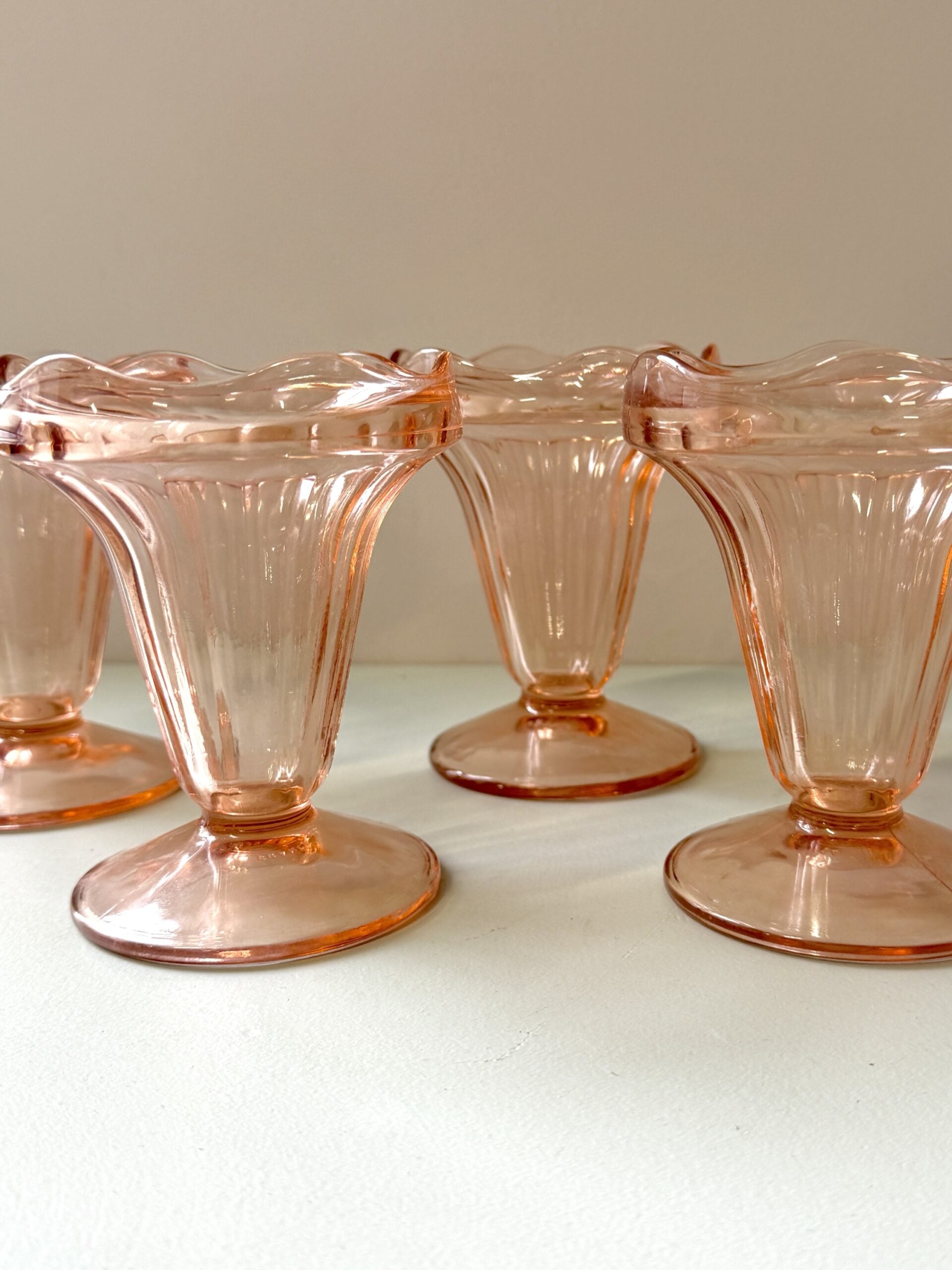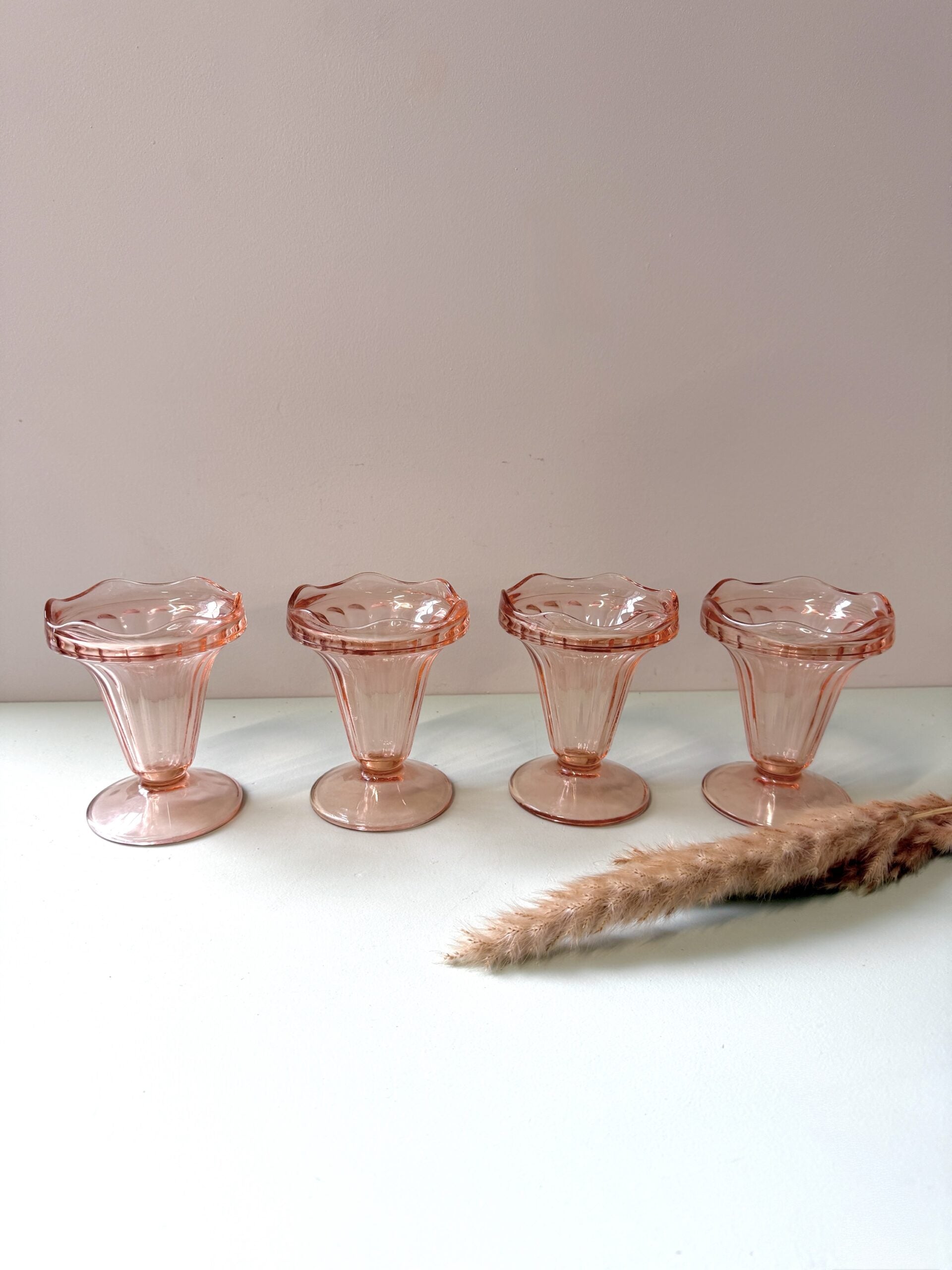 Coupes à glace vintage en verre moulé rose – lot de 4