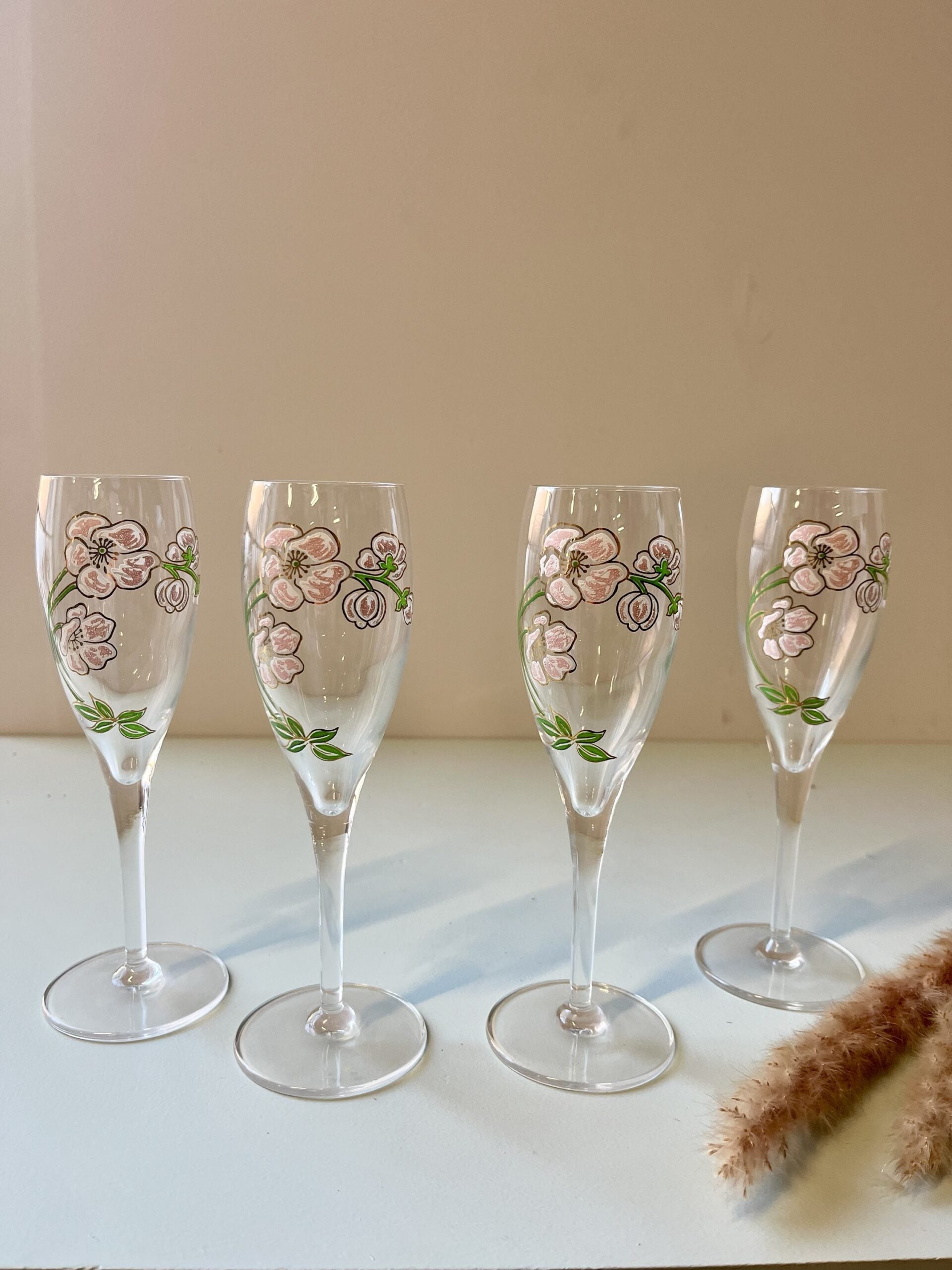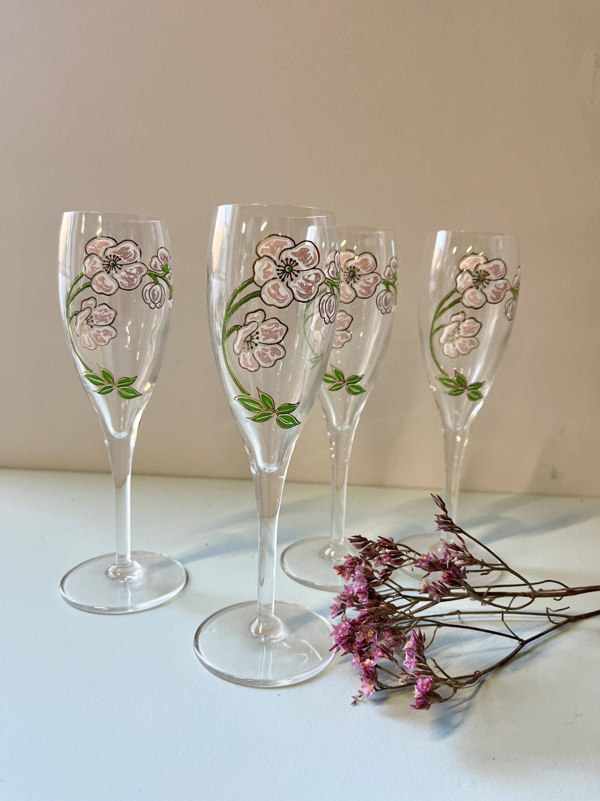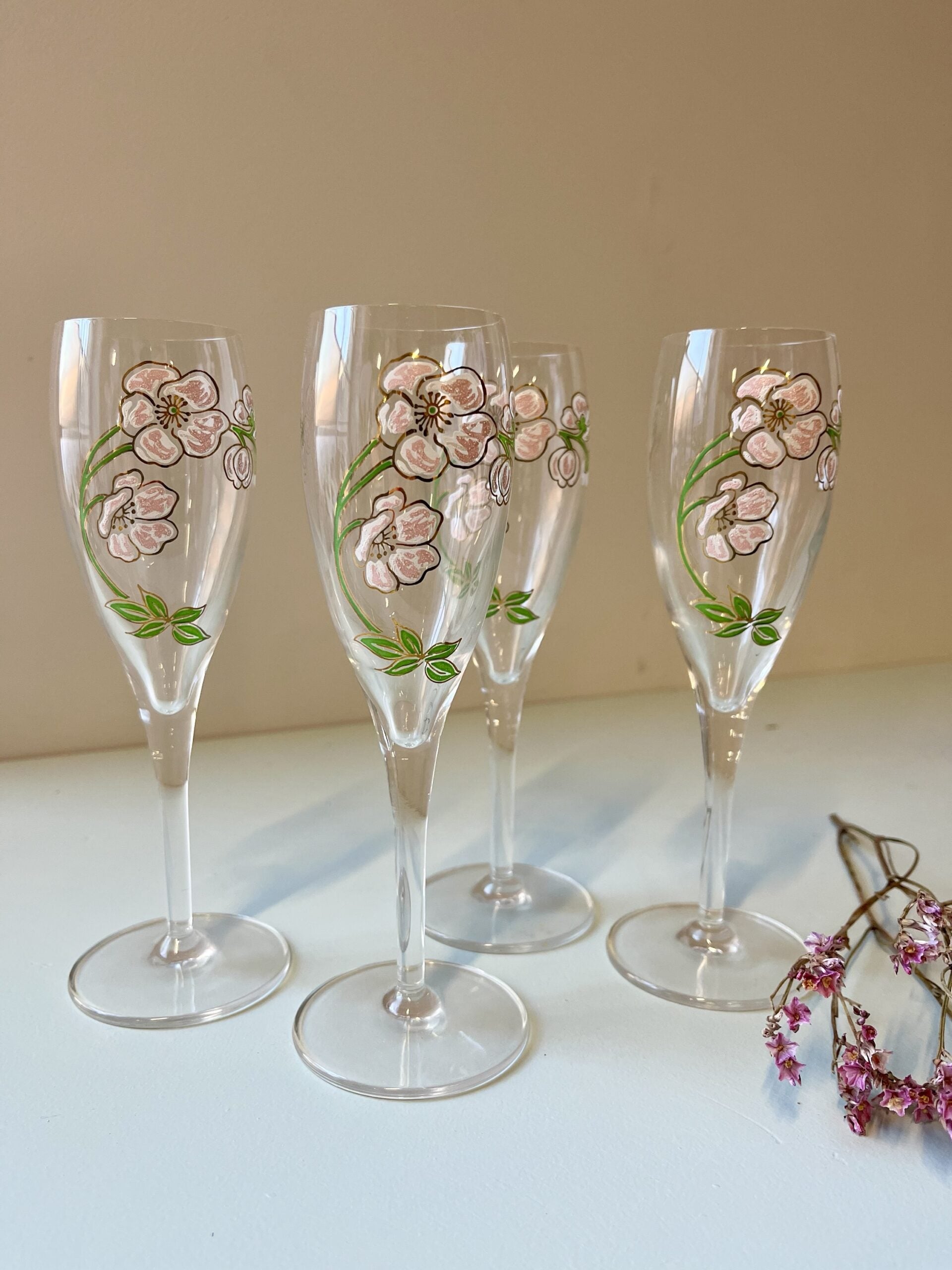 Lot de 4 flûtes à champagne à décor floral Perrier-Jouë
