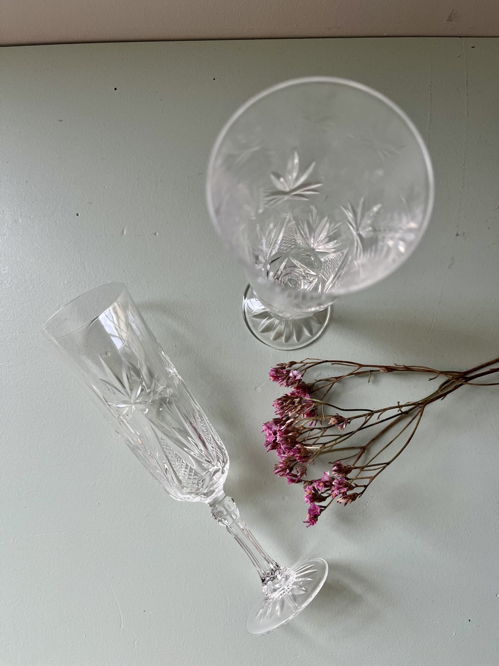 Flûtes à champagne en cristal ancien