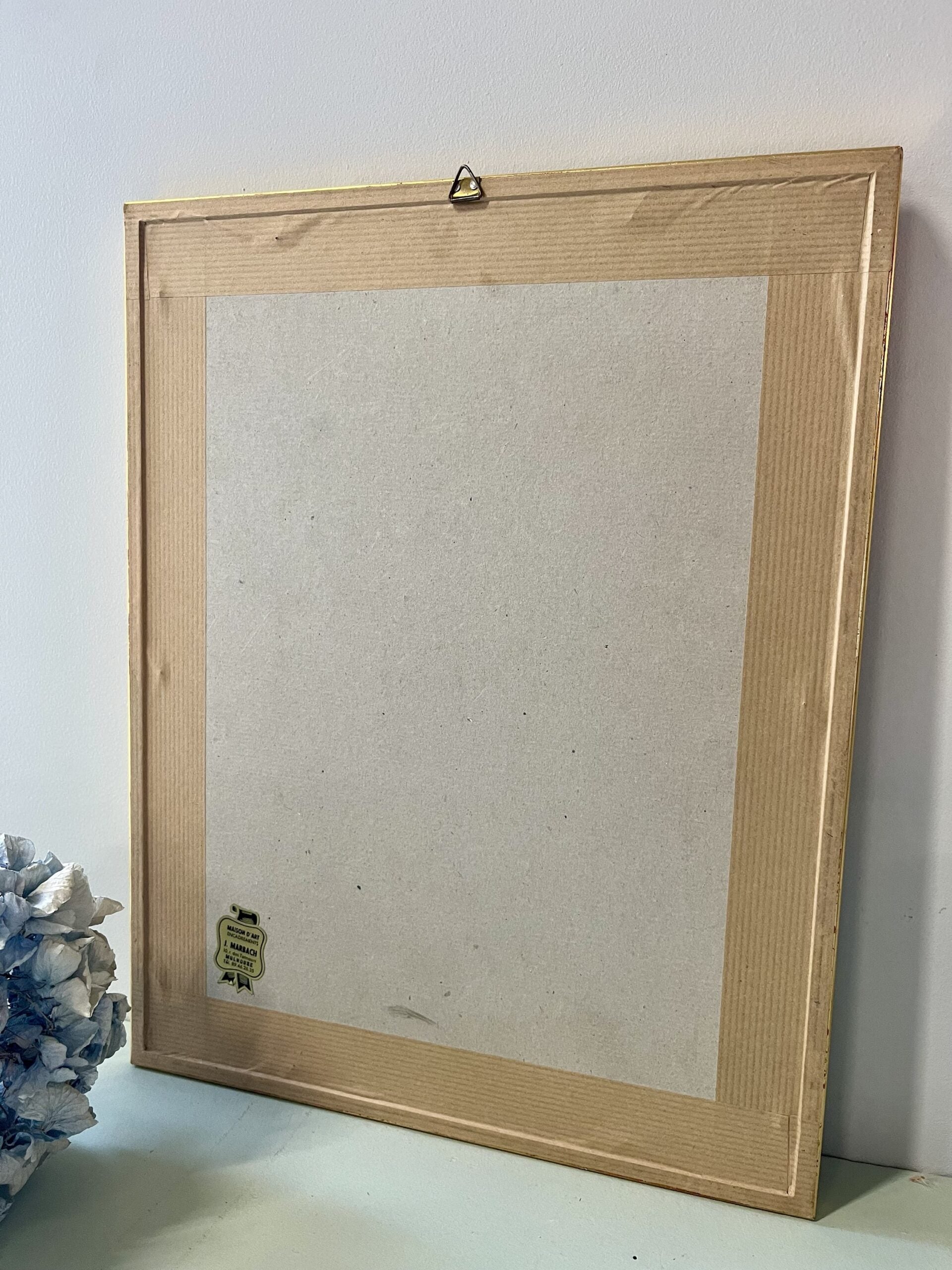 Présentée sous verre avec un encadrement sobre, la gravure est prête à être accrochée. Son format (35,5 x 28 cm) lui permet de trouver facilement sa place dans une entrée, un salon ou une chambre, seule ou associée à d’autres trouvailles de brocante.Pour les amateurs d’art et de seconde main