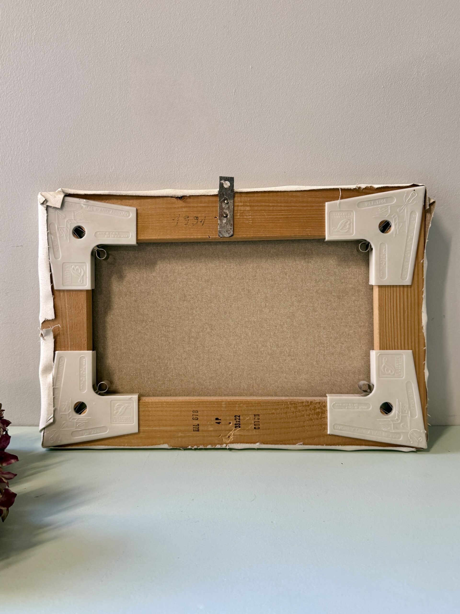 Ce tableau ancien représente une maison alsacienne traditionnelle, reconnaissable à ses colombages et à son architecture typique. Le paysage est traité avec un pinceau souple et spontané, dans une palette de verts, de beiges et de bruns, qui donne une lecture douce et équilibrée de la scène.Son format compact permet de le placer facilement sur une étagère, un buffet, une console ou au sein d’un mur de cadres. Il apporte une touche régionale discrète dans un intérieur moderne, ou complète naturellement une décoration plus authentique ou campagne.