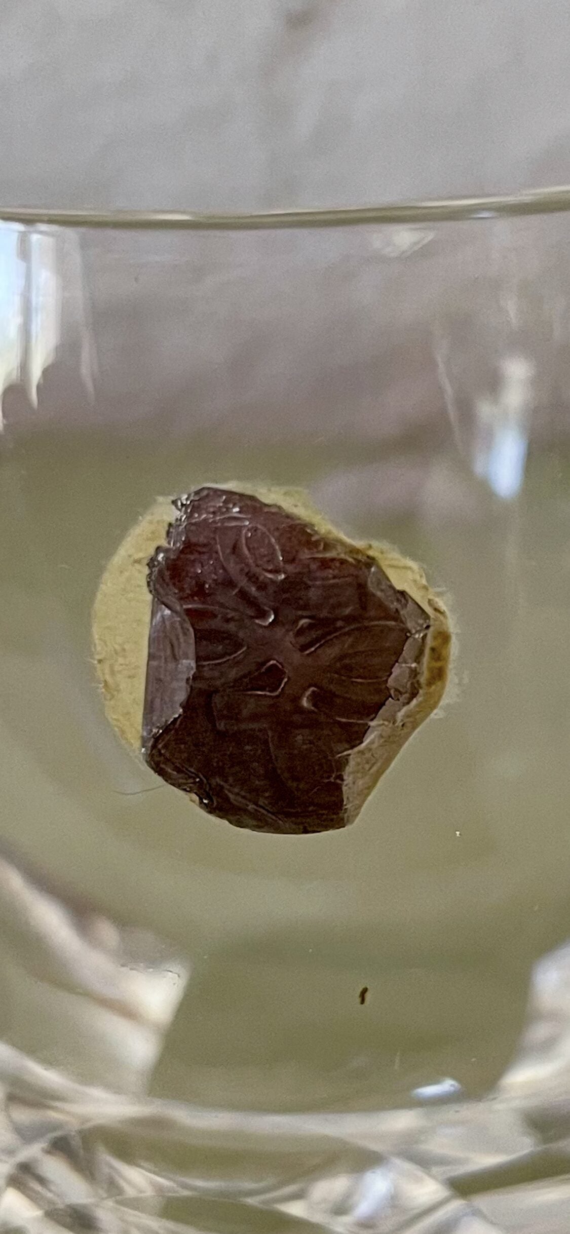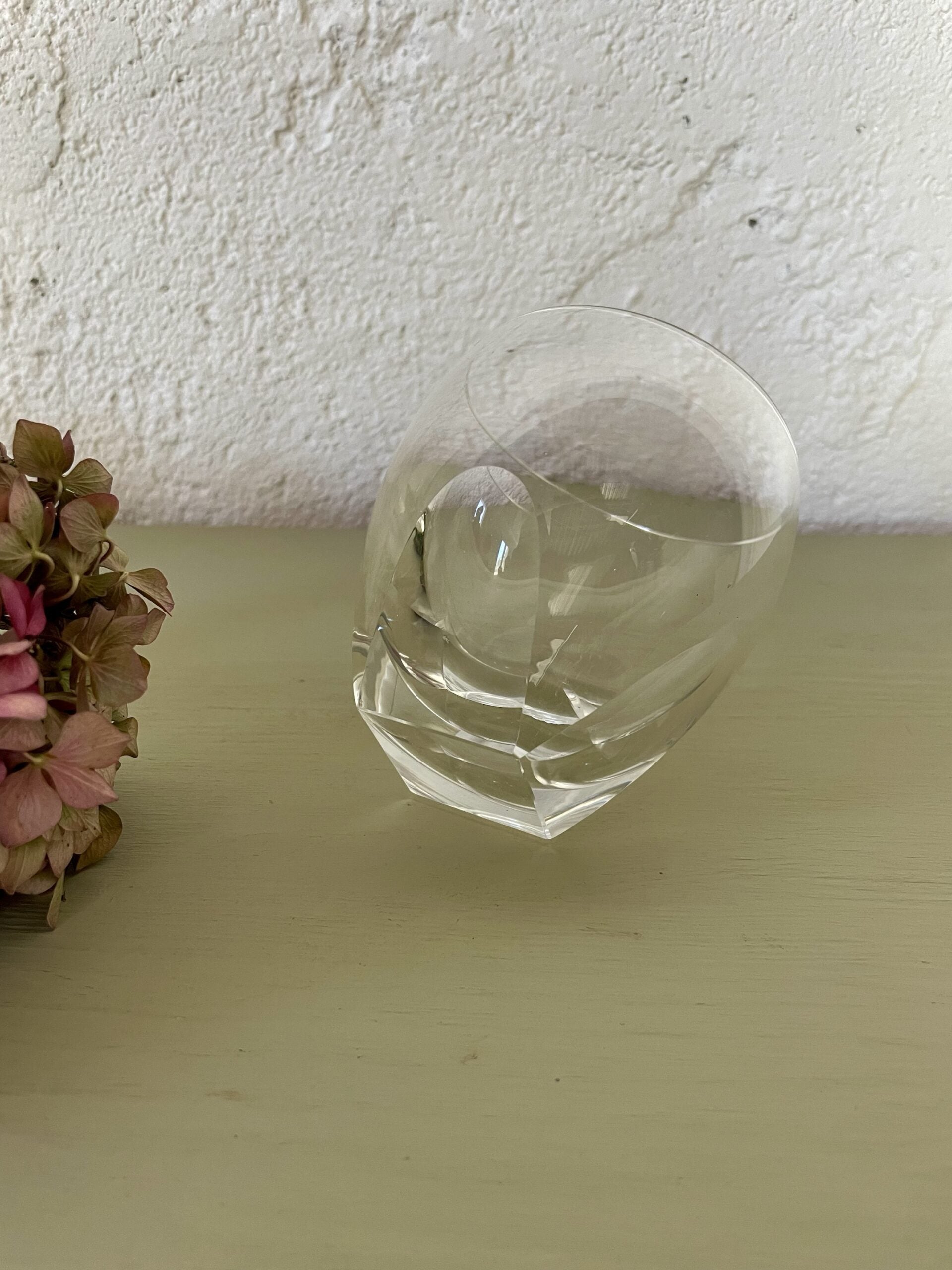 L’un des verres conserve encore son étiquette d’origine (probablement cristal européen)