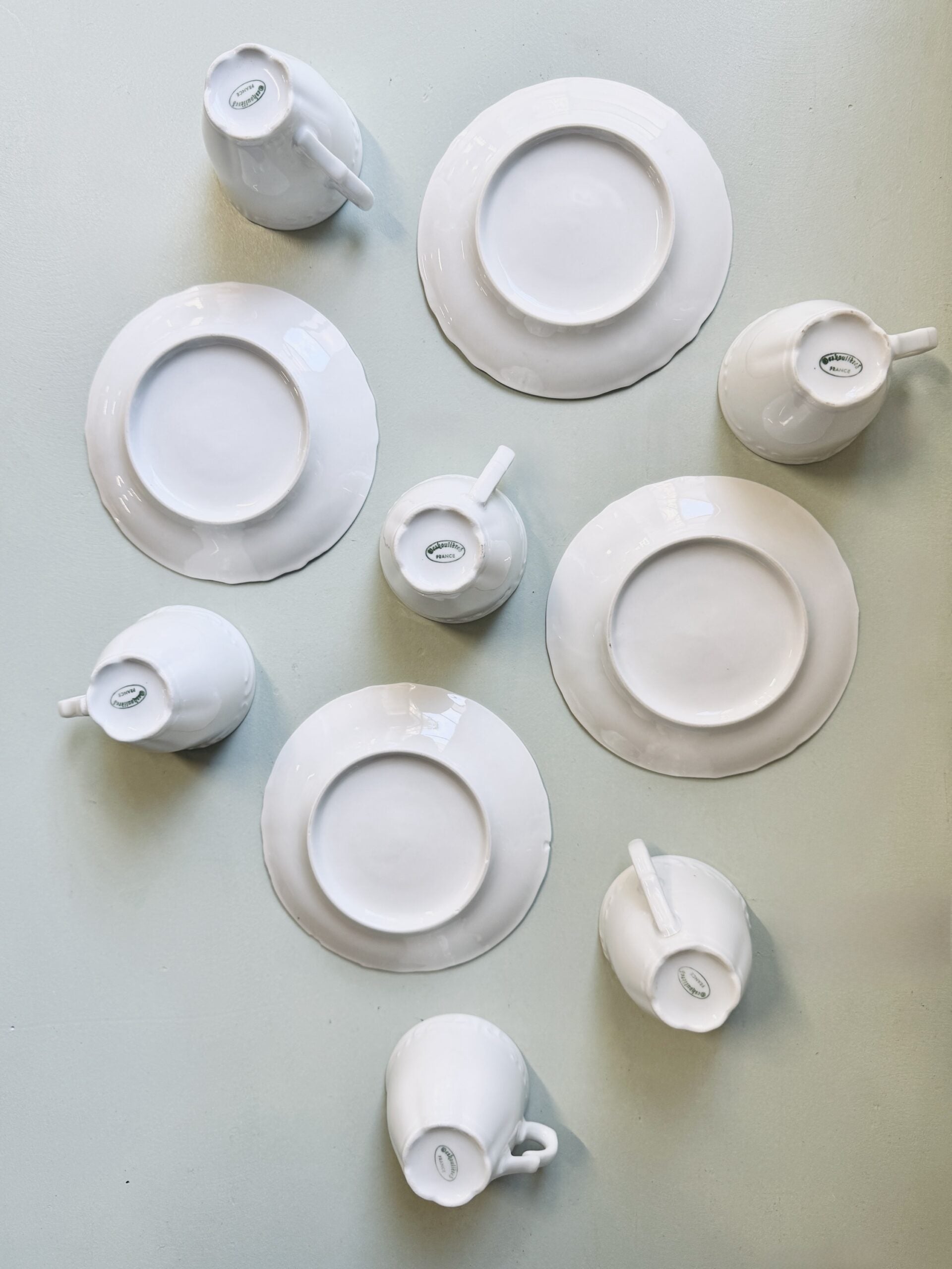 Tasses anciennes Deshoulières – lot porcelaine blanche (6 tasses + 4 coupelles)