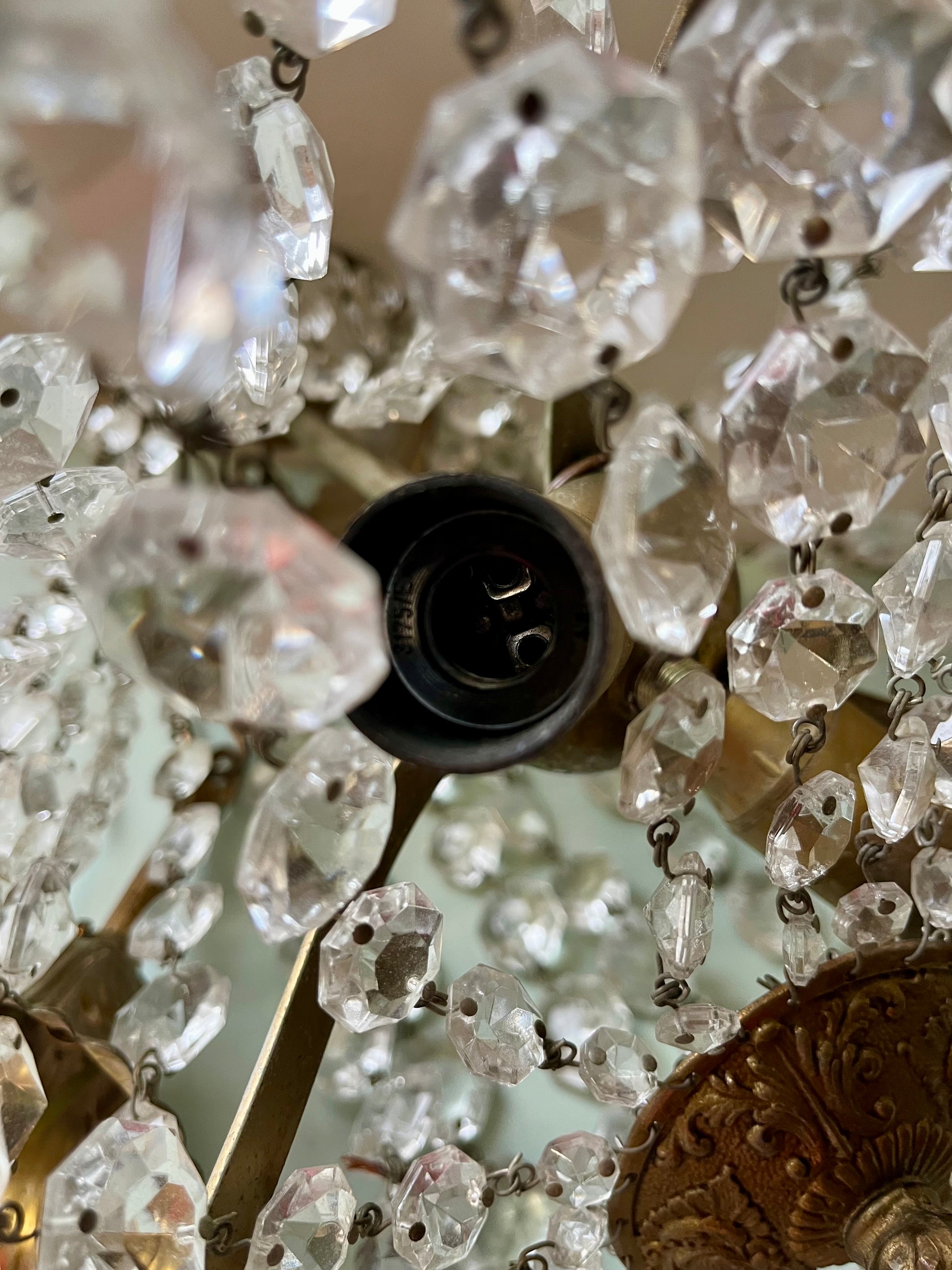 Inspiré des modèles de style Louis XV, ce type de luminaire était très répandu au début et au milieu du XXe siècle dans les maisons de famille et les appartements bourgeois.