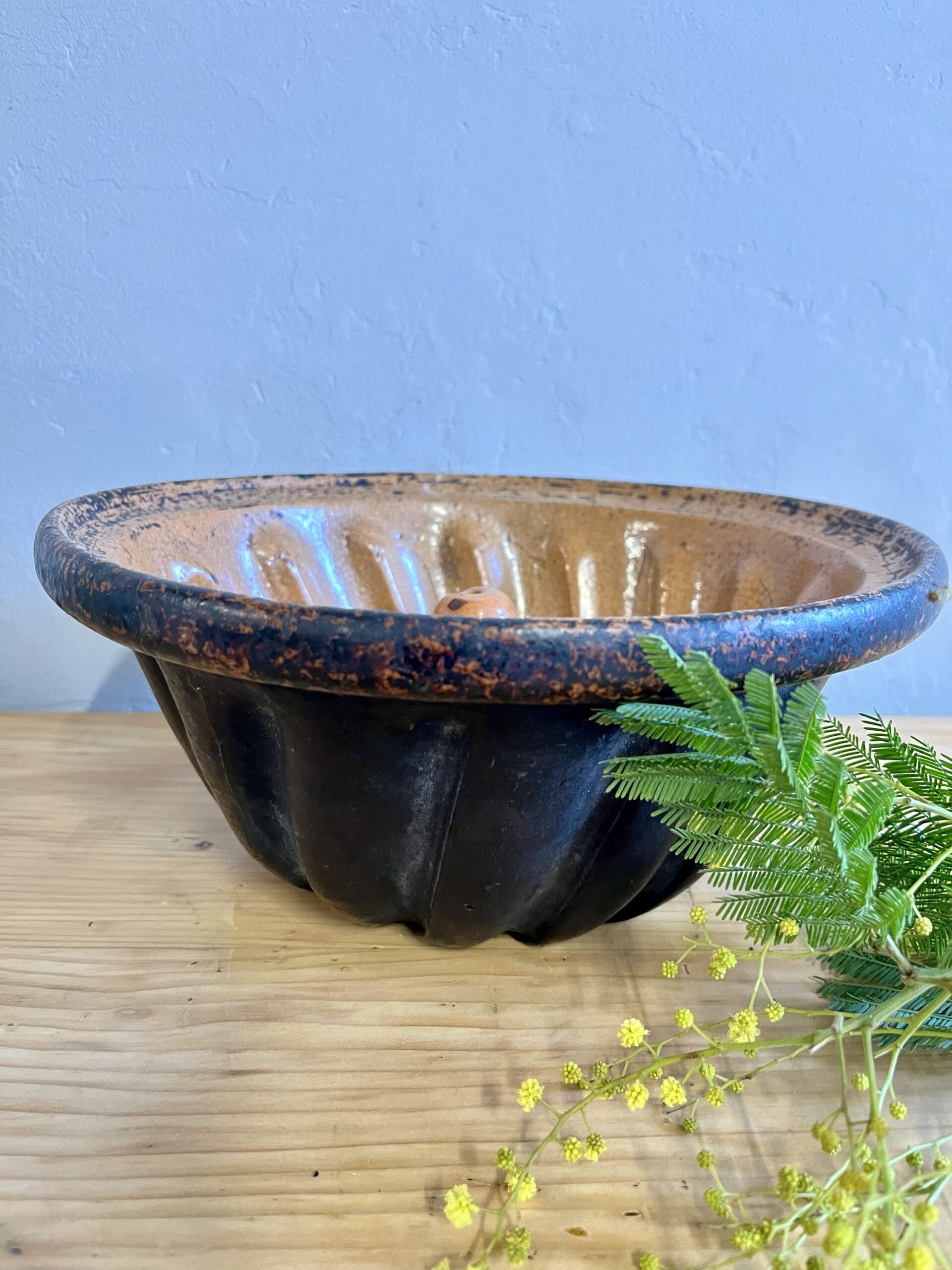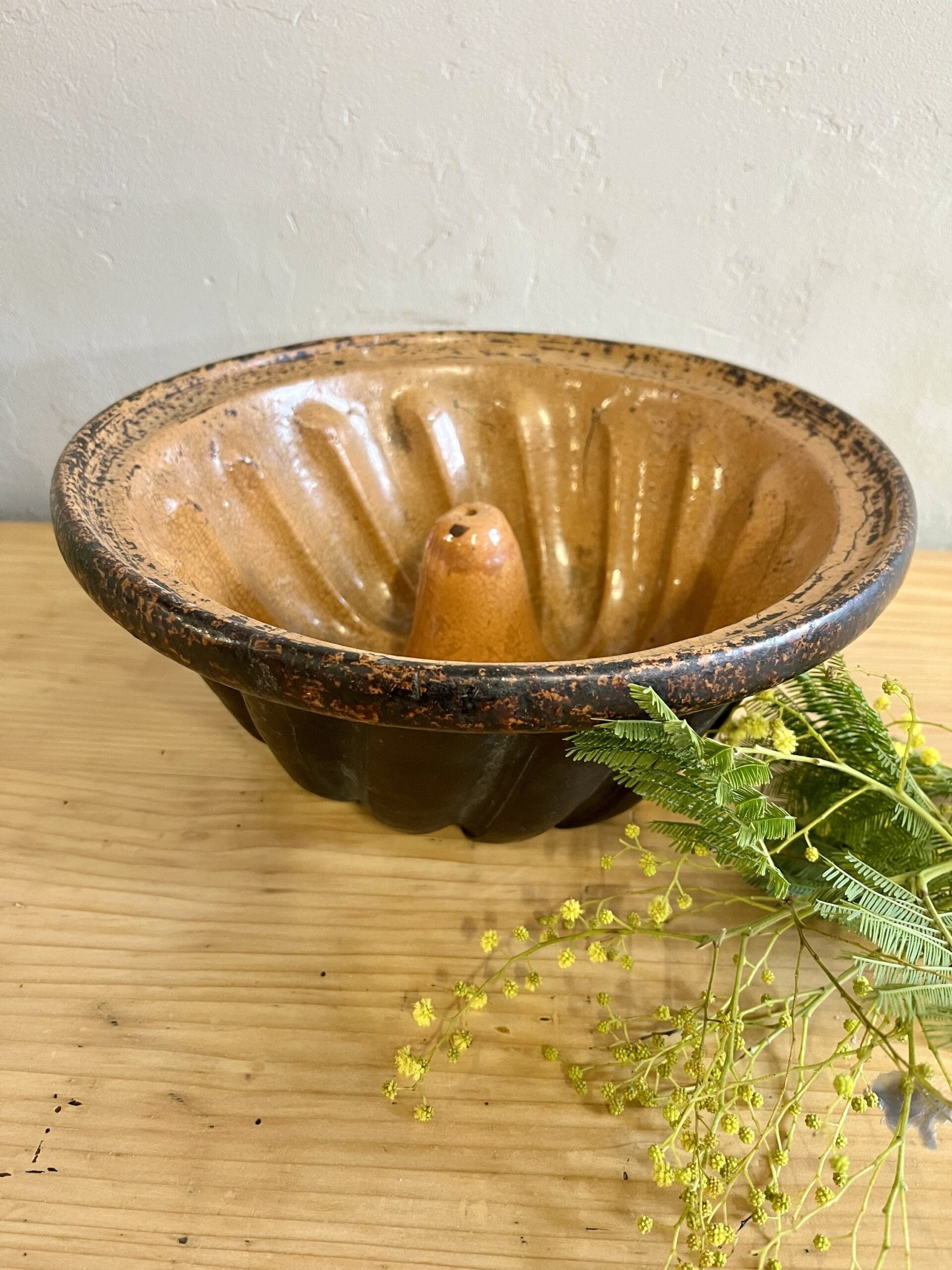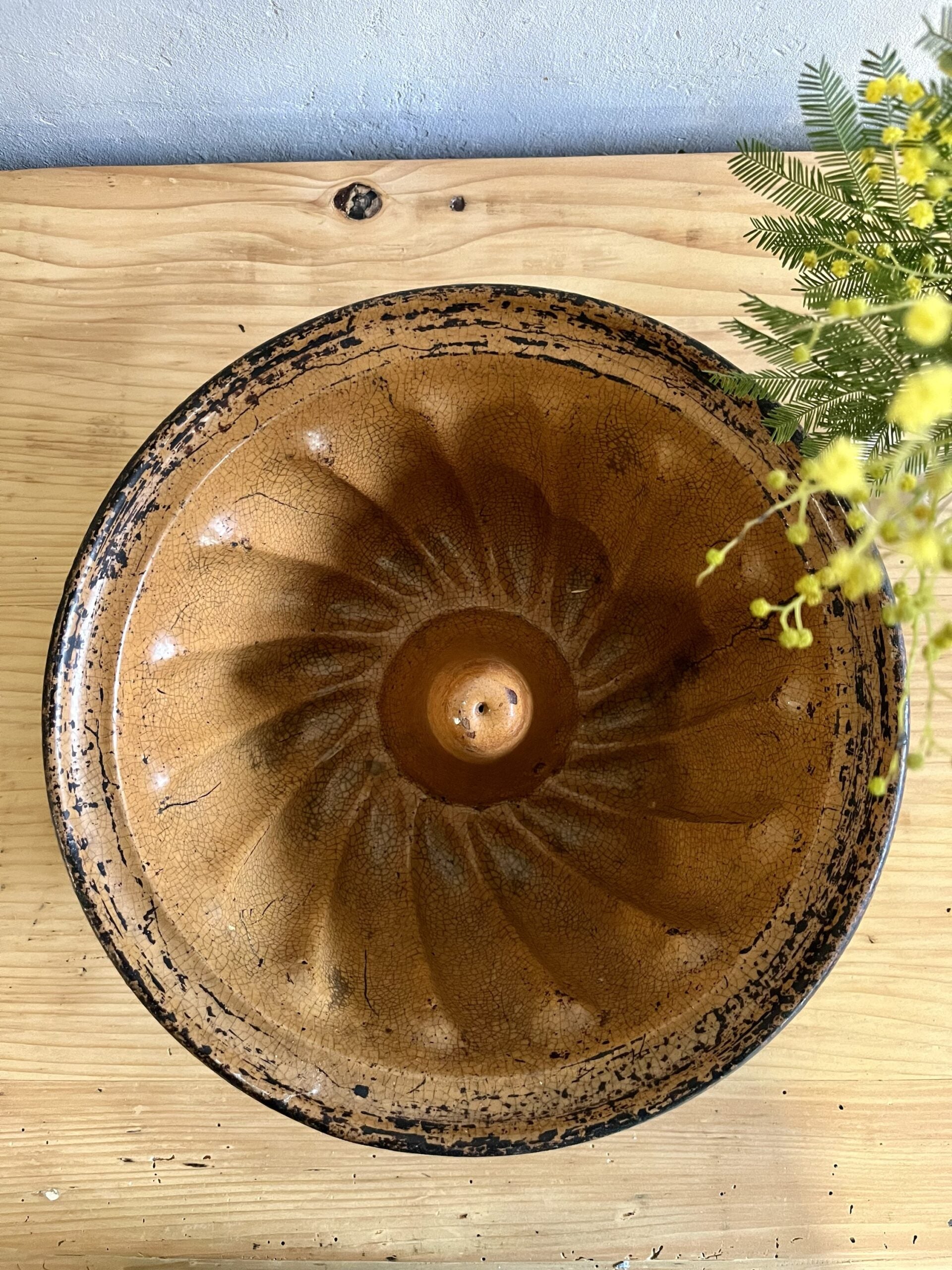 Moule à kouglof ancien, typique des cuisines d’Alsace et des tables familiales. Pièce emblématique de la pâtisserie traditionnelle, idéale pour réaliser un kouglof maison ou simplement l’exposer dans une cuisine esprit brocante.