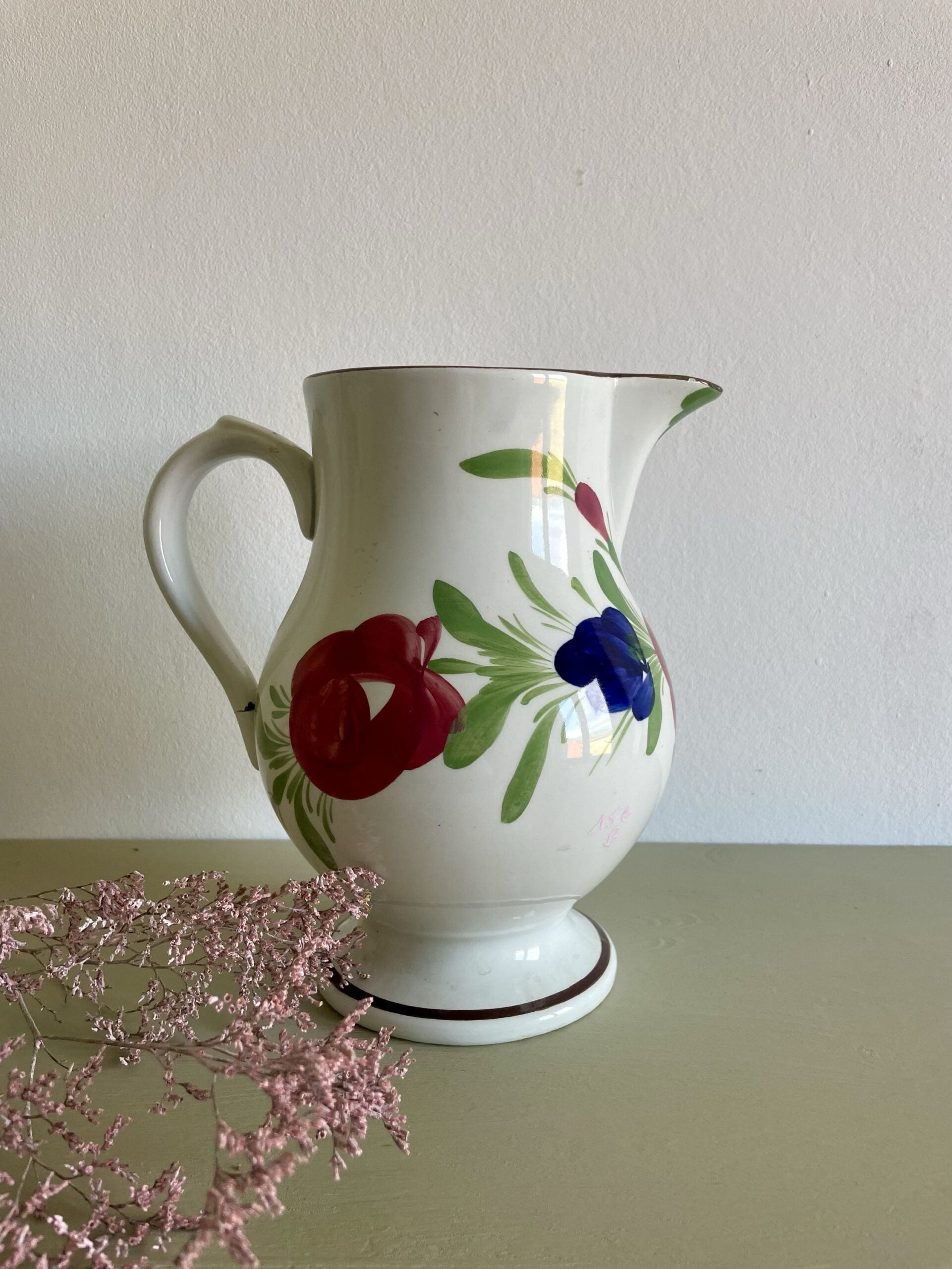 * Décor floral : Les délicates fleurs aux couleurs vives, peintes à la main, apportent une touche de fraîcheur et de gaieté à ce pichet.
