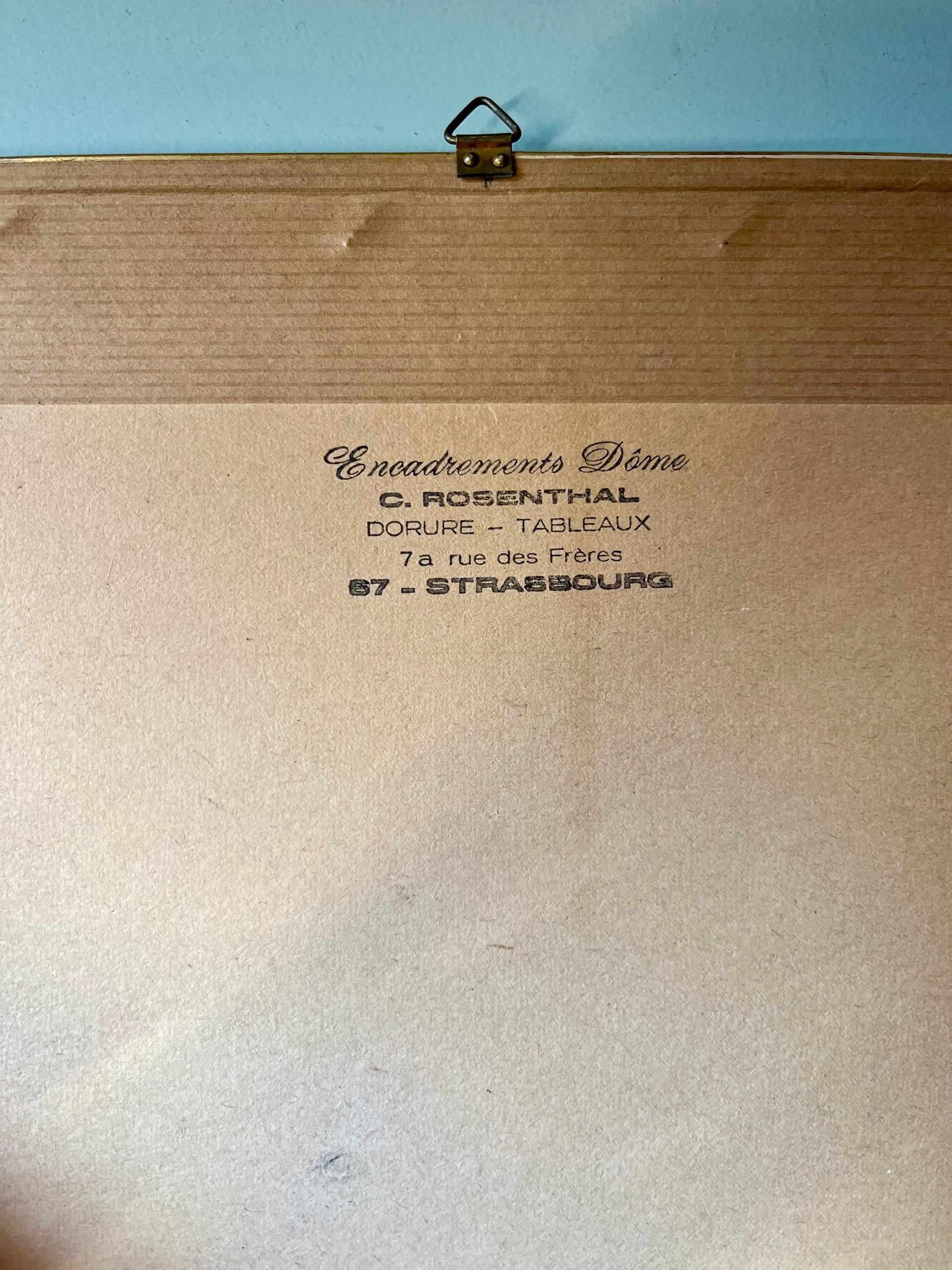 - Provenance encadrement : Encadrements Dôme C. Rosenthal, 7a rue des Frères, Strasbourg