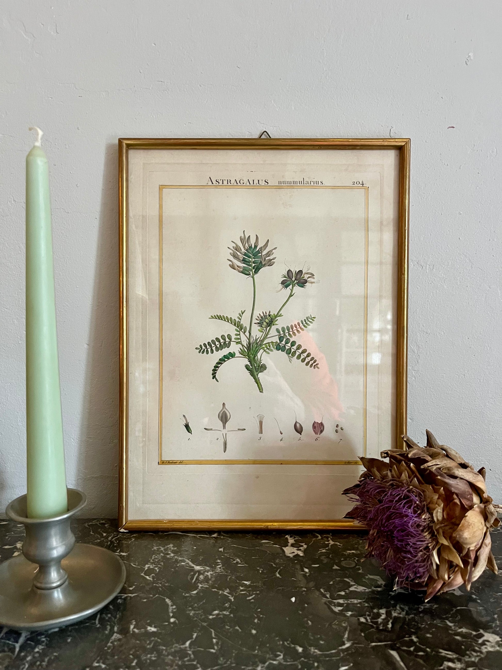 Planche botanique ancienne Astragalus – gravure encadrée dorée