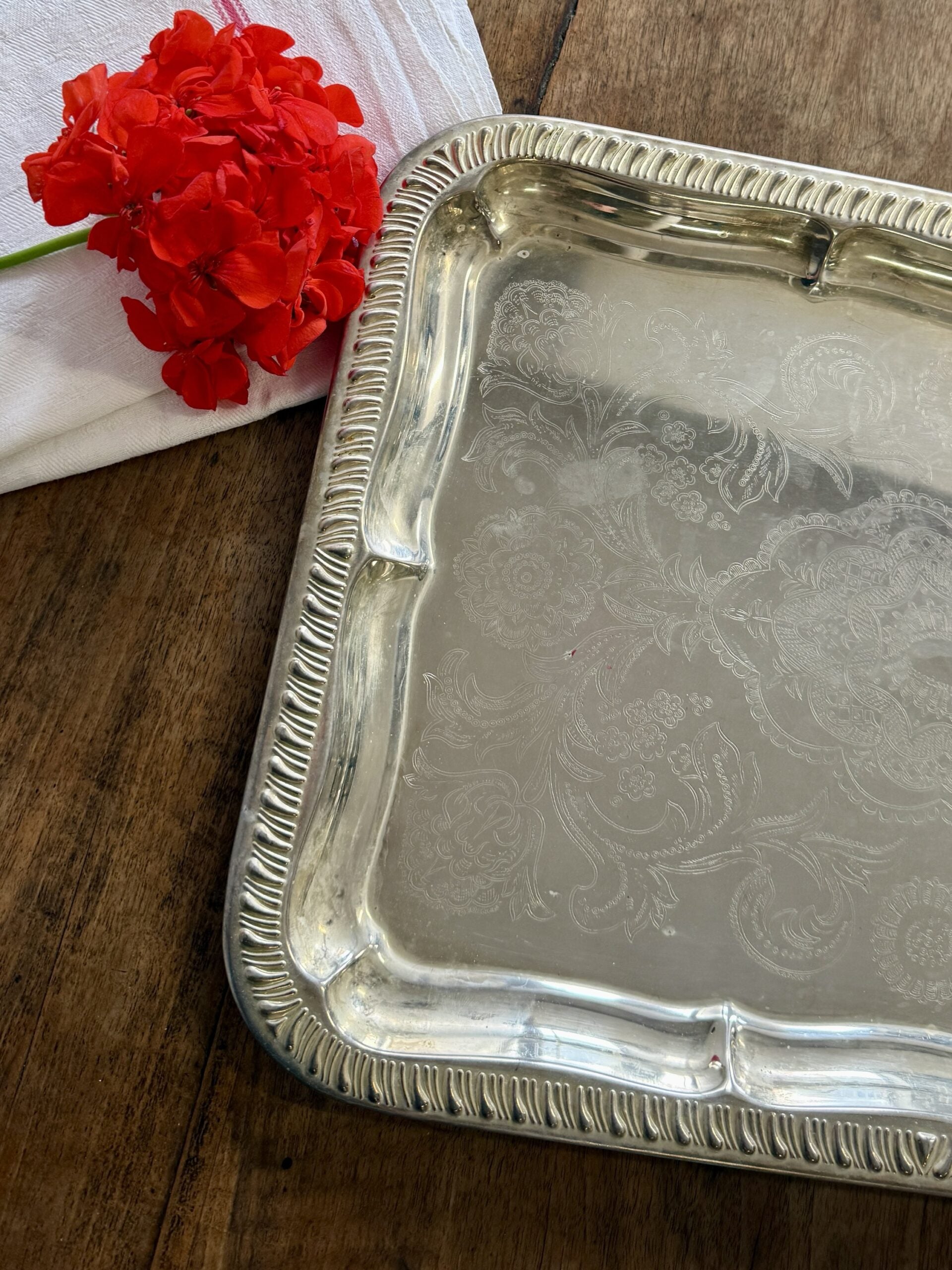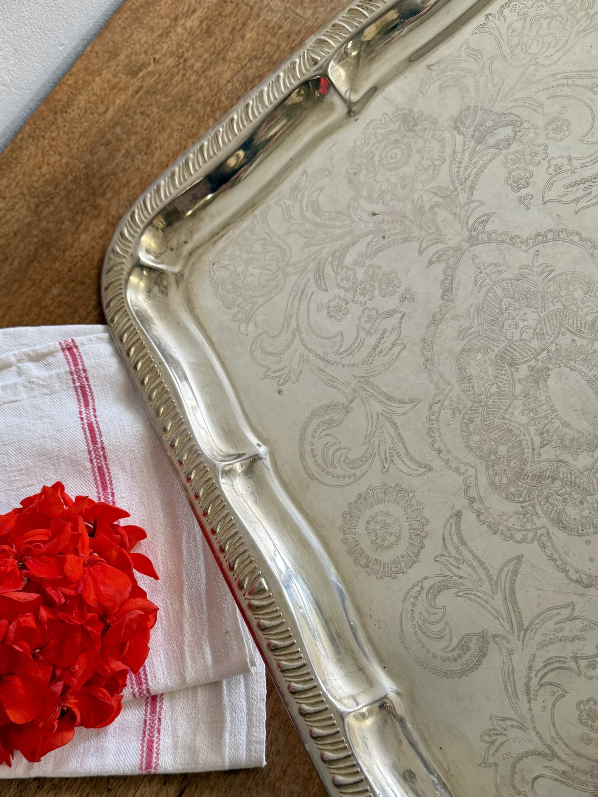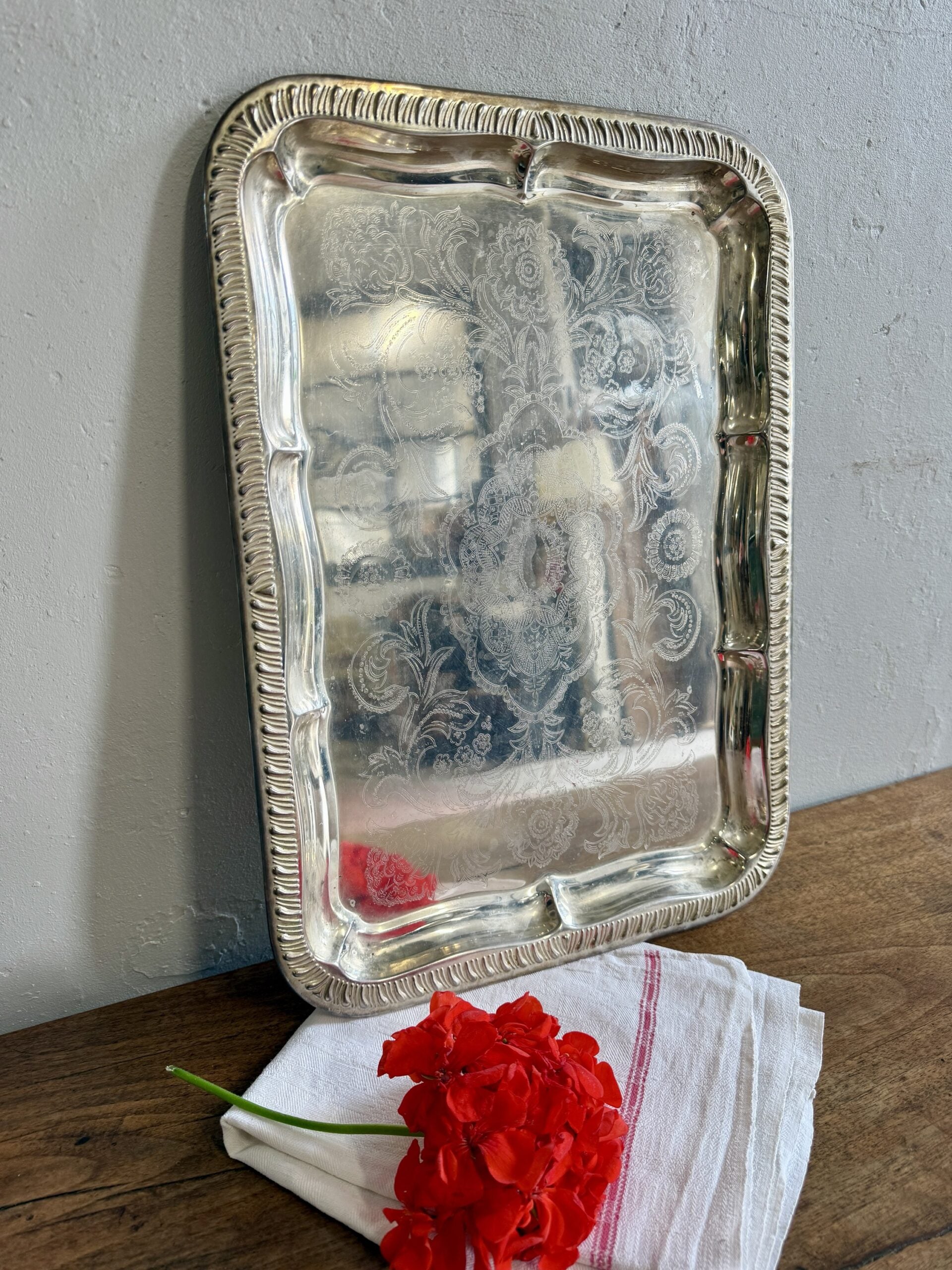 Plateau en argent gravé