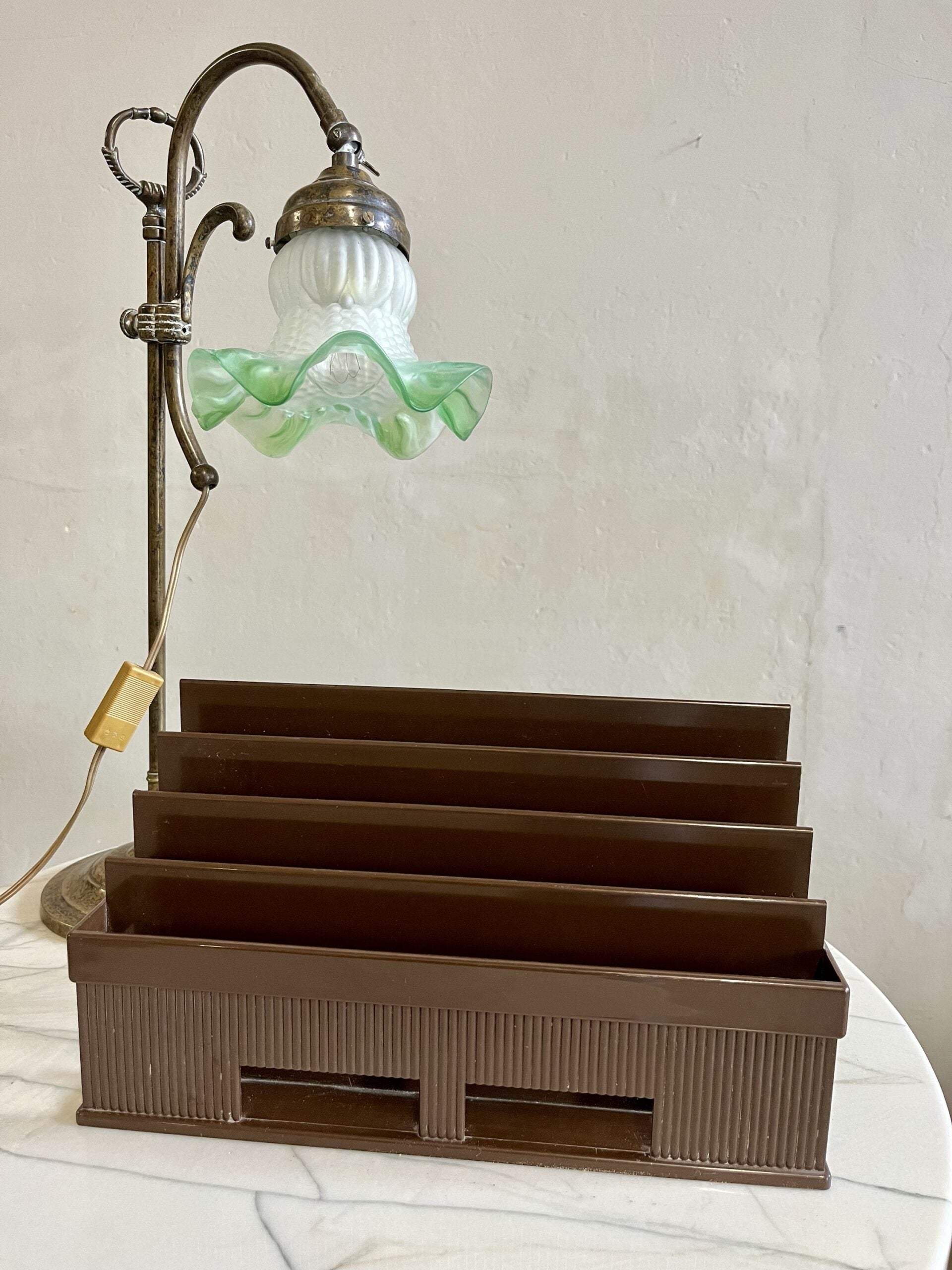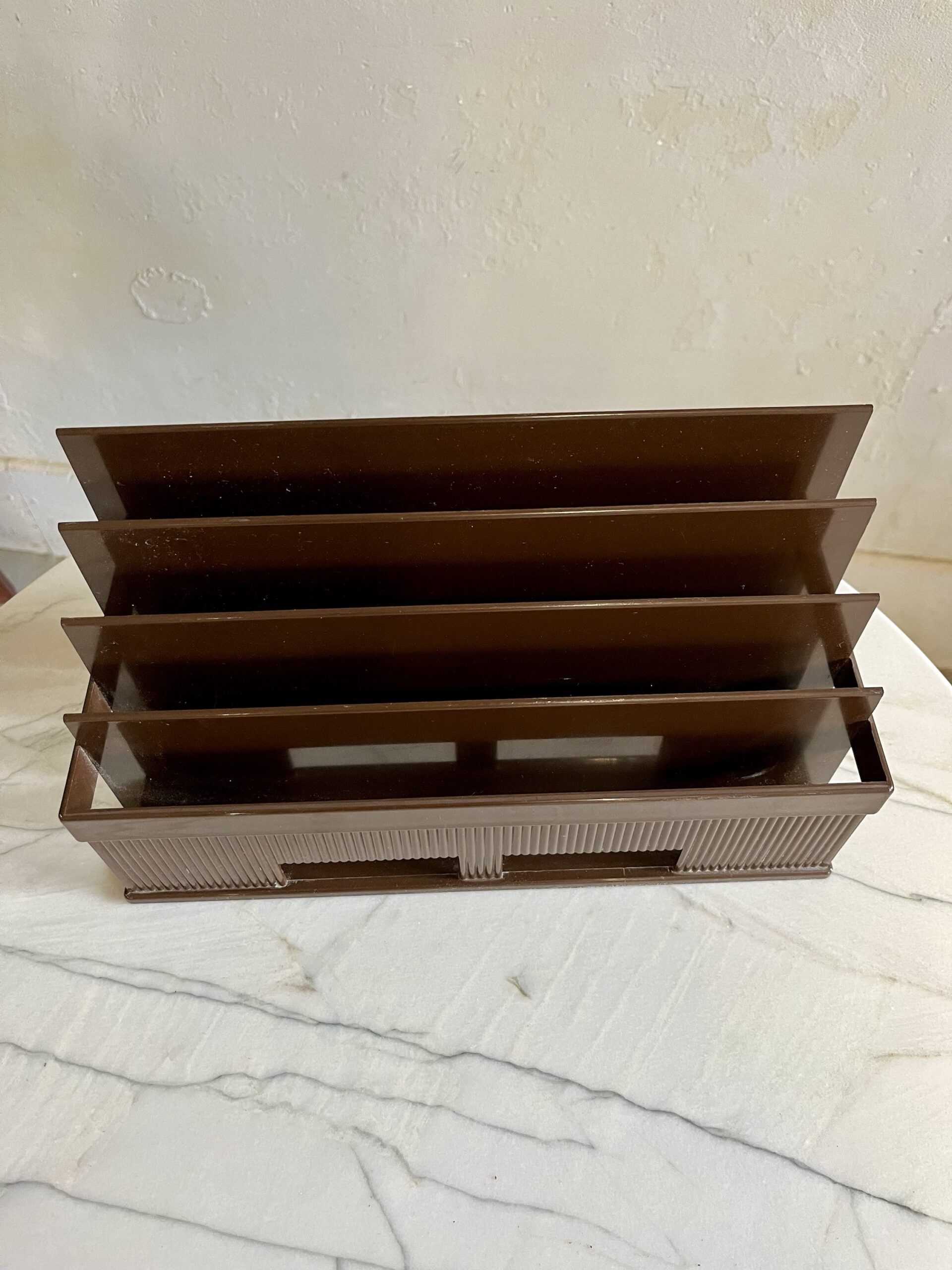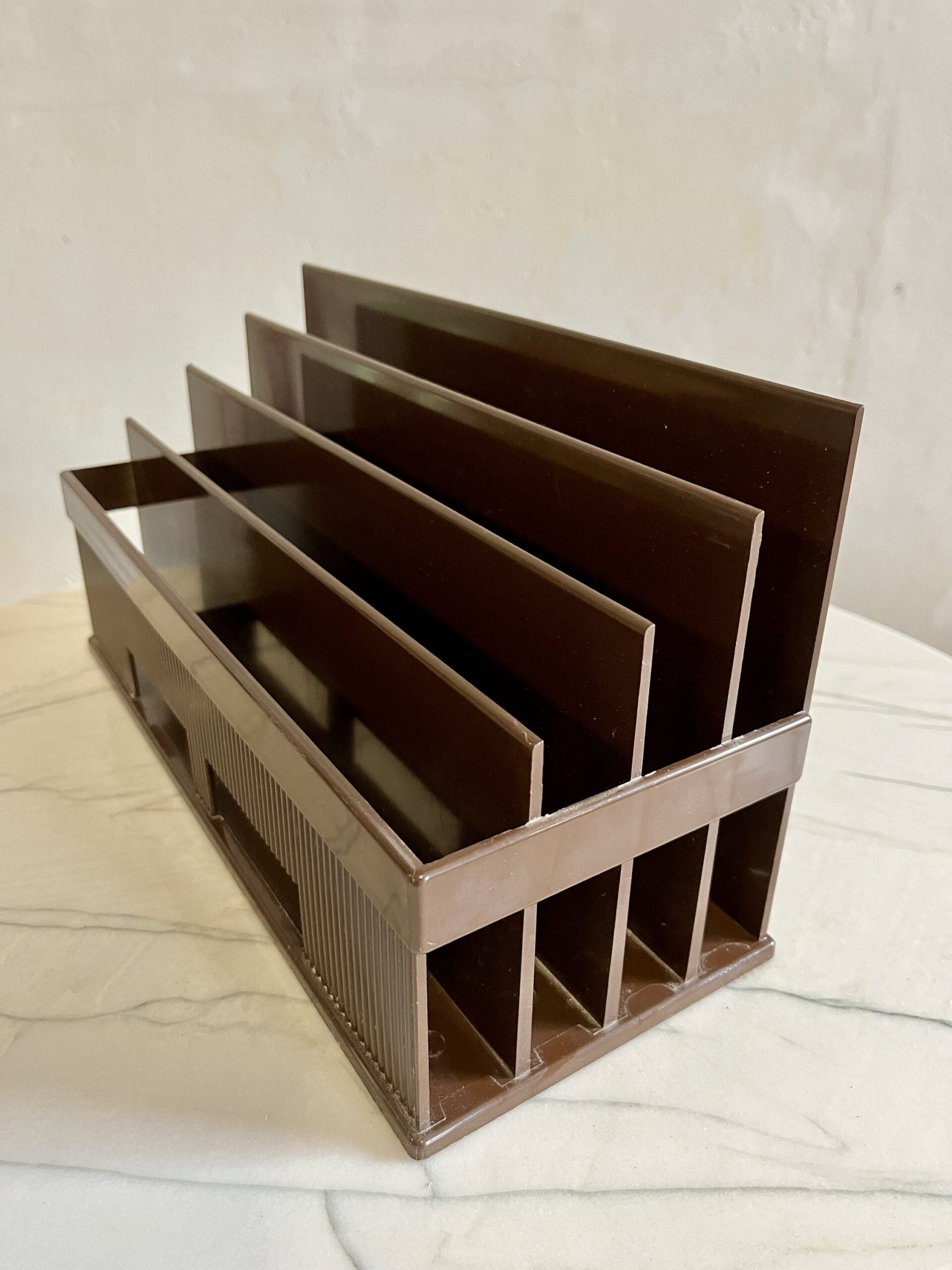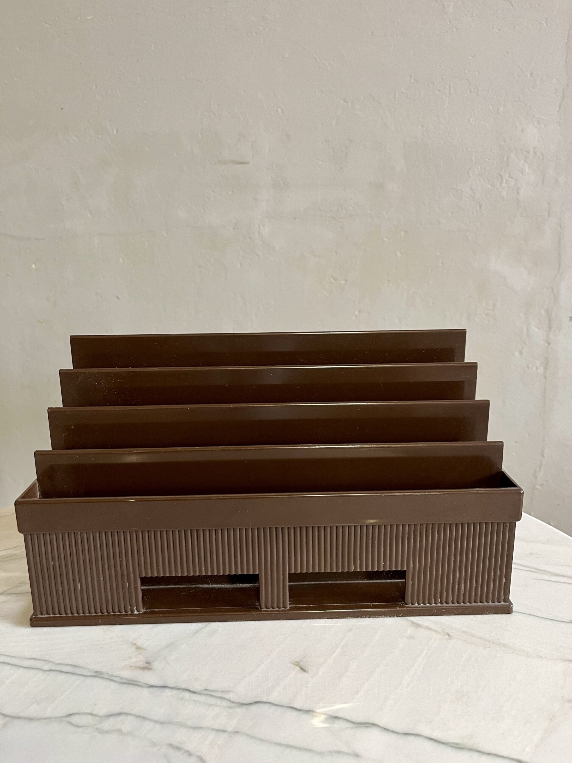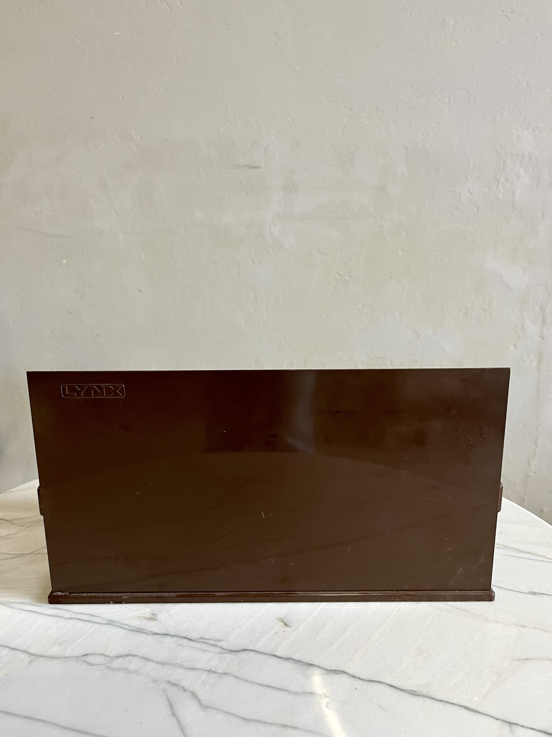 Grand porte-courrier en plastique marron de la marque Lynx datant des années 70.