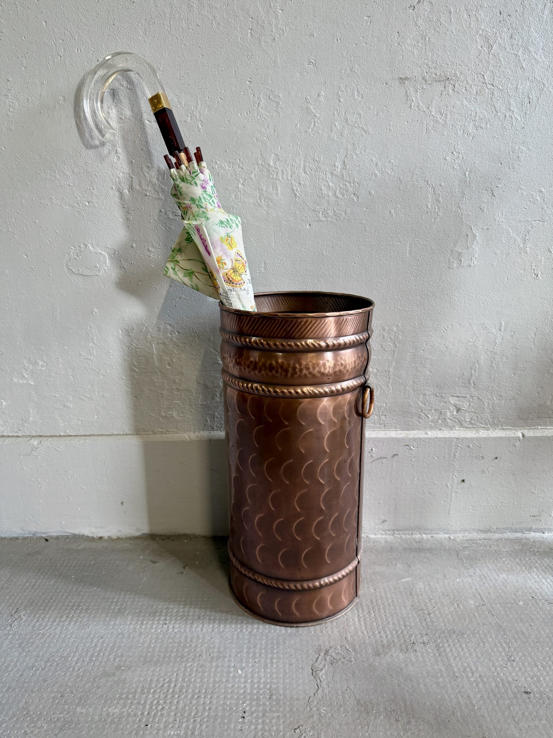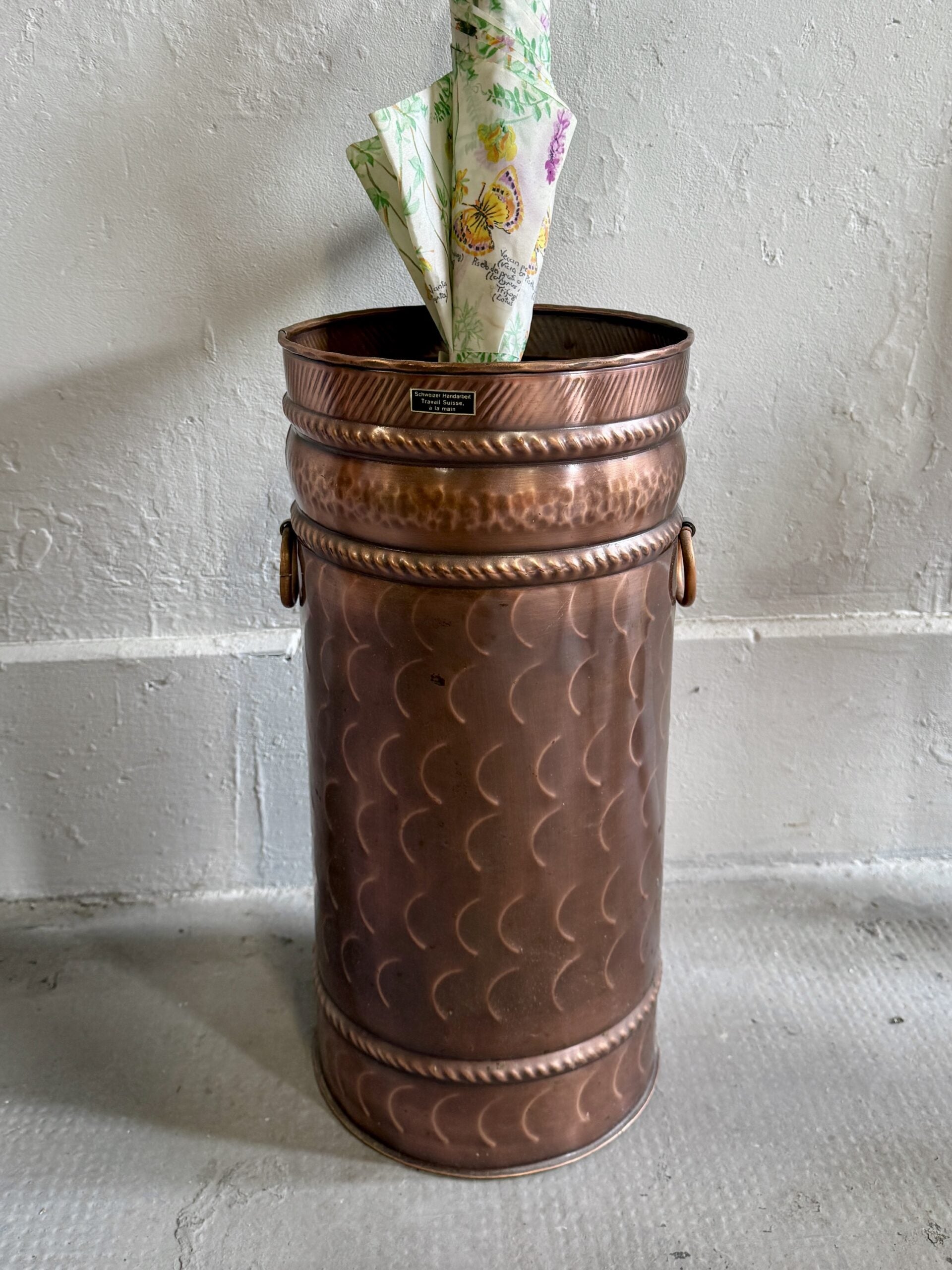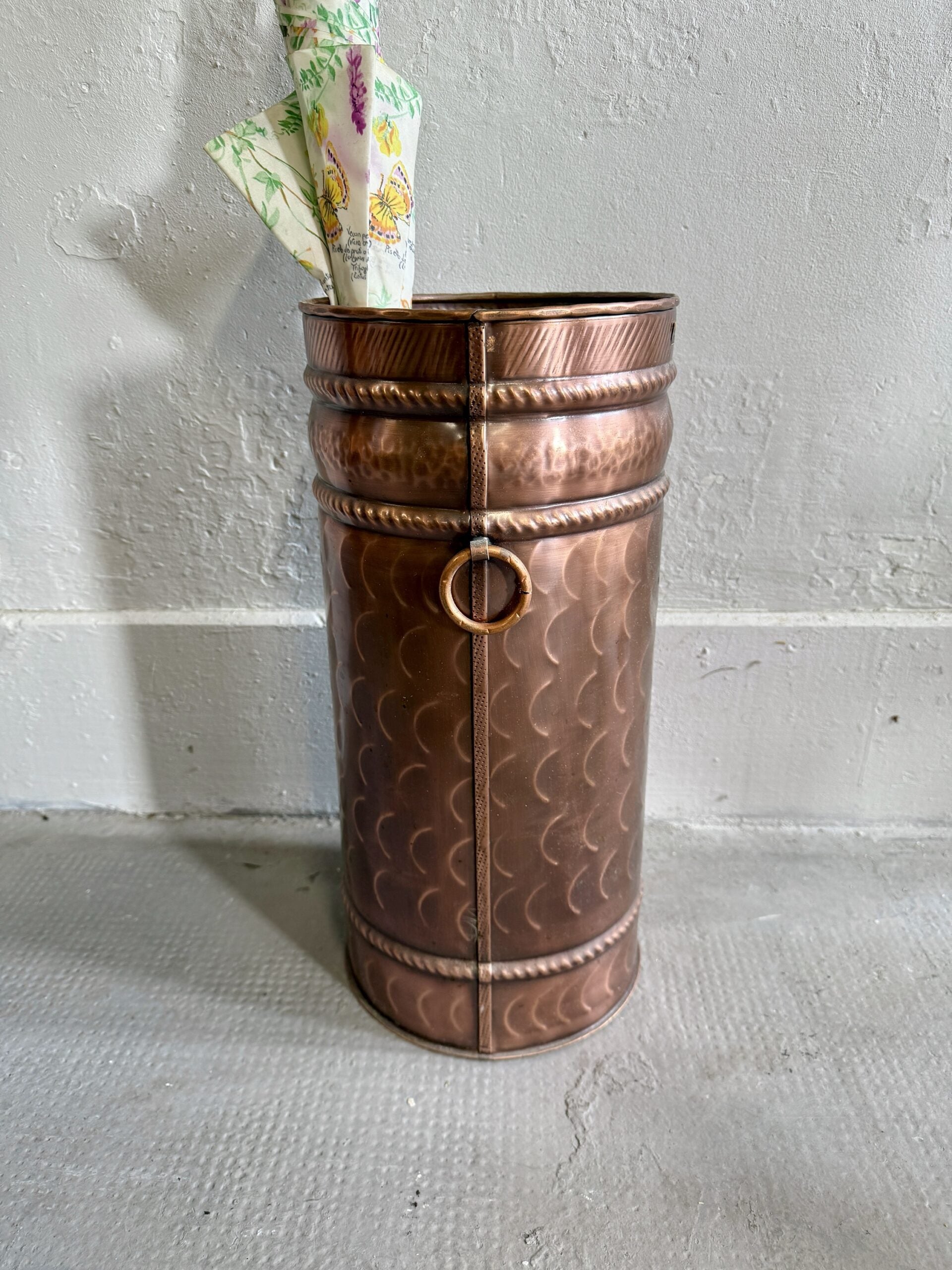 Porte-parapluies ancien en cuivre martelé – travail suisse à la main
