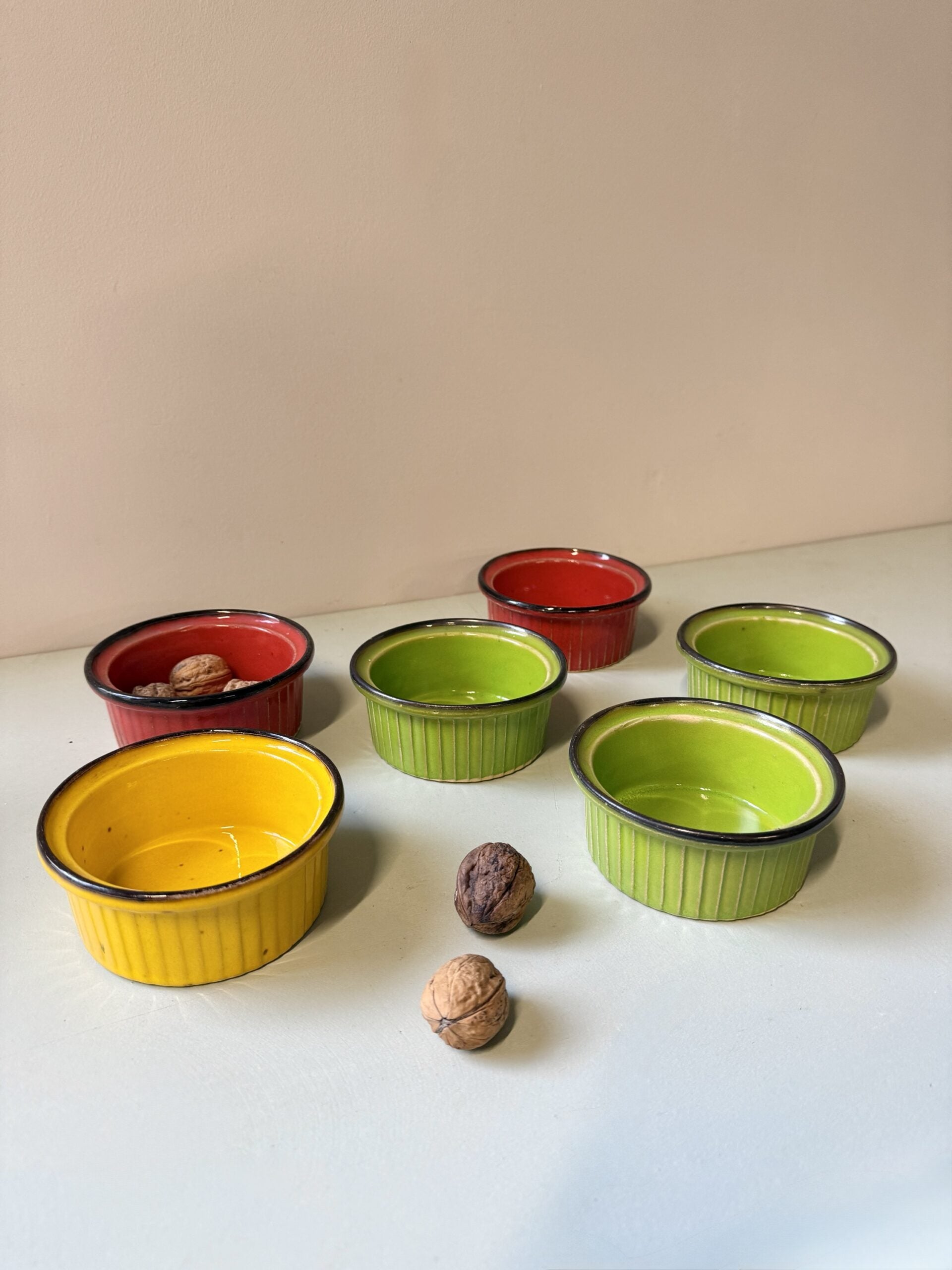 Ramequins alsaciens vintage colorés – lot de 6
