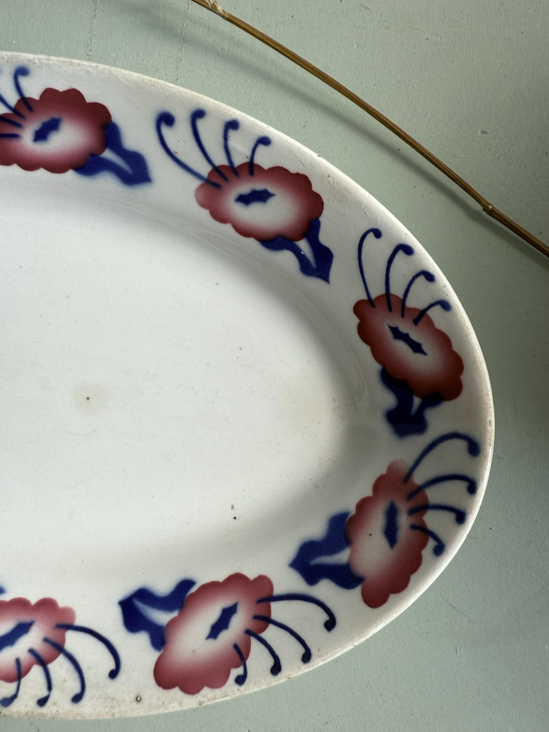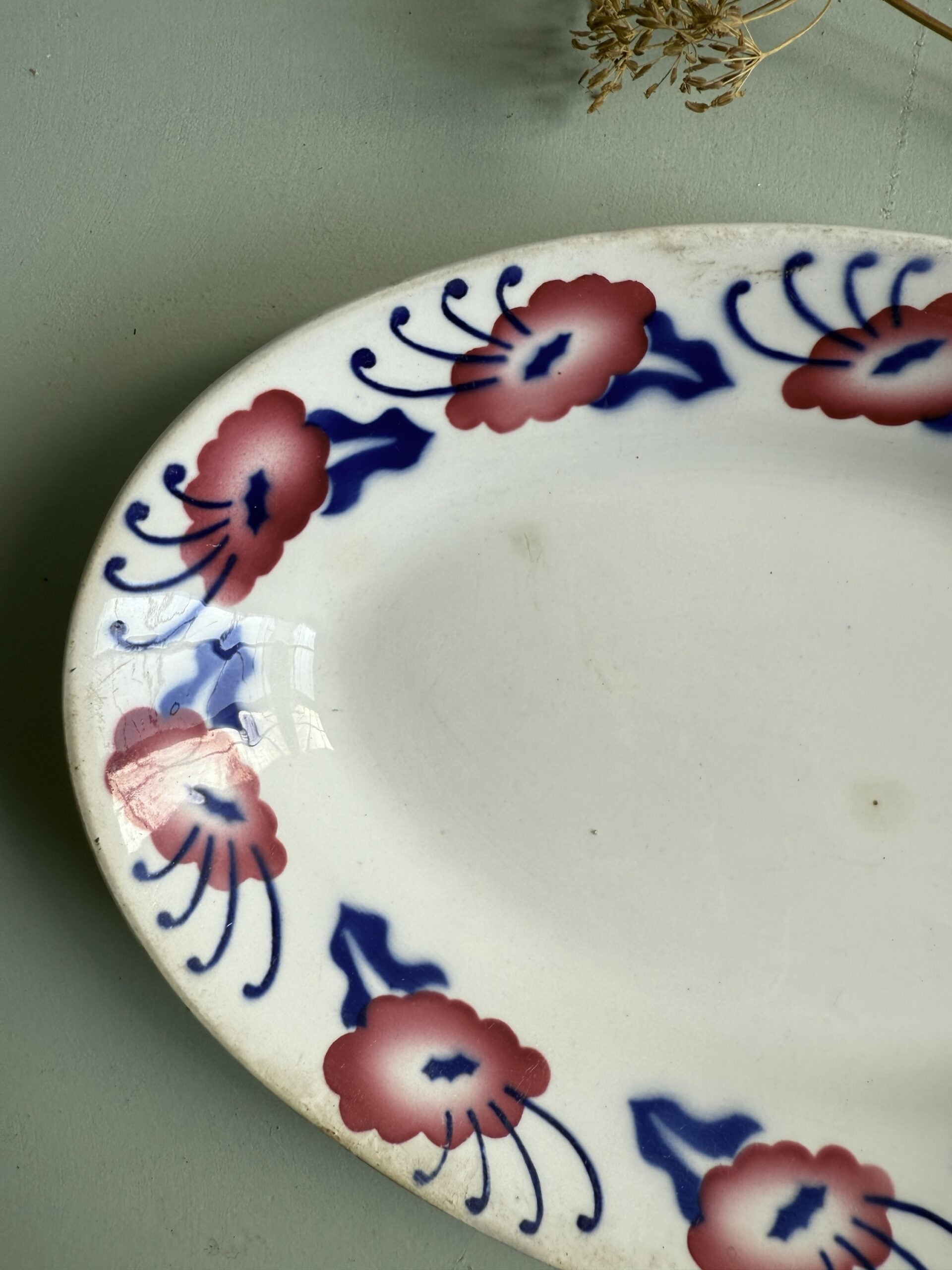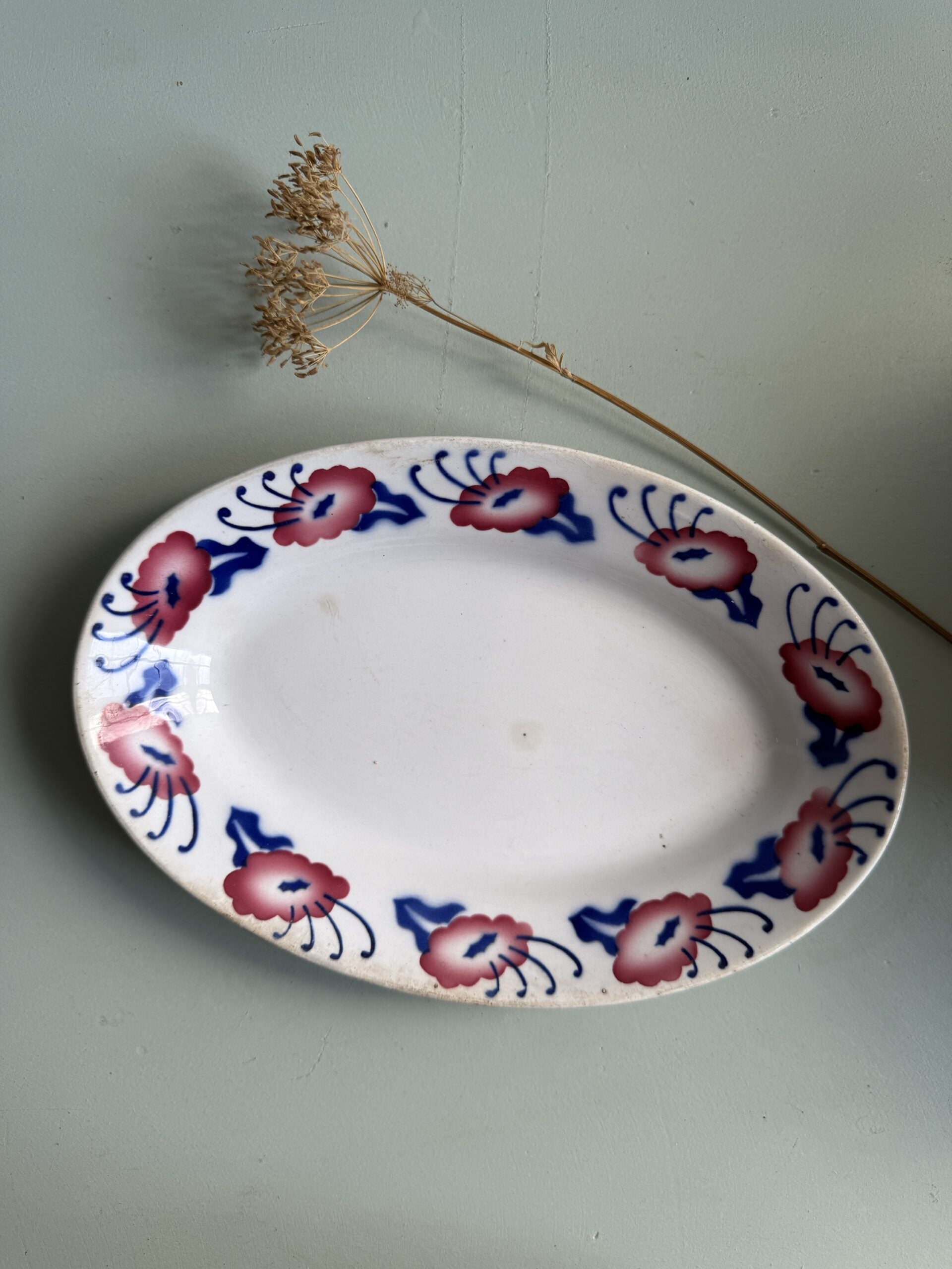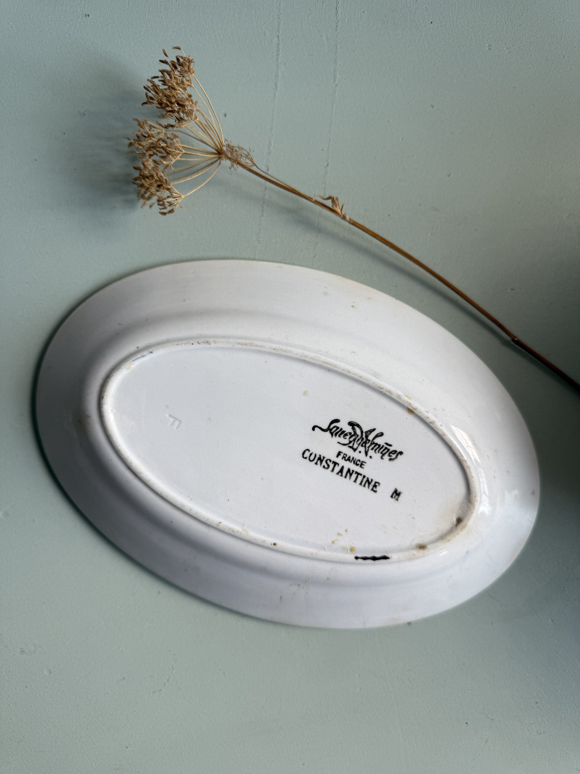 Ravier en faïence de la manufacture de Sarreguemines, modèle Constantine. Sa forme ovale et son décor floral sur le pourtour en font une pièce à la fois pratique et décorative.