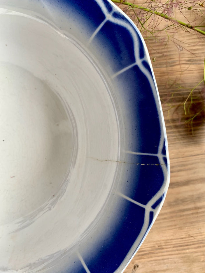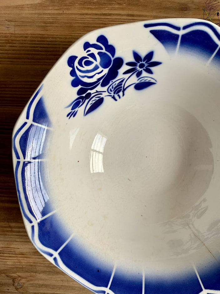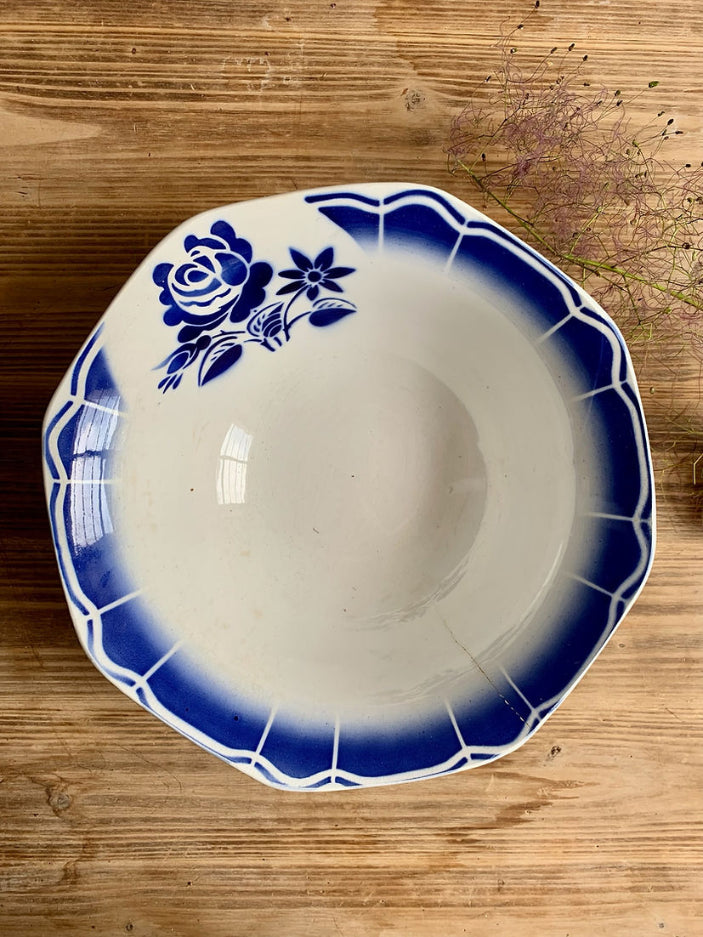 Ce saladier au motif floral caractéristique de la maison Badonvilliers est associé à une teinte bleue dans un excellent état. Dimensions diamètre 25 x H 8.5cm