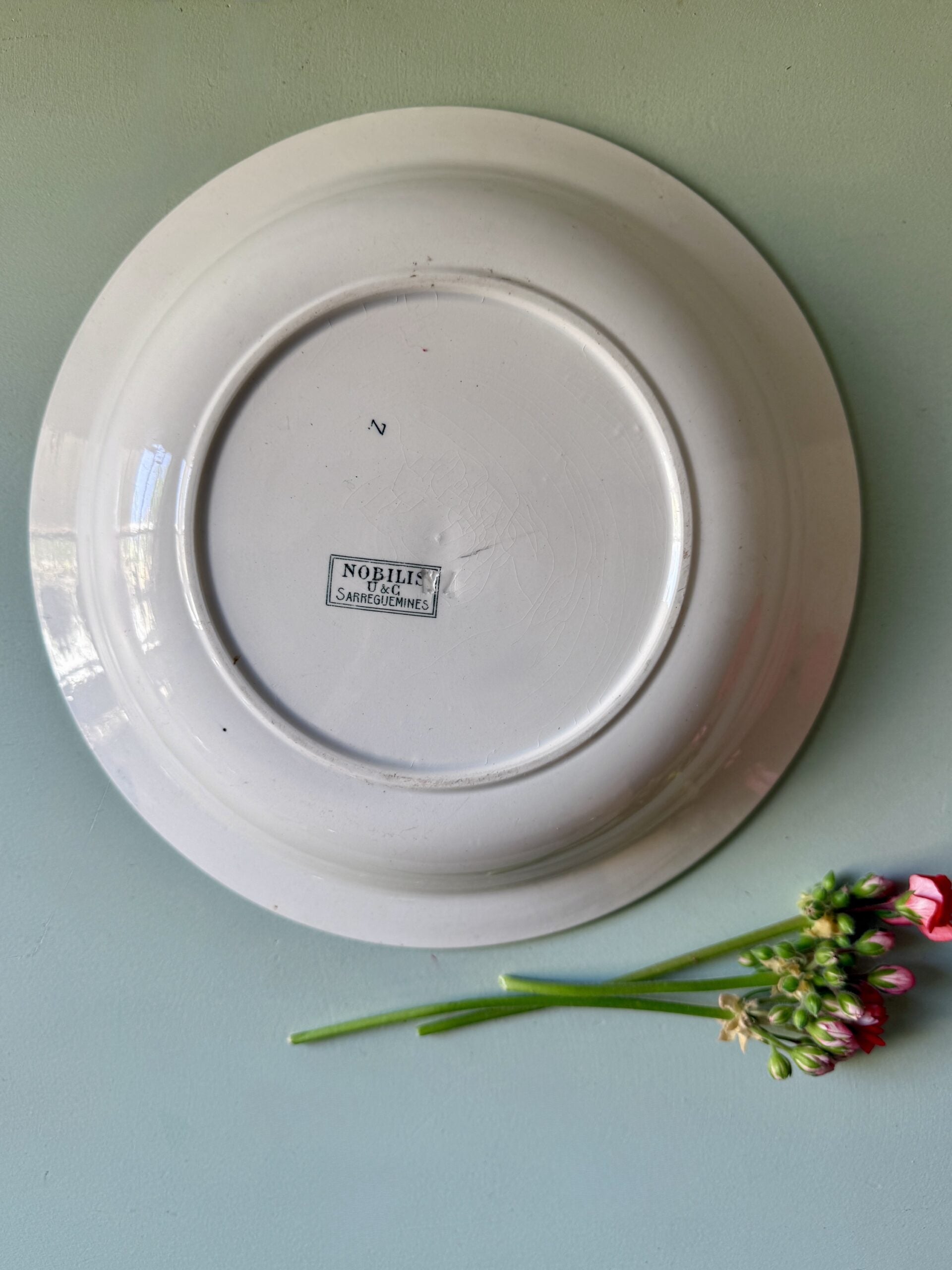 Ce saladier Nobilis porte tout ce qui fait le charme de la faïence ancienne : une forme simple, douce et intemporelle, un liseré vert typique de la maison Sarreguemines et cette vraie présence que seules les pièces chinées savent offrir. Il s’intègre aussi bien dans une cuisine traditionnelle que dans un intérieur plus contemporain.Faïence ancienne avec traces du vécu