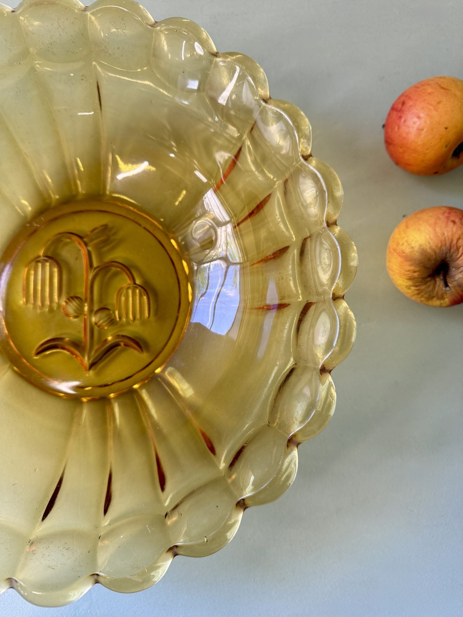Saladier rétro en verre ambré ciselé