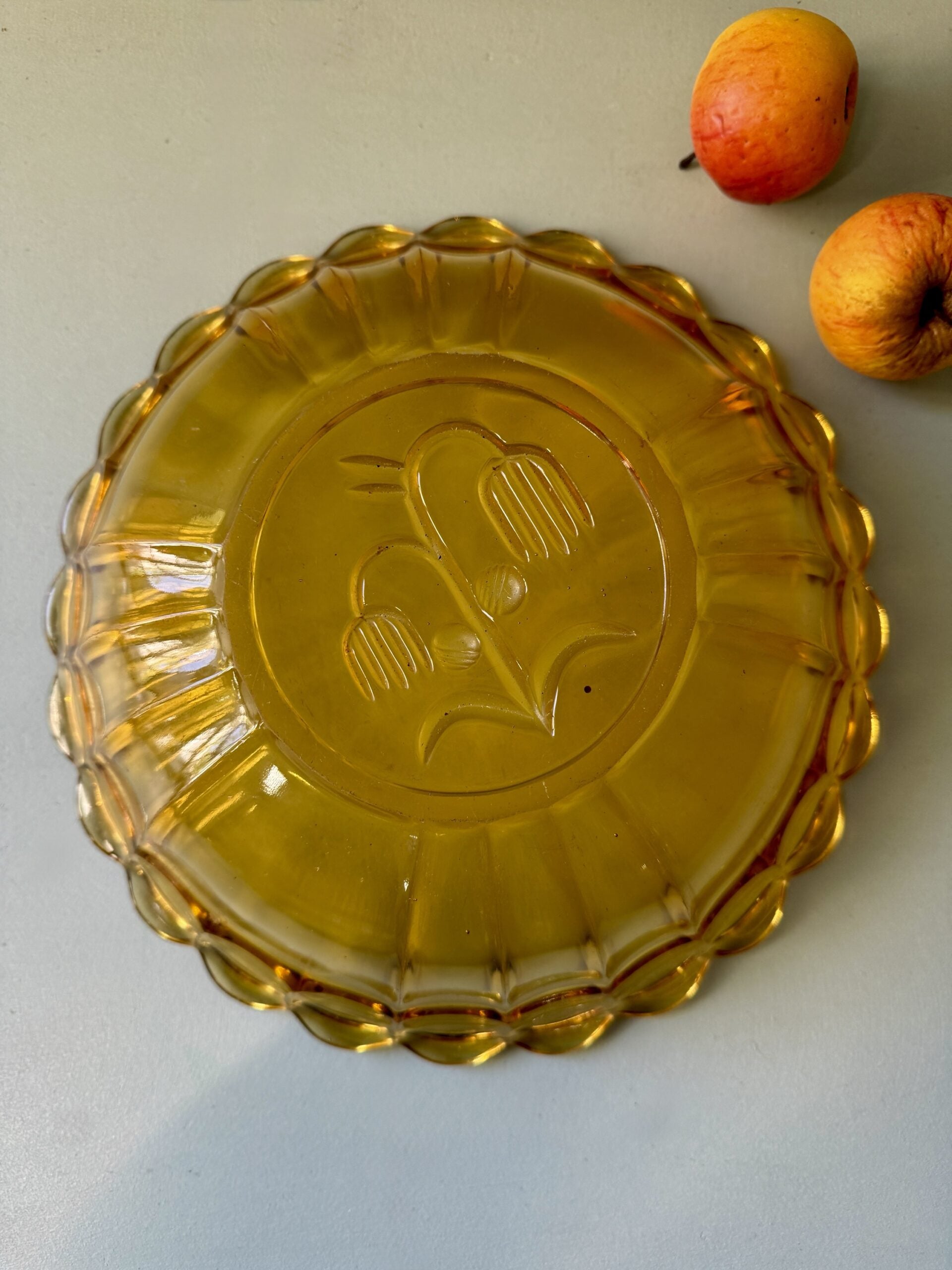Sa teinte ambrée fonctionne aussi bien avec une table simple du quotidien qu’avec une table de fête plus travaillée. Une pièce de décoration ancienne facile à associer, à mixer avec d’autres verres ou à laisser seule pour qu’elle fasse le job.