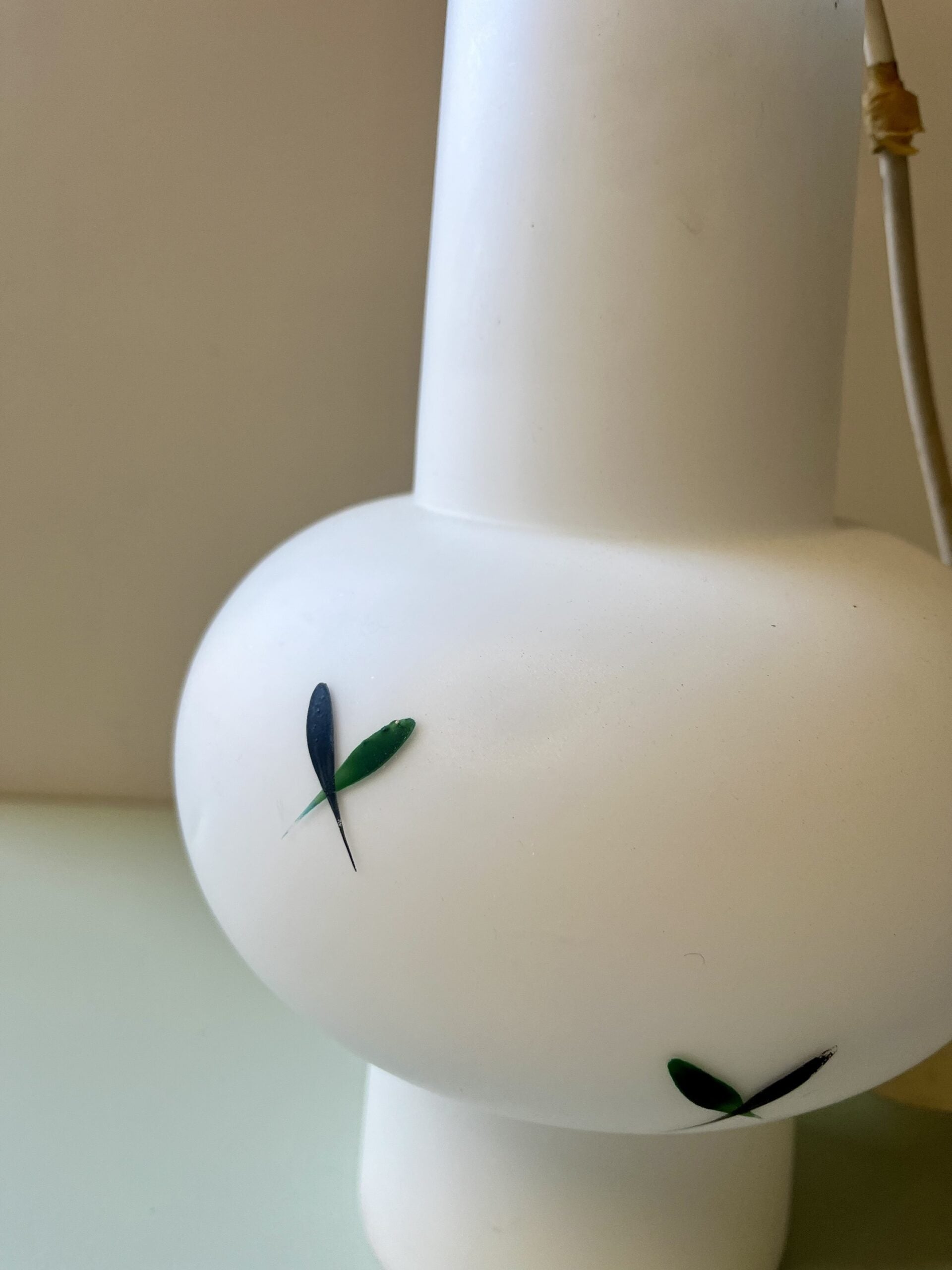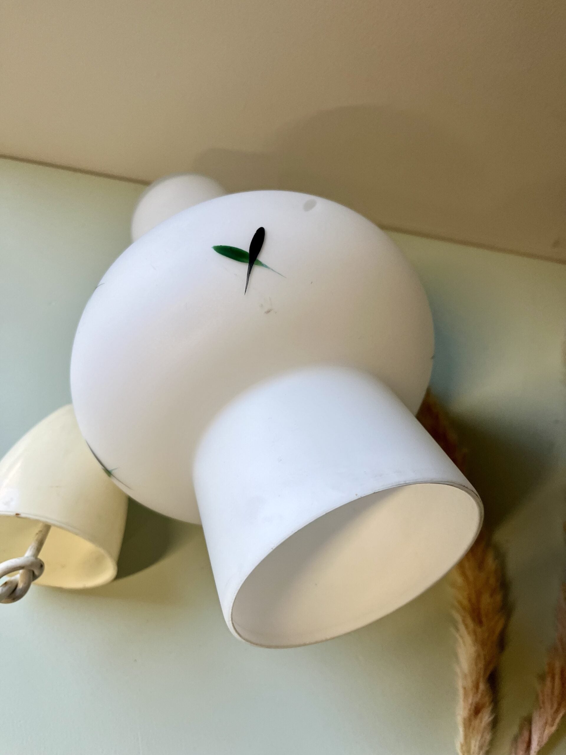 Suspension vintage en verre opalin décor floral – années 50–60