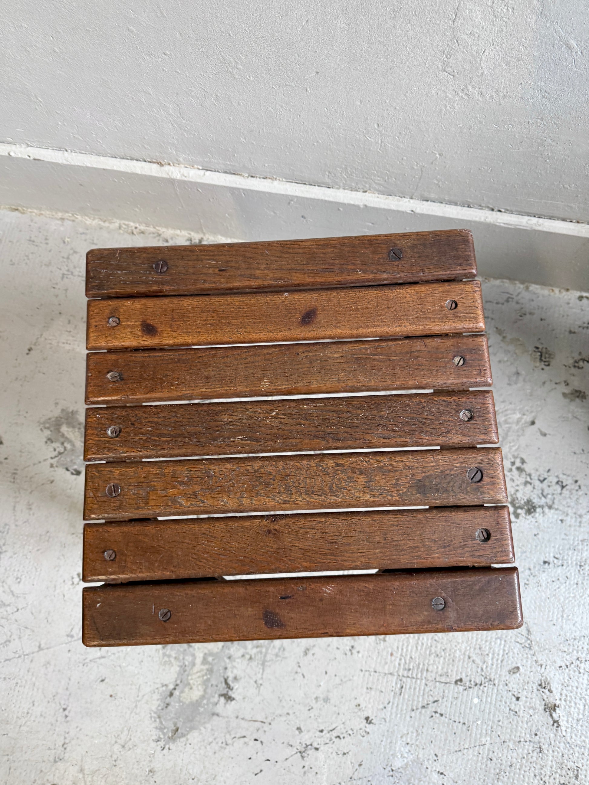 Tabouret ancien en bois au design sobre et authentique, avec un plateau à lattes qui lui donne un vrai caractère. Sa patine naturelle et ses petites marques racontent son vécu et en font une pièce pleine de personnalité. Il peut servir de tabouret d’appoint, de petite table basse, de bout de canapé ou de support pour une plante ou une lampe. Une pièce facile à intégrer dans différents espaces, seule ou associée à d’autres meubles anciens.