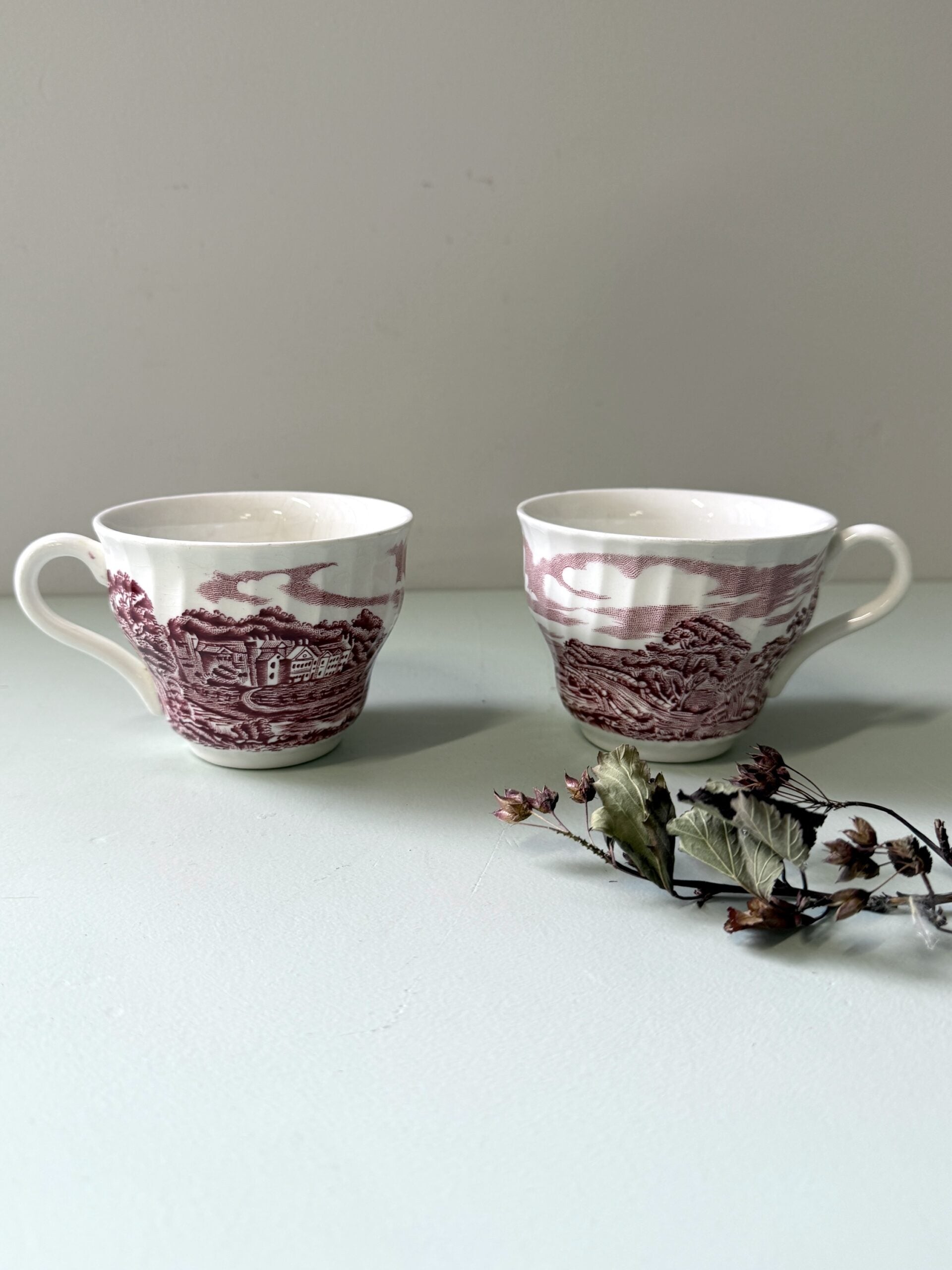 Lot de 2 tasses style anglais en faïence décor bordeaux